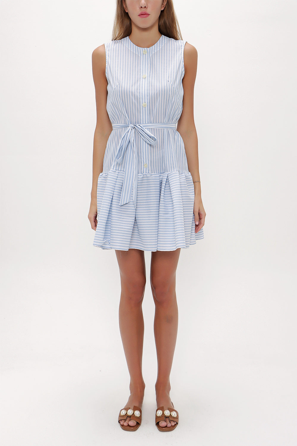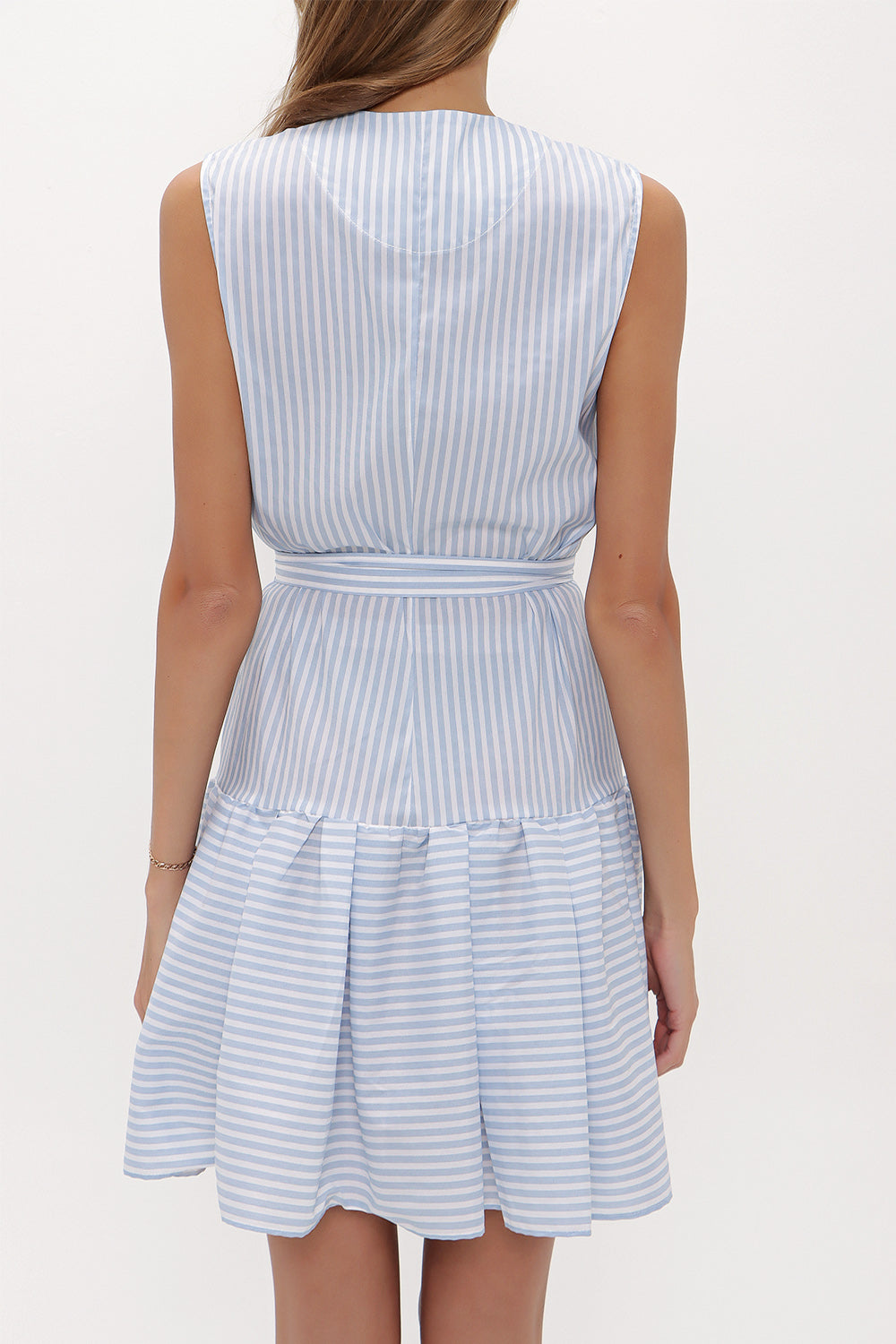 Açık Mavi Büzgülü kolsuz mini elbise 92703