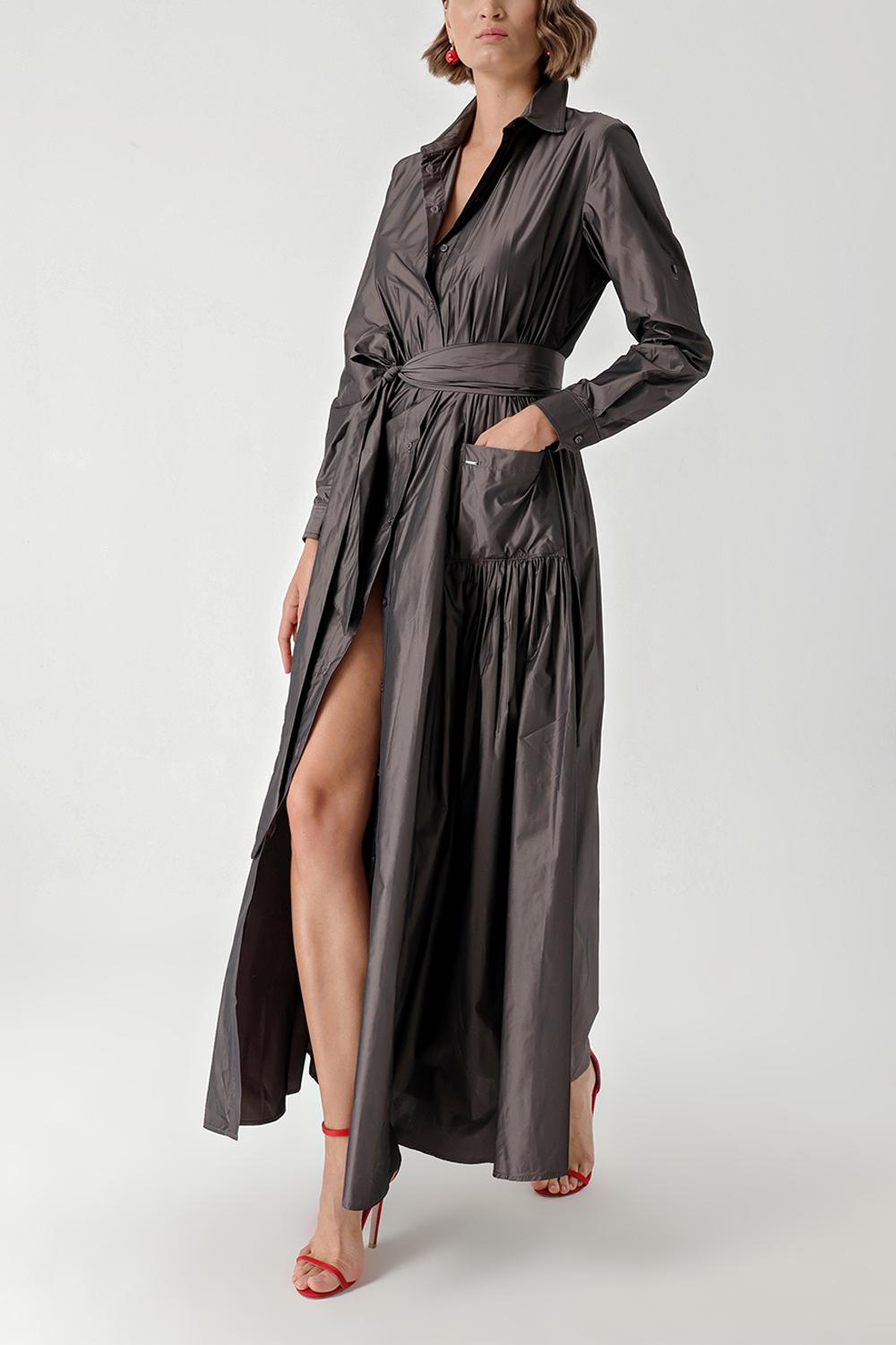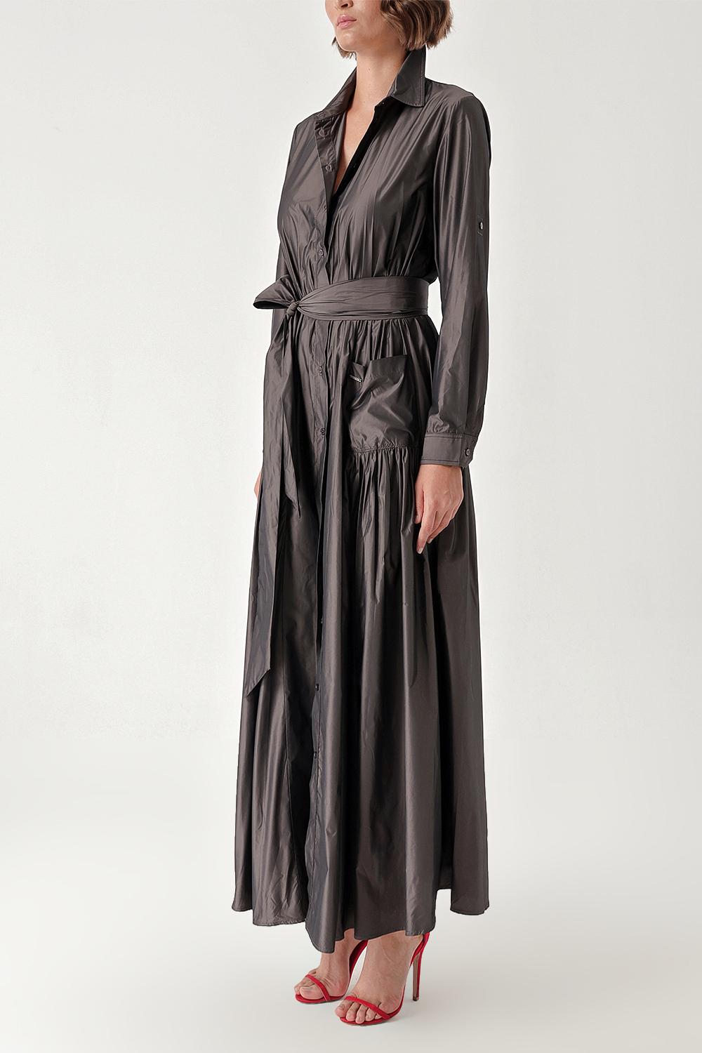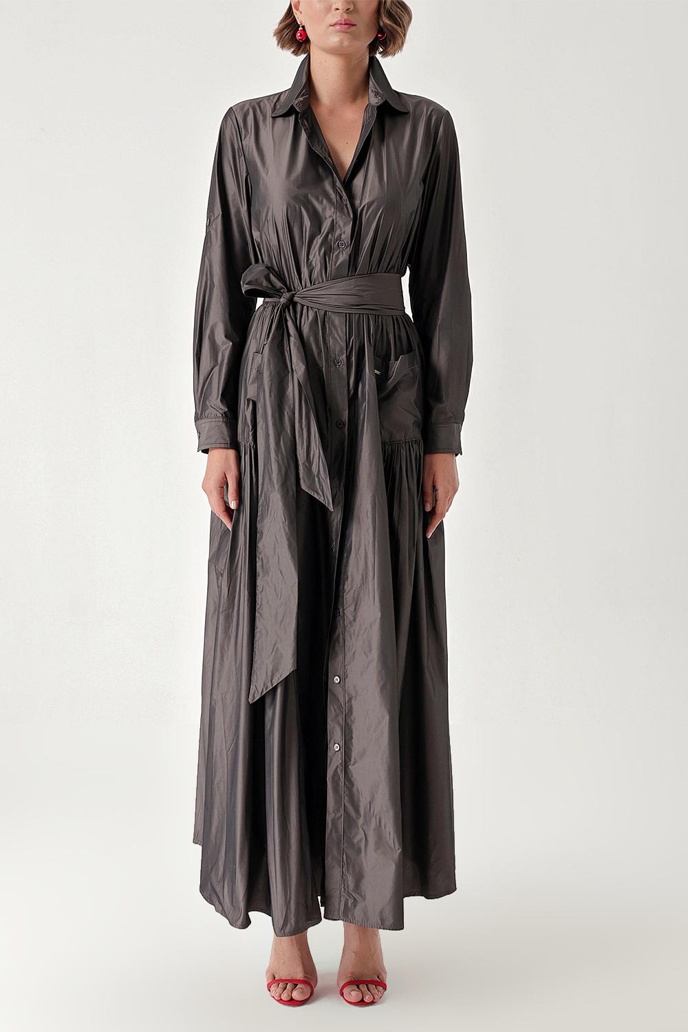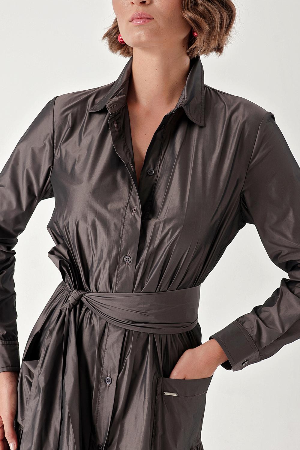 Antrasit Büzgülü uzun tafta gömlek elbise 94354