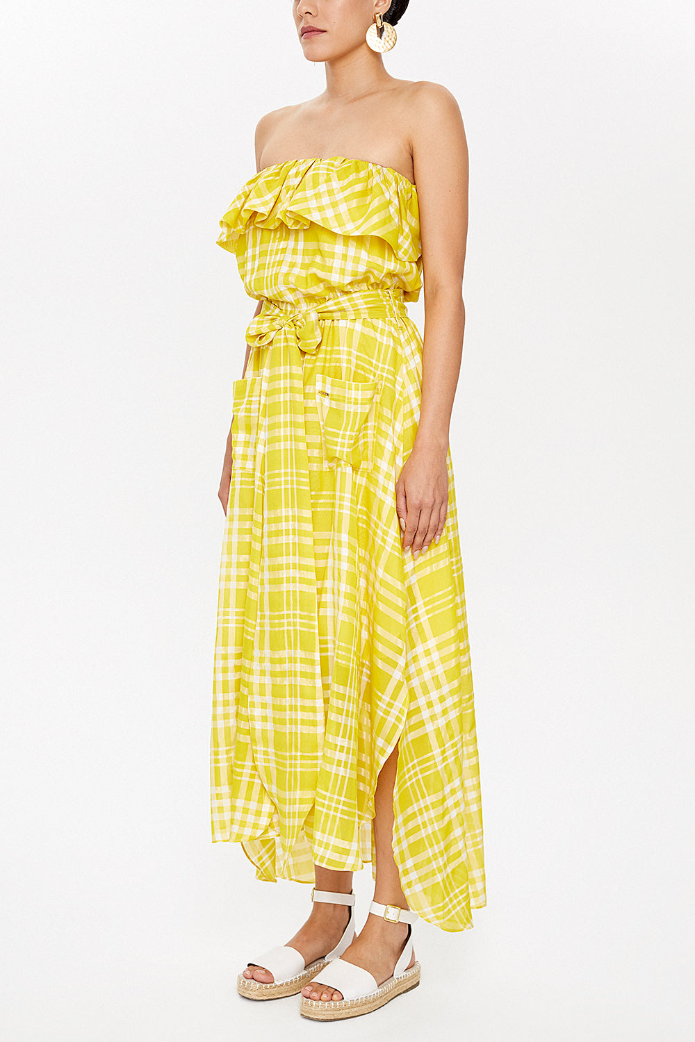 Asit Sarı Straplez belden bağlamalı elbise 93116