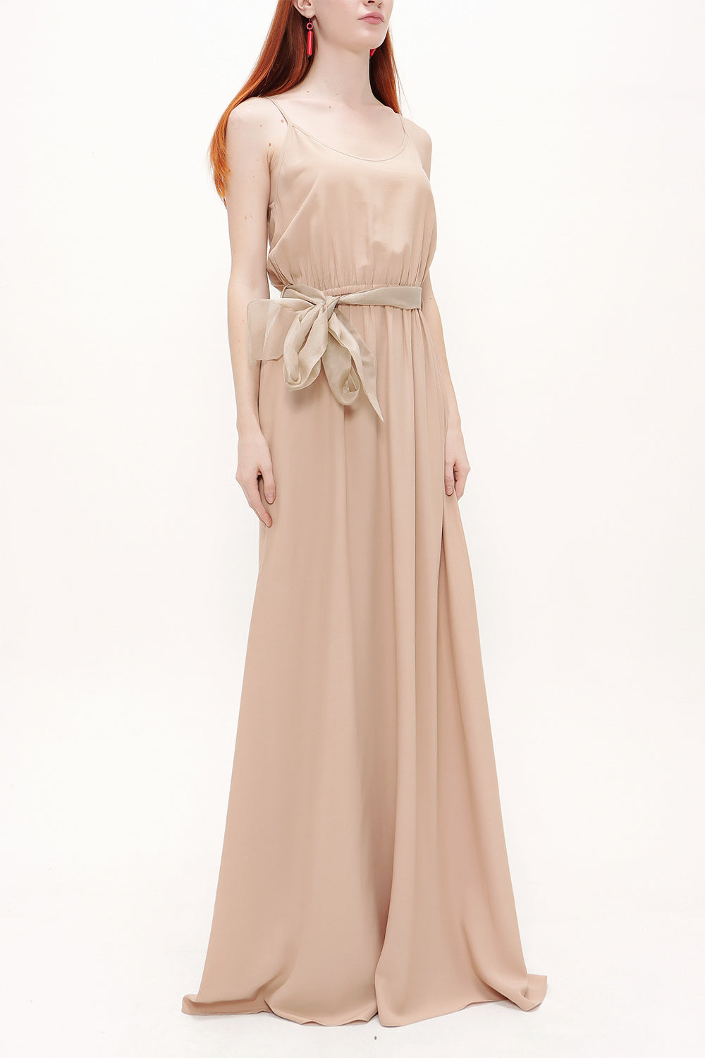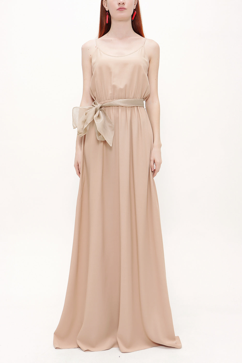 Bej Bağcıklı ip askılı uzun elbise 92378