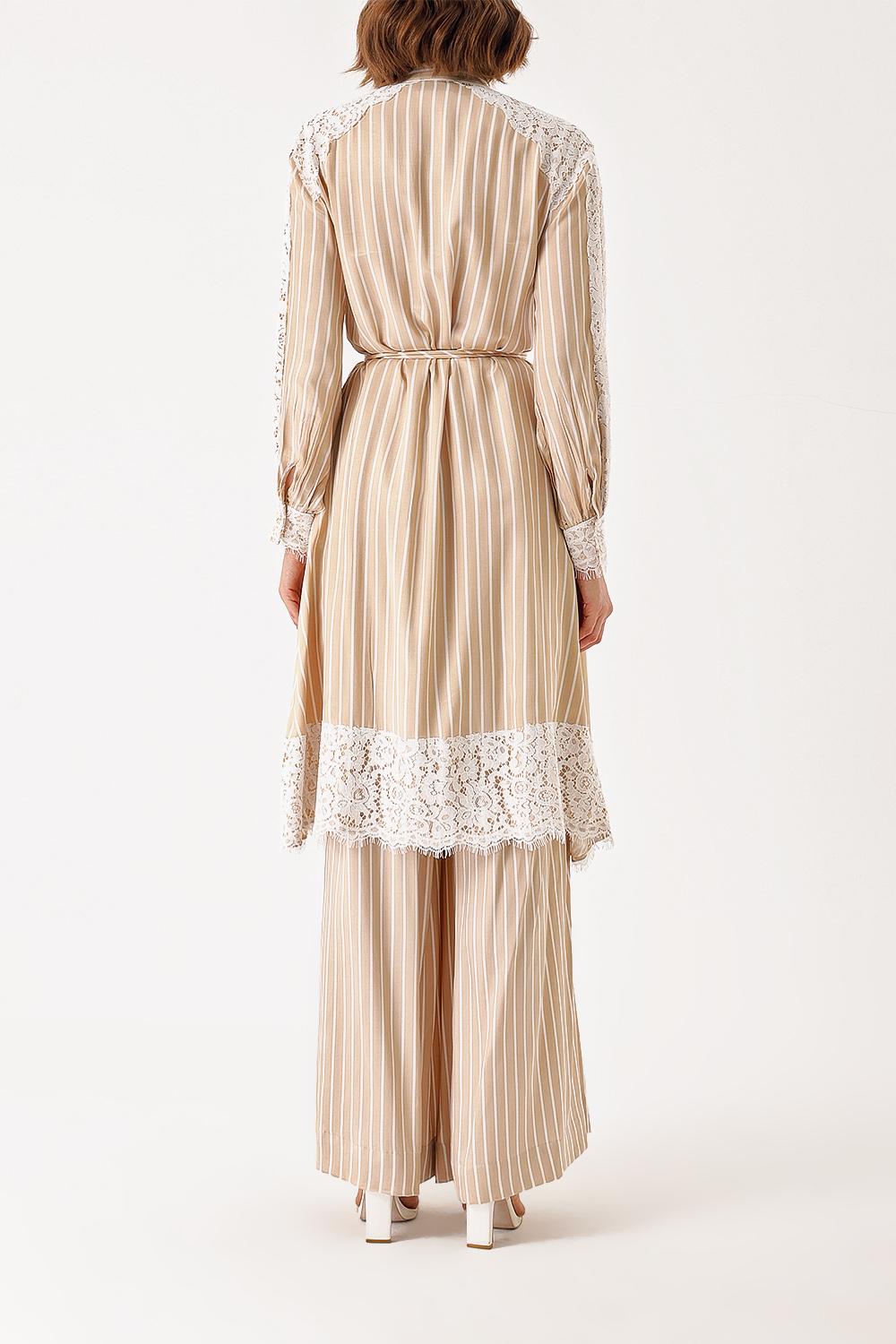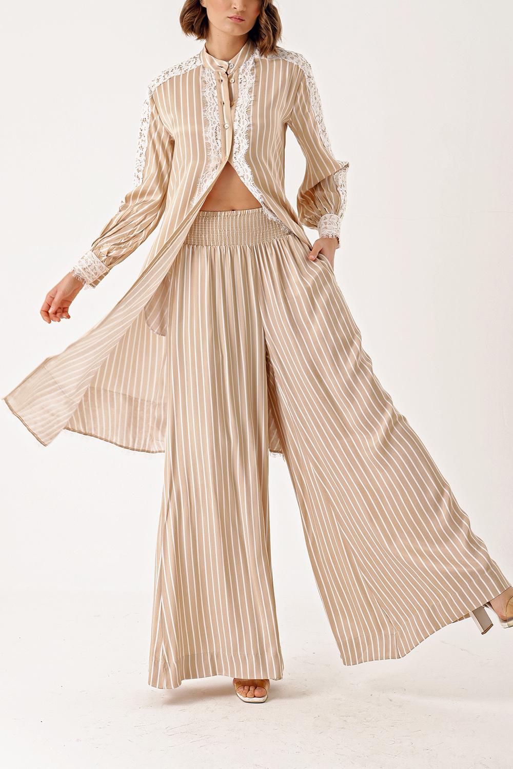 Bej Dantel detaylı gömlek ve pantolonlu ikili takım 12321