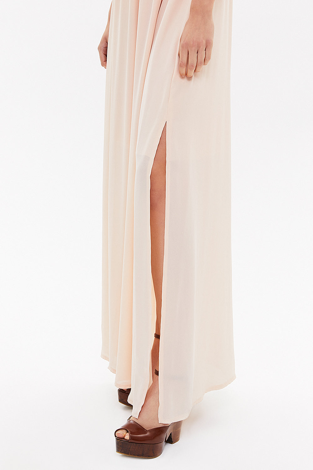 Bej Dantelli ve fırfırlı uzun elbise 92328