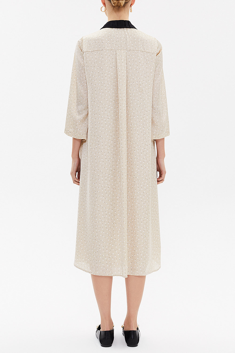 Bej Düğmeli fırfır şeritli bol kesim midi elbise 92806