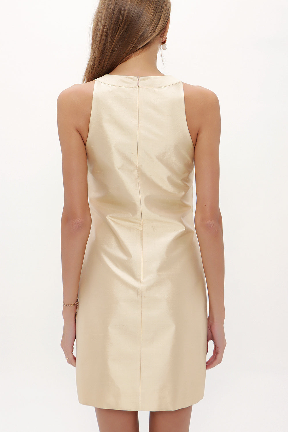 Bej Kolsuz ipek şantuk mini elbise 91833