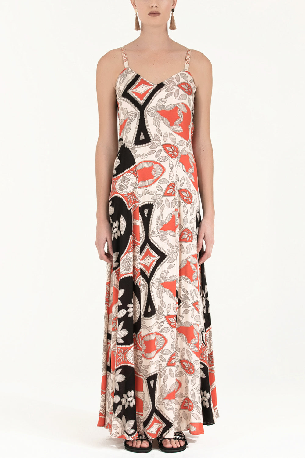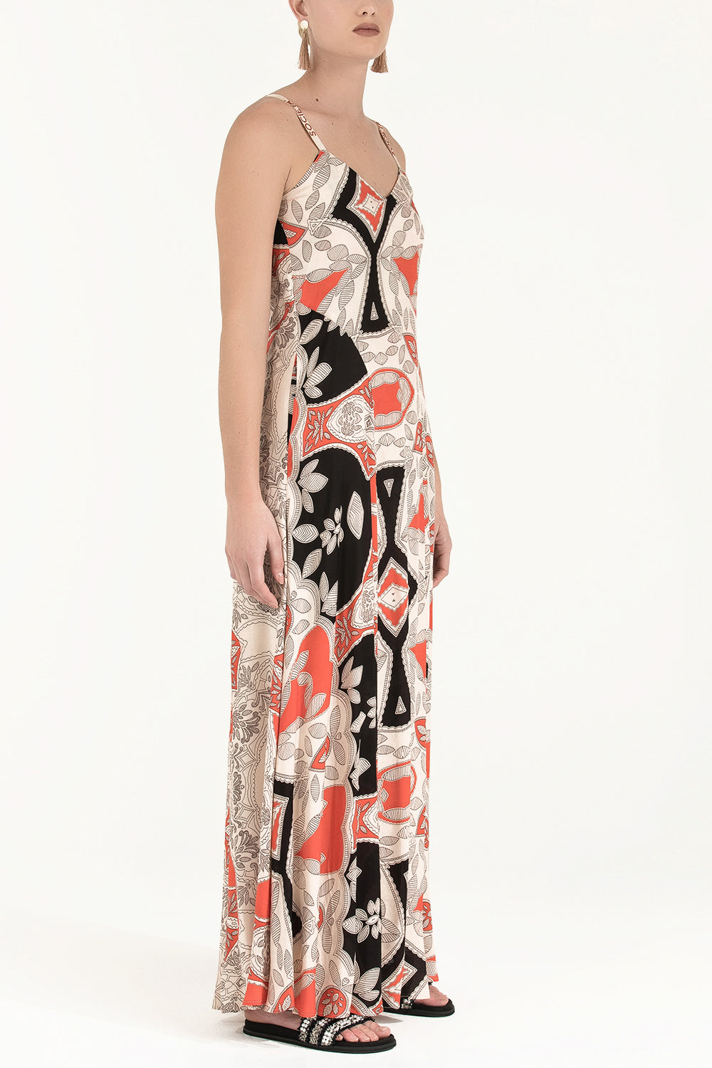 Bej Kristal taşlı kolsuz uzun elbise 92337
