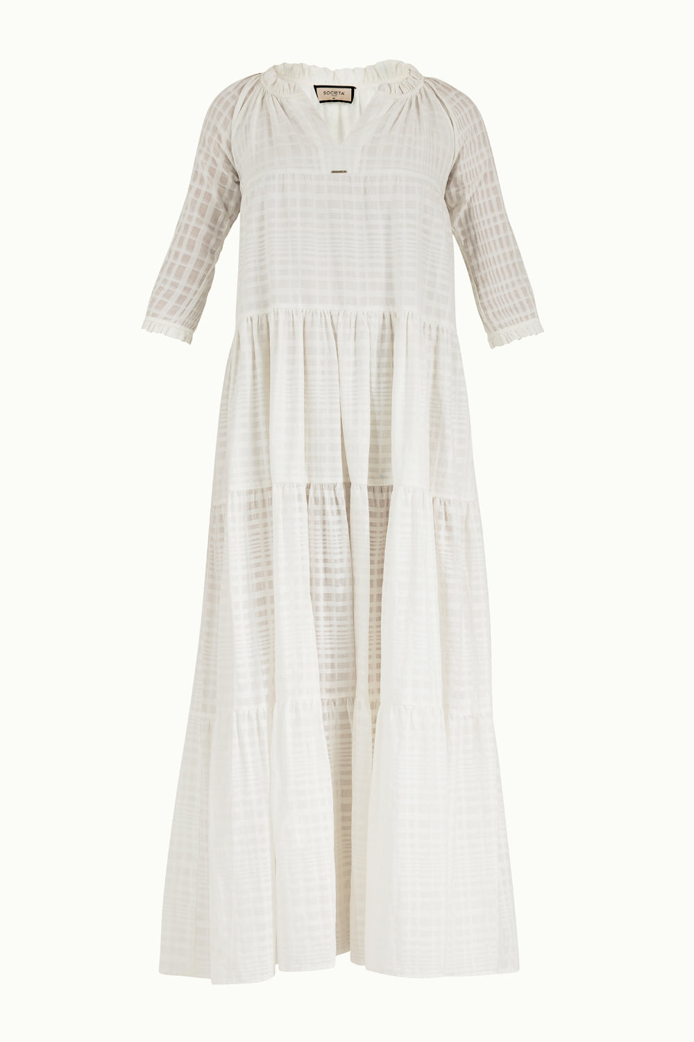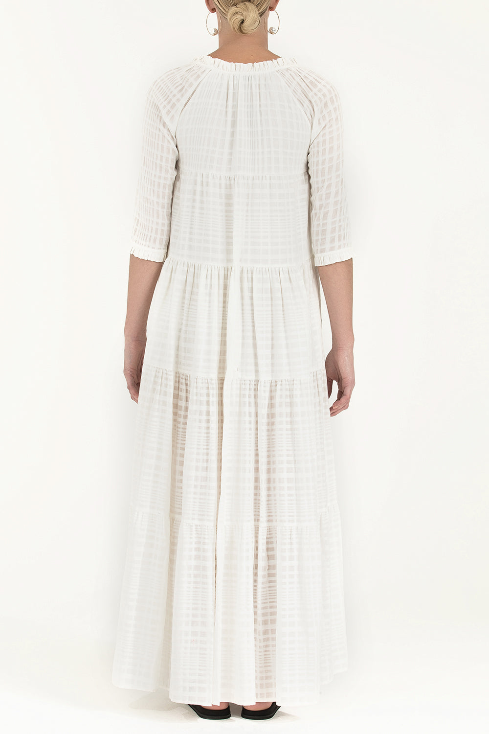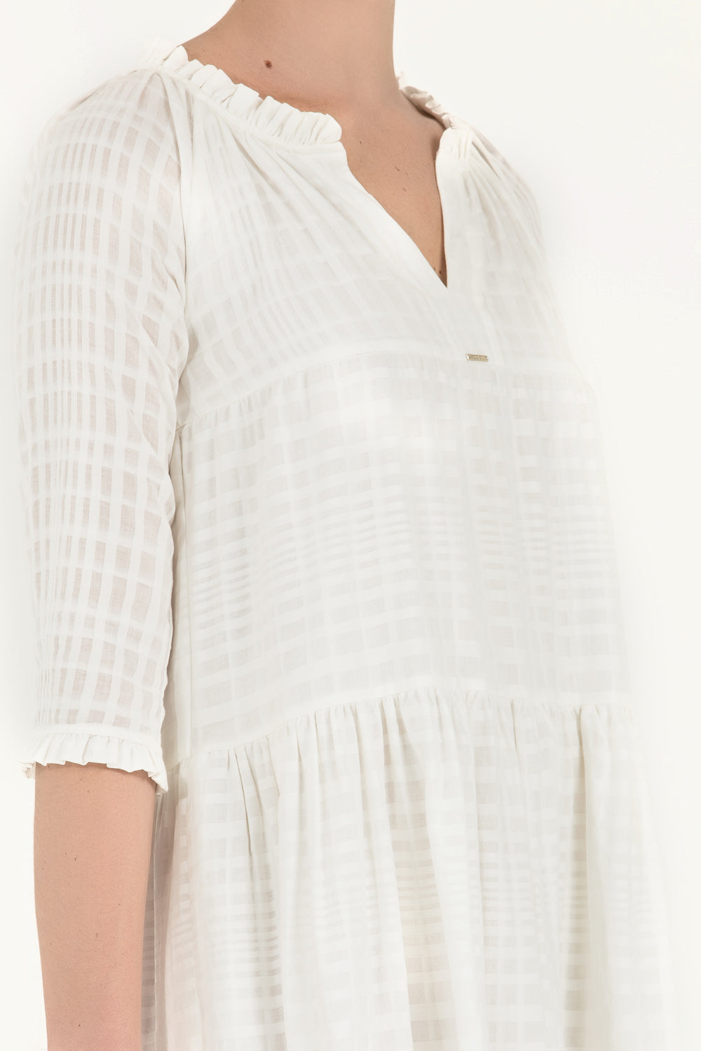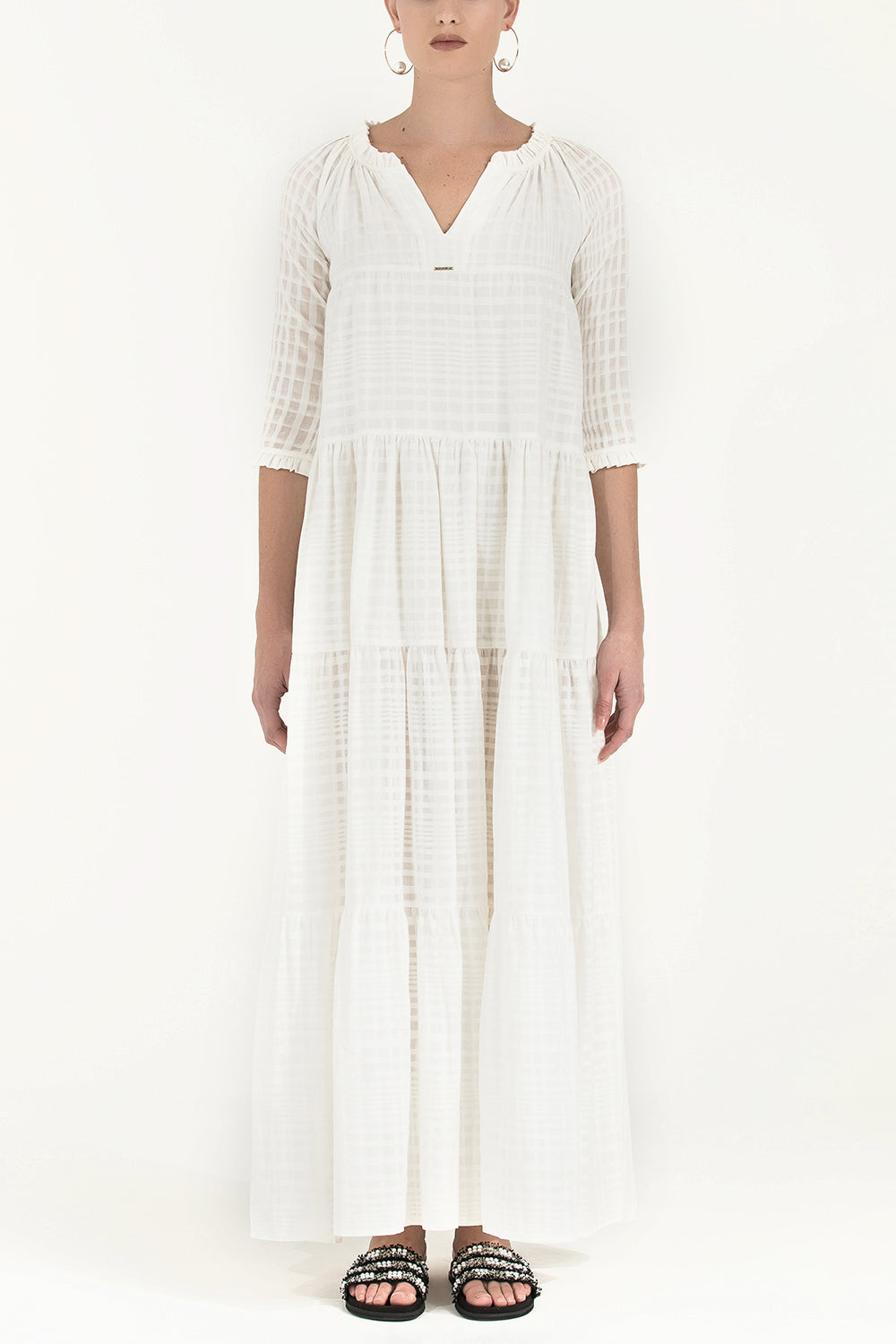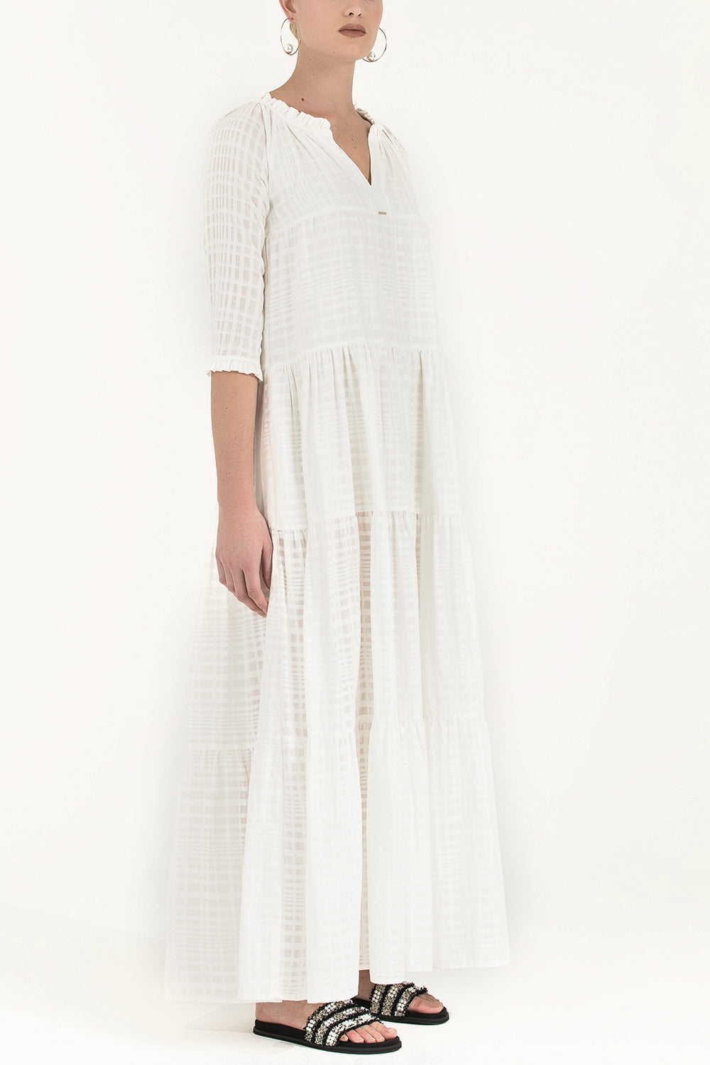Beyaz Büzgülü bol kesim uzun elbise 92299