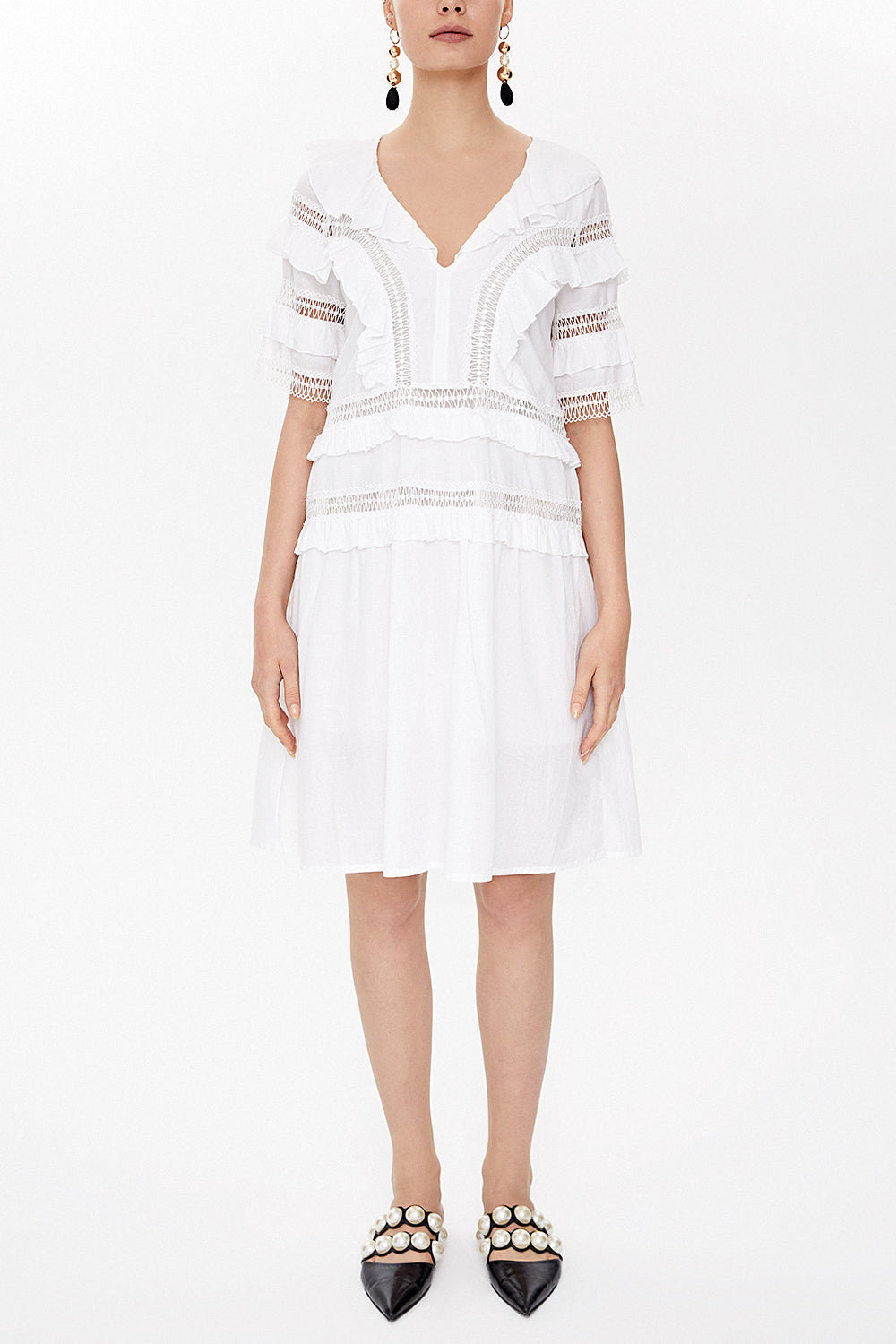 Beyaz Dantel ve volan detaylı midi elbise 92311