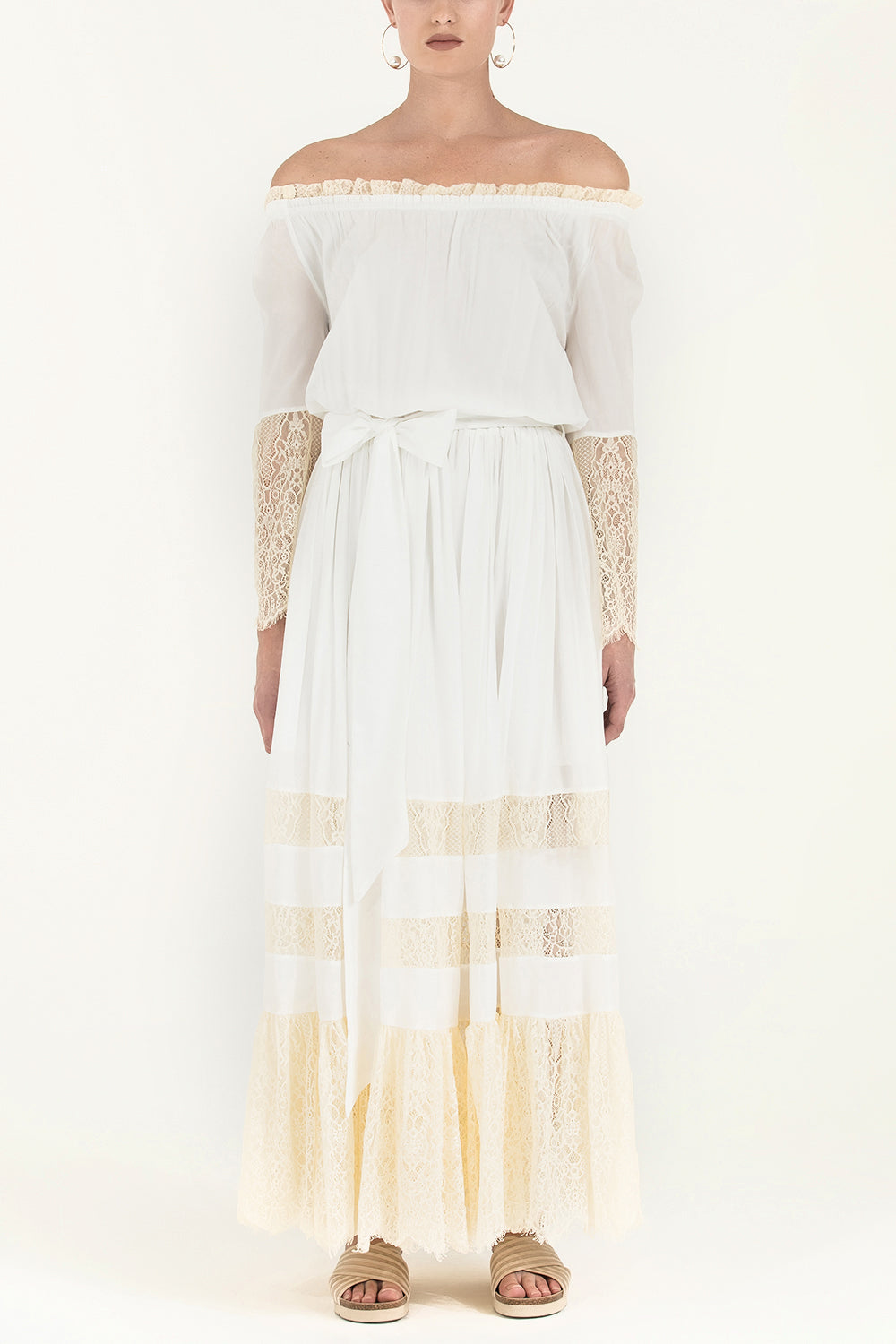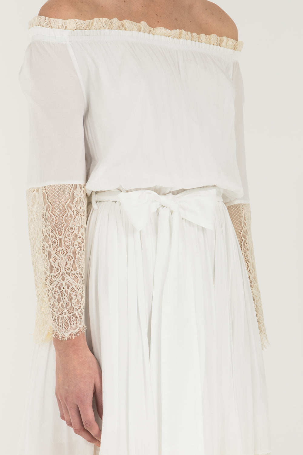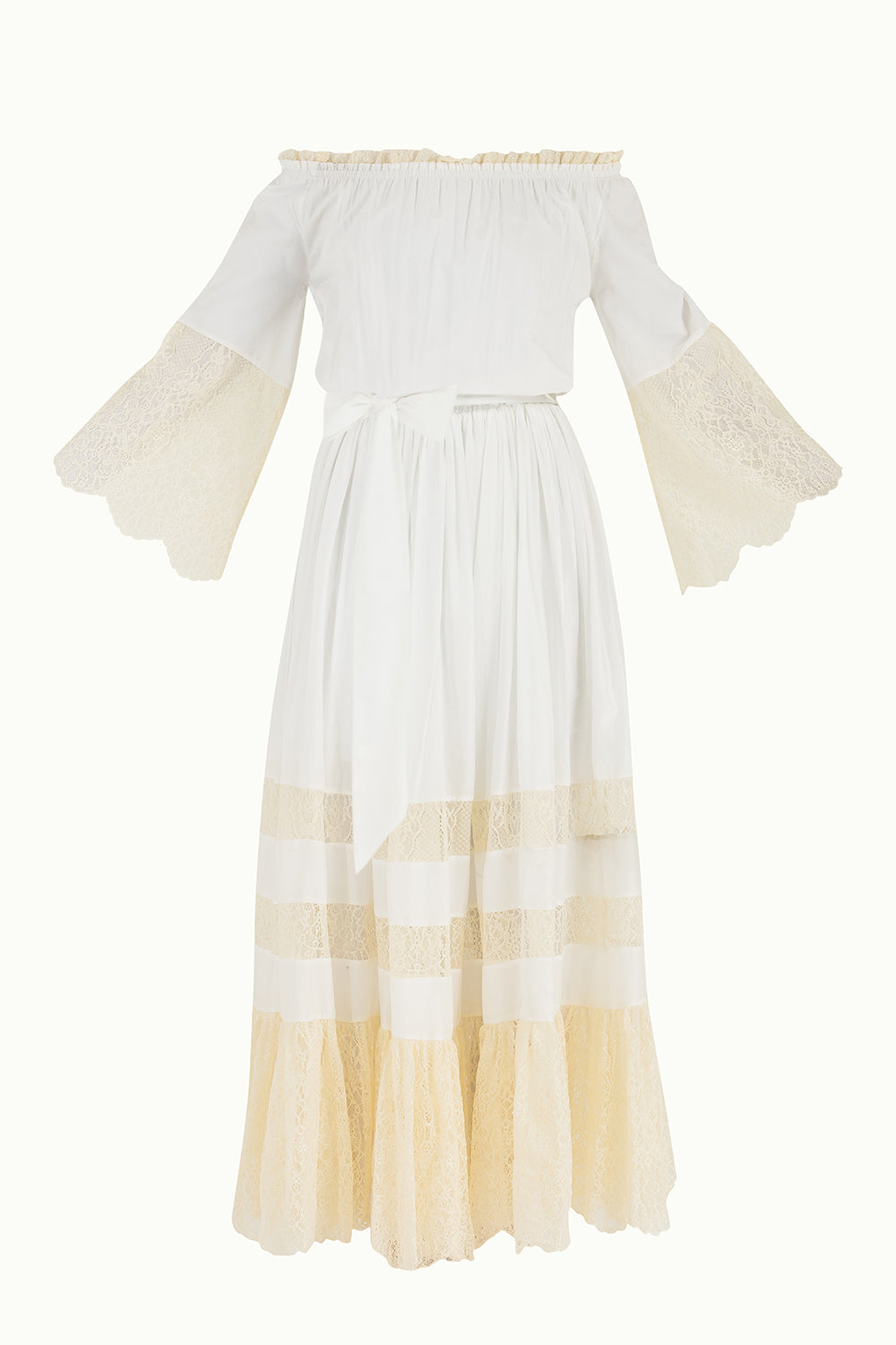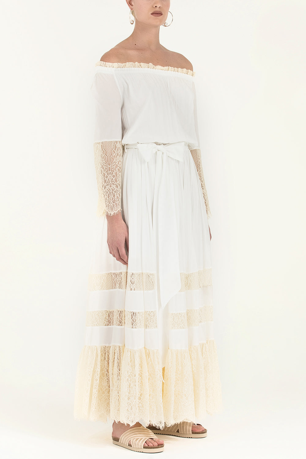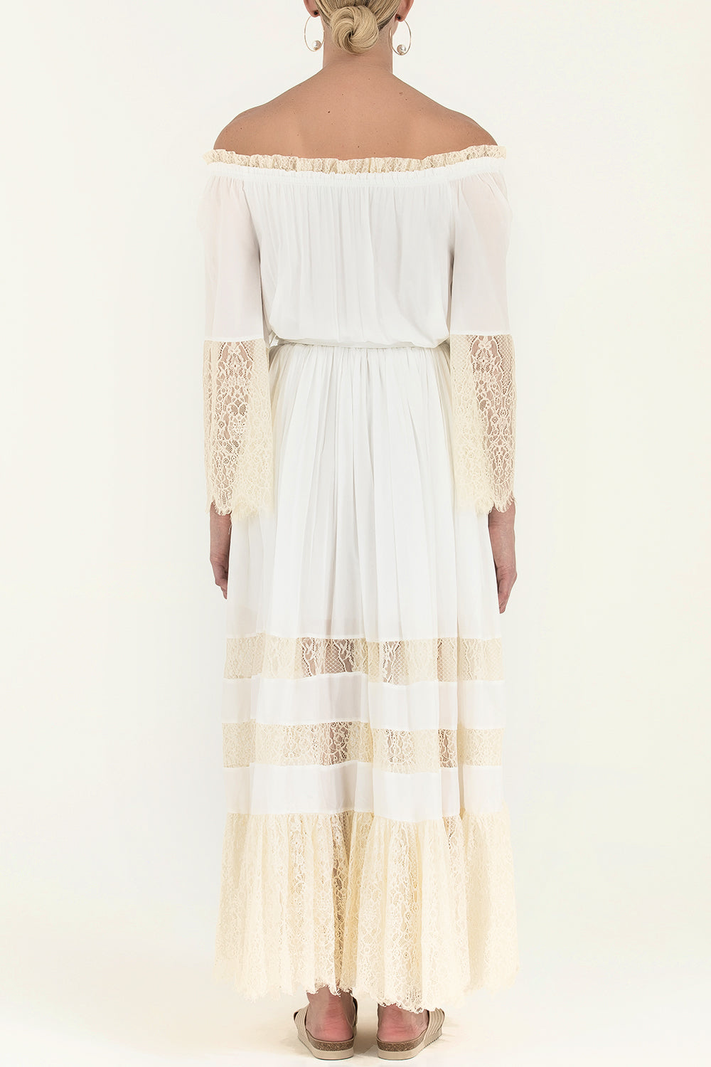 Beyaz Dantelli düşük omuz uzun elbise 92291