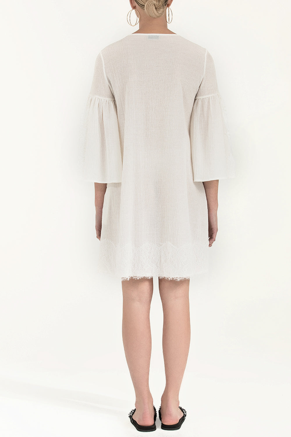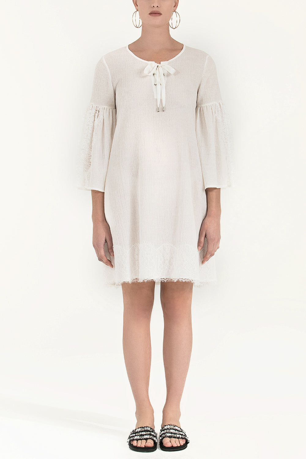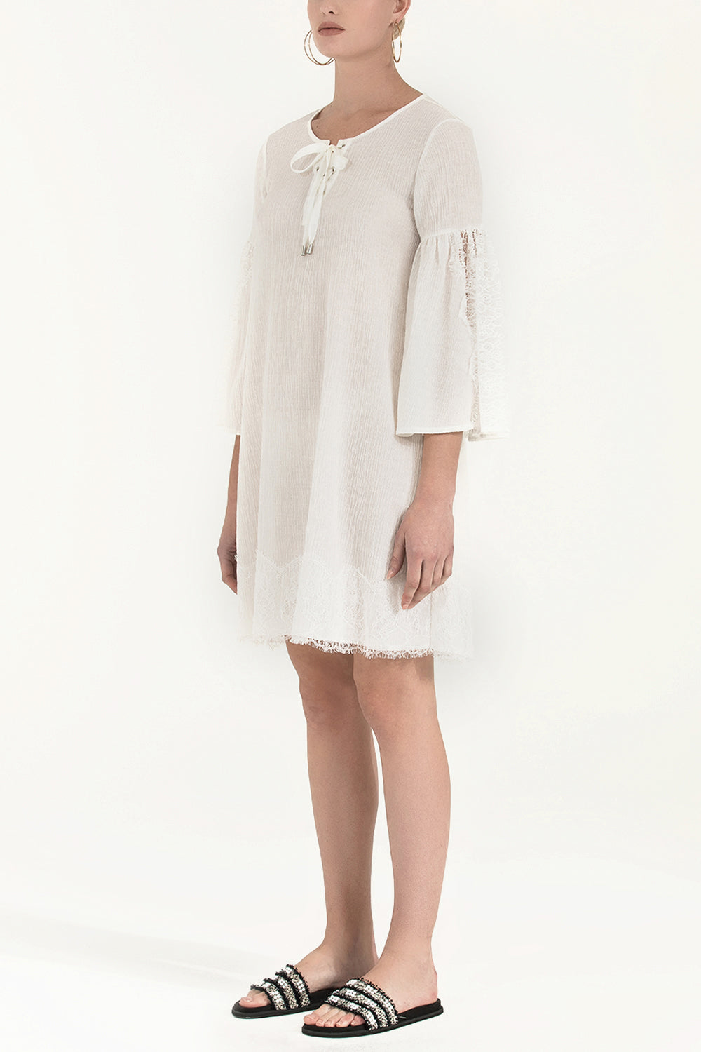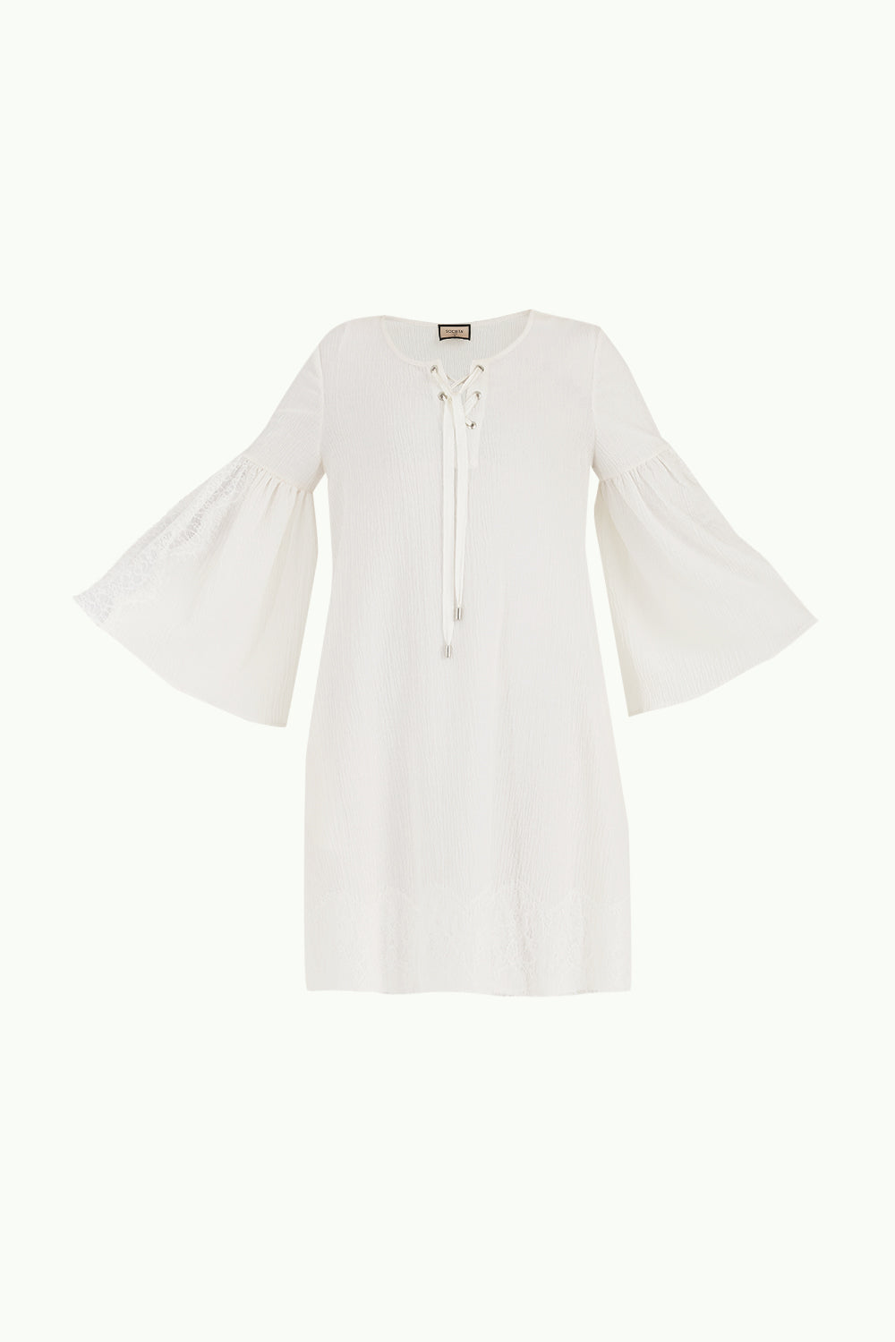 Beyaz Dantelli ve bağcıklı mini elbise 92332
