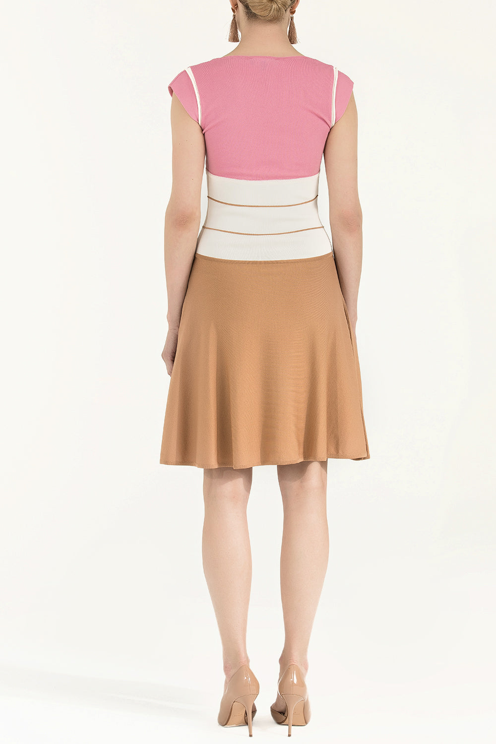 Beyaz Eteği volanlı triko elbise 28035