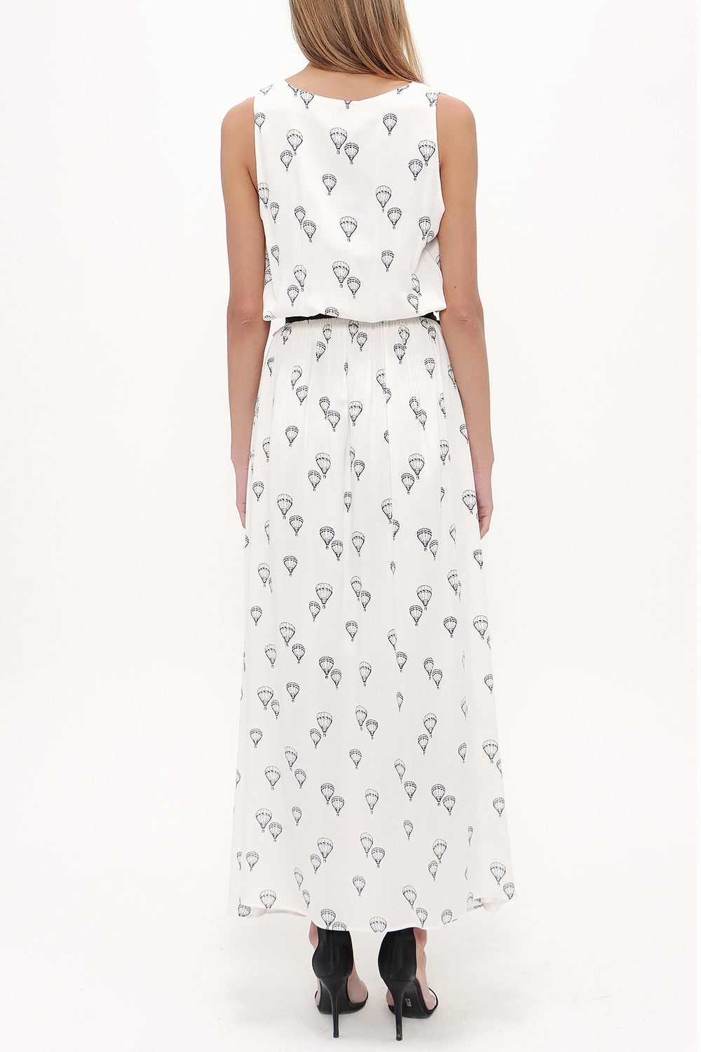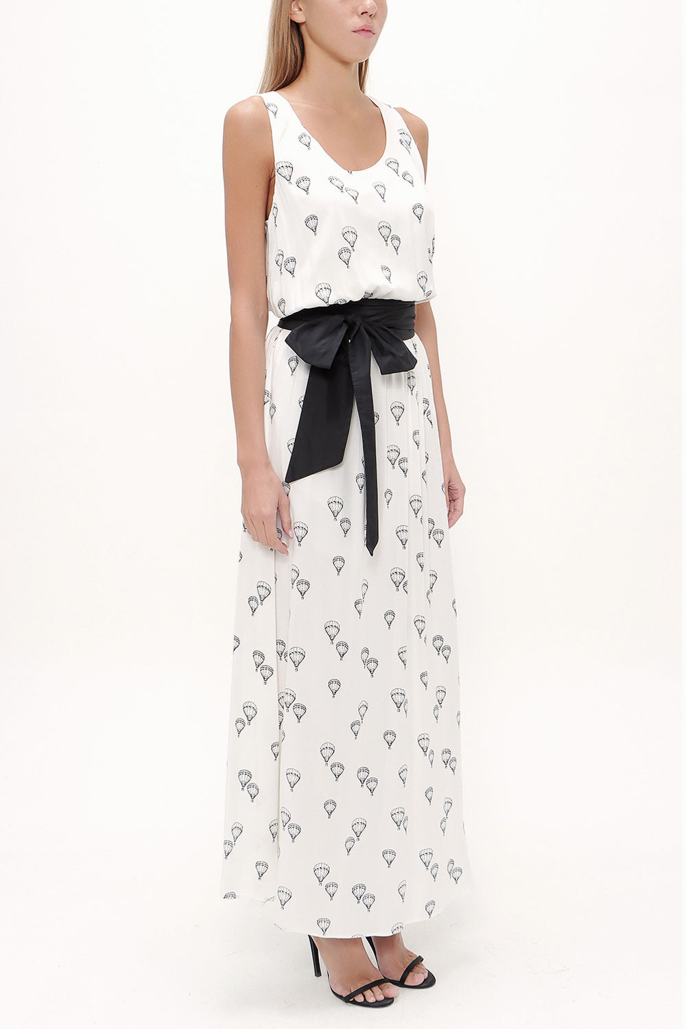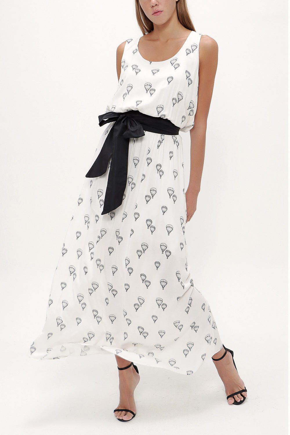 Beyaz Kemer detaylı desenli uzun elbise 92316