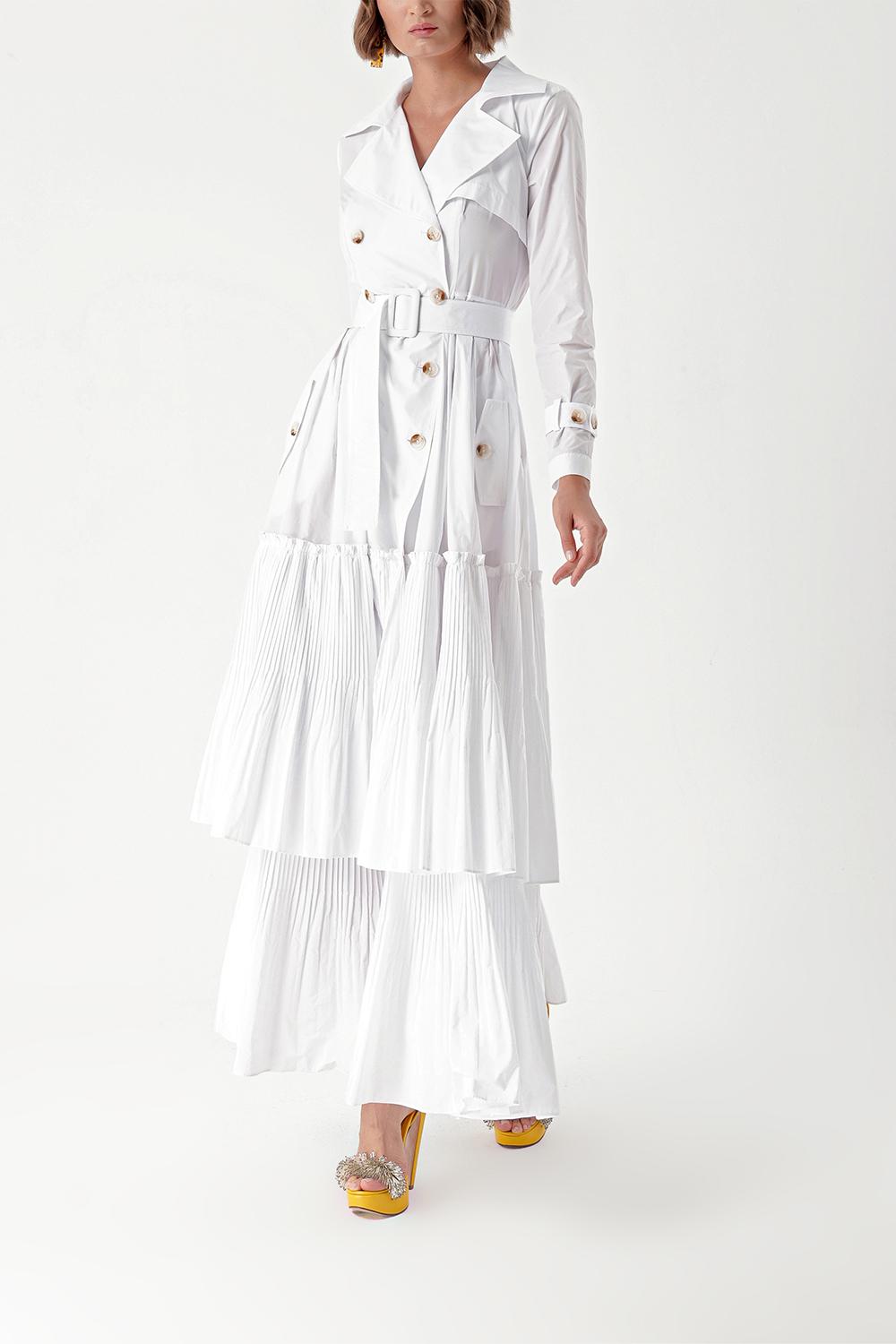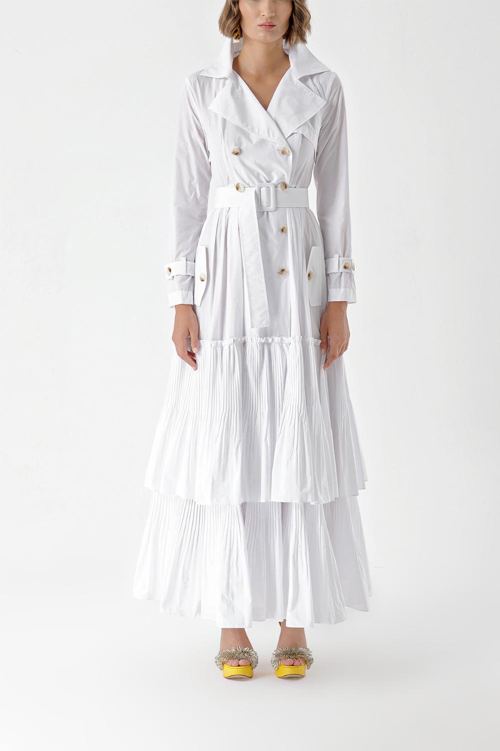 Beyaz Pilise detaylı trenç elbise 94285
