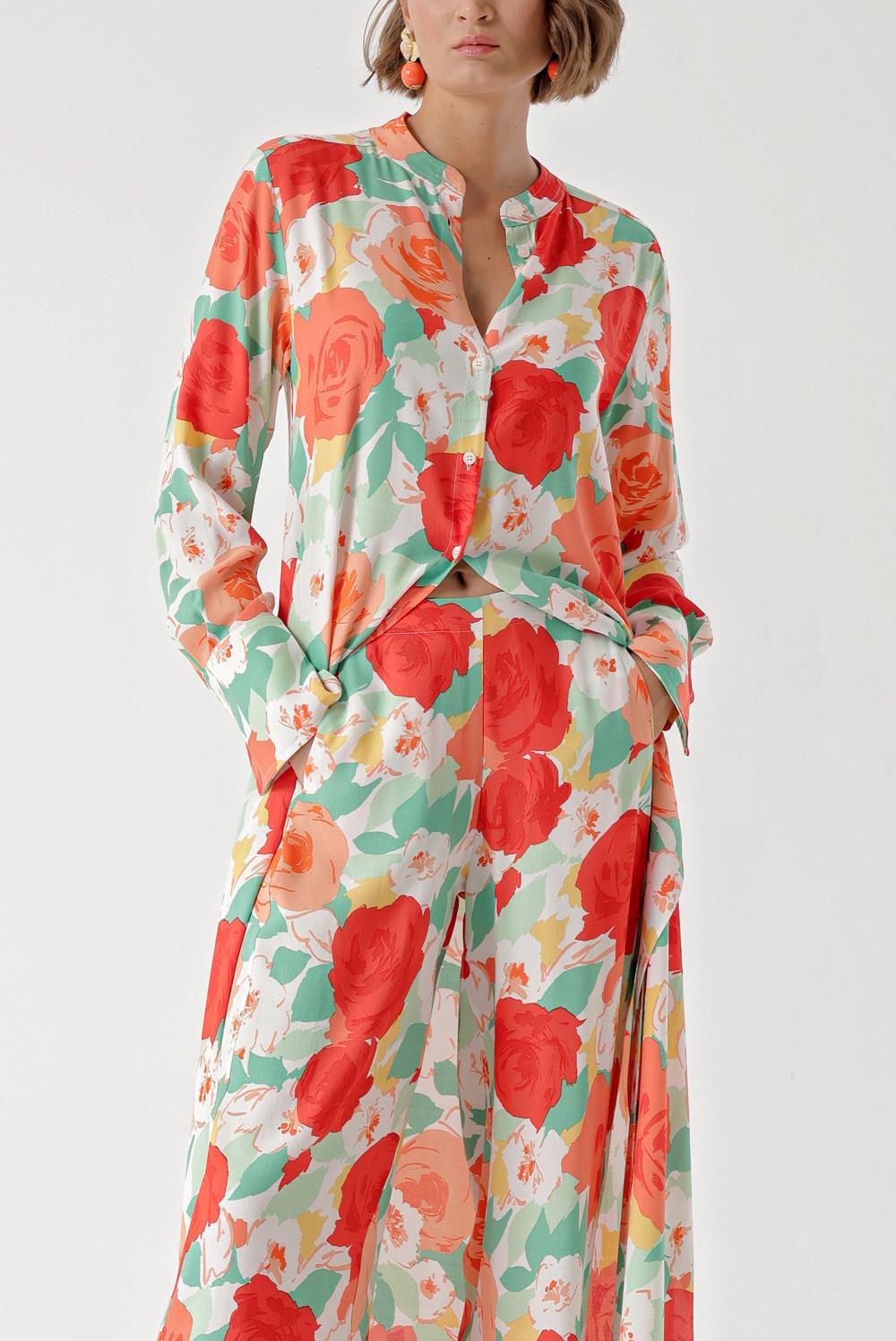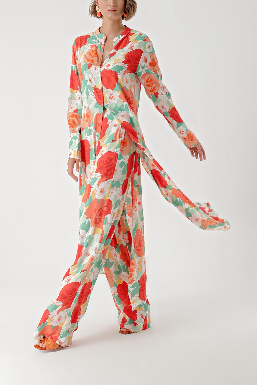 Beyaz Renkli Çiçekli Beli lastikli pantolonlu ikili takım 12322