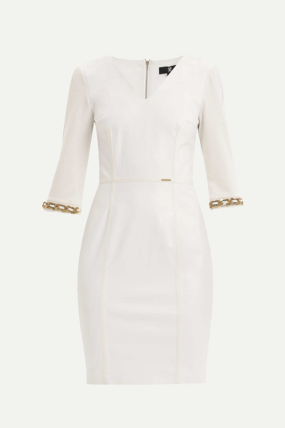 Beyaz Suni deri mixli zincirli mini elbise 91496