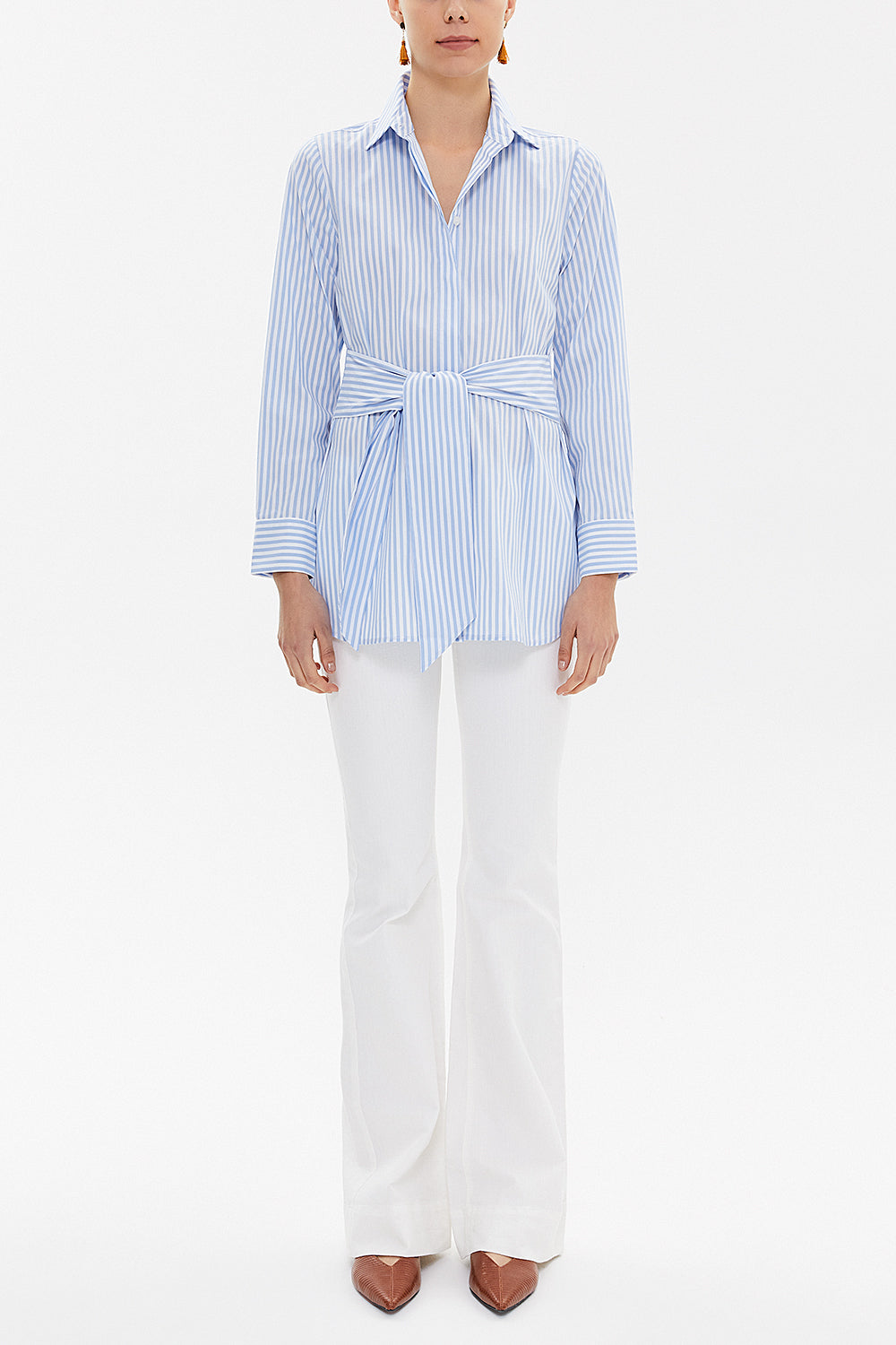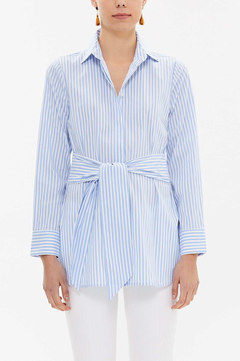 Çizgili Bagcıklı bol Kesim poplin gömlek 10723