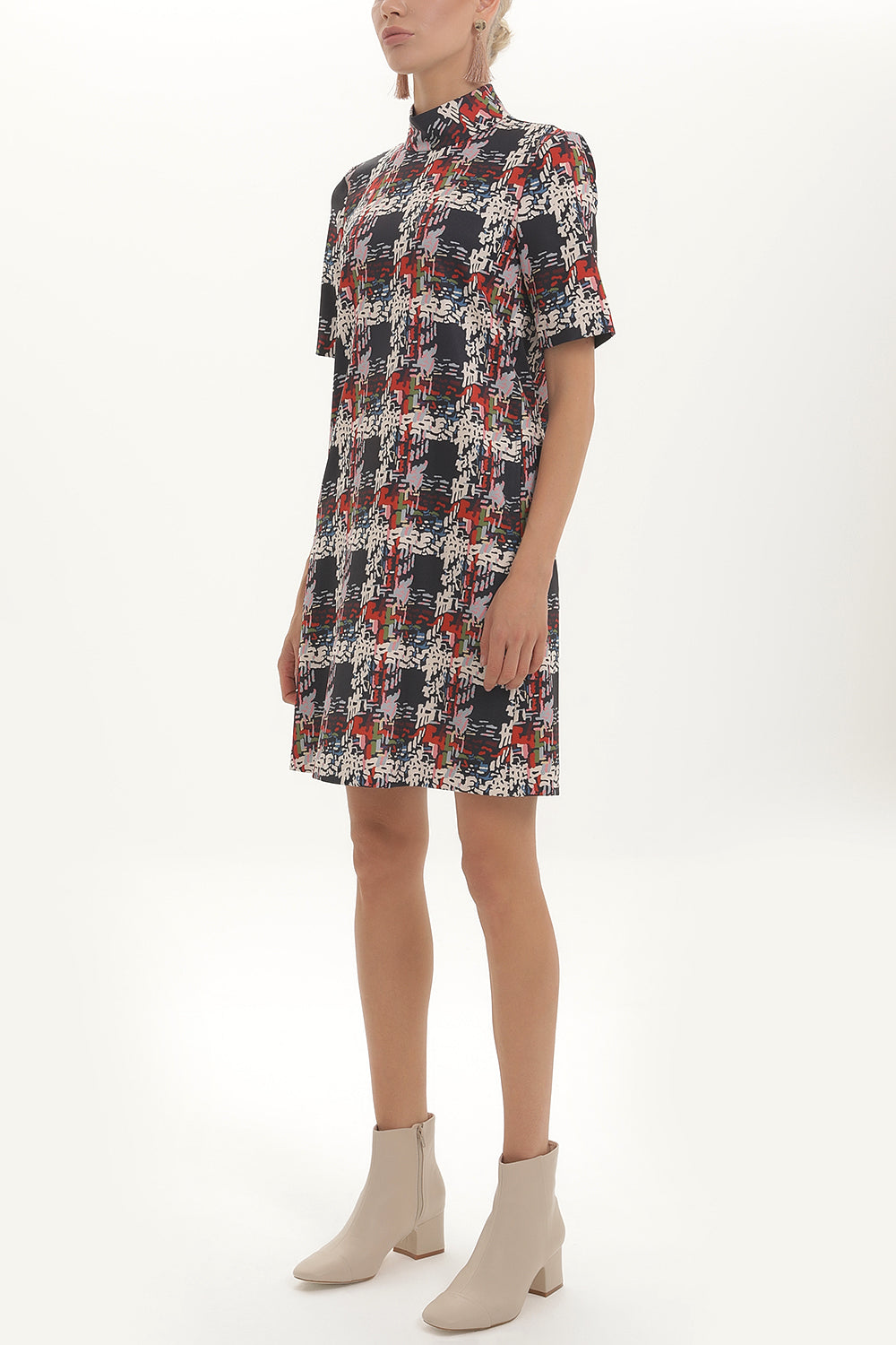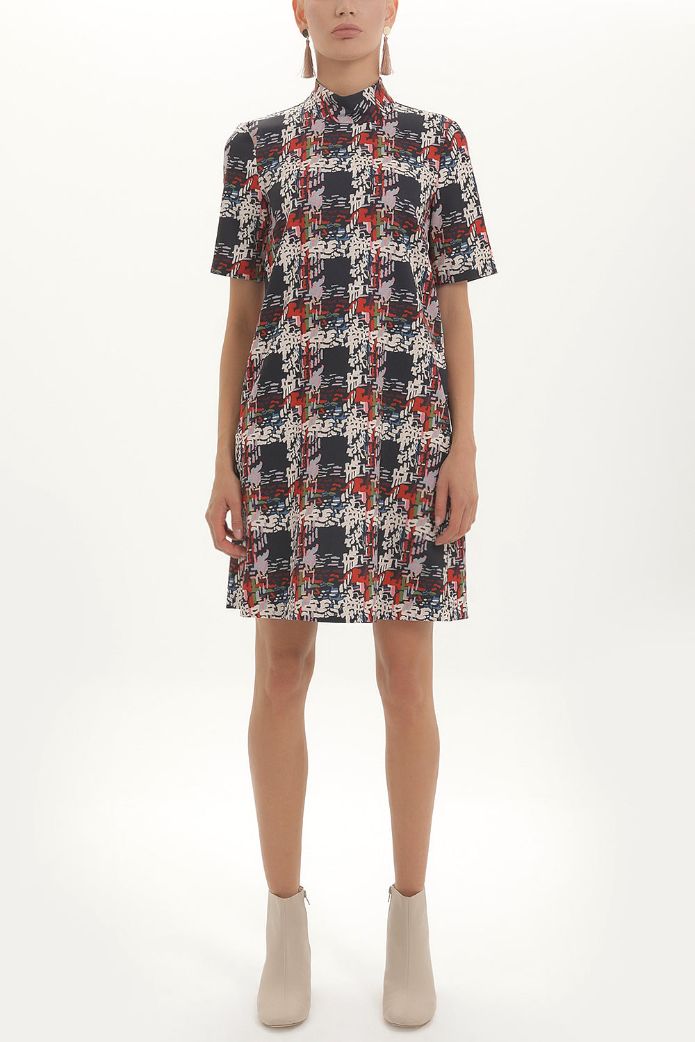 Desenli Balıkçı yaka bol kesim mini elbise 92165