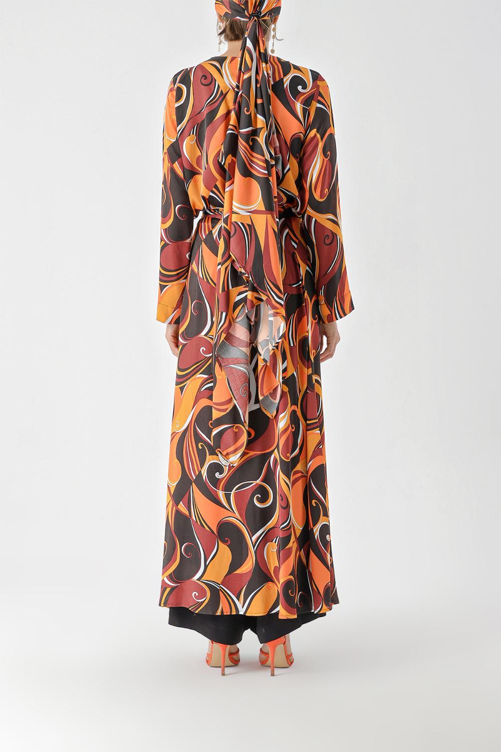 Desenli Beli lastikli pantolonlu etekli şallı dörtlü takım 12326