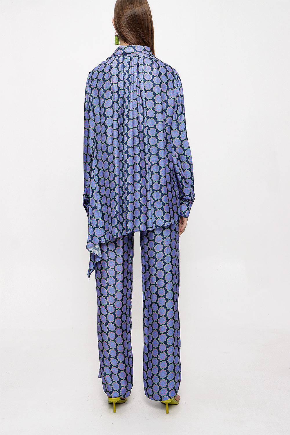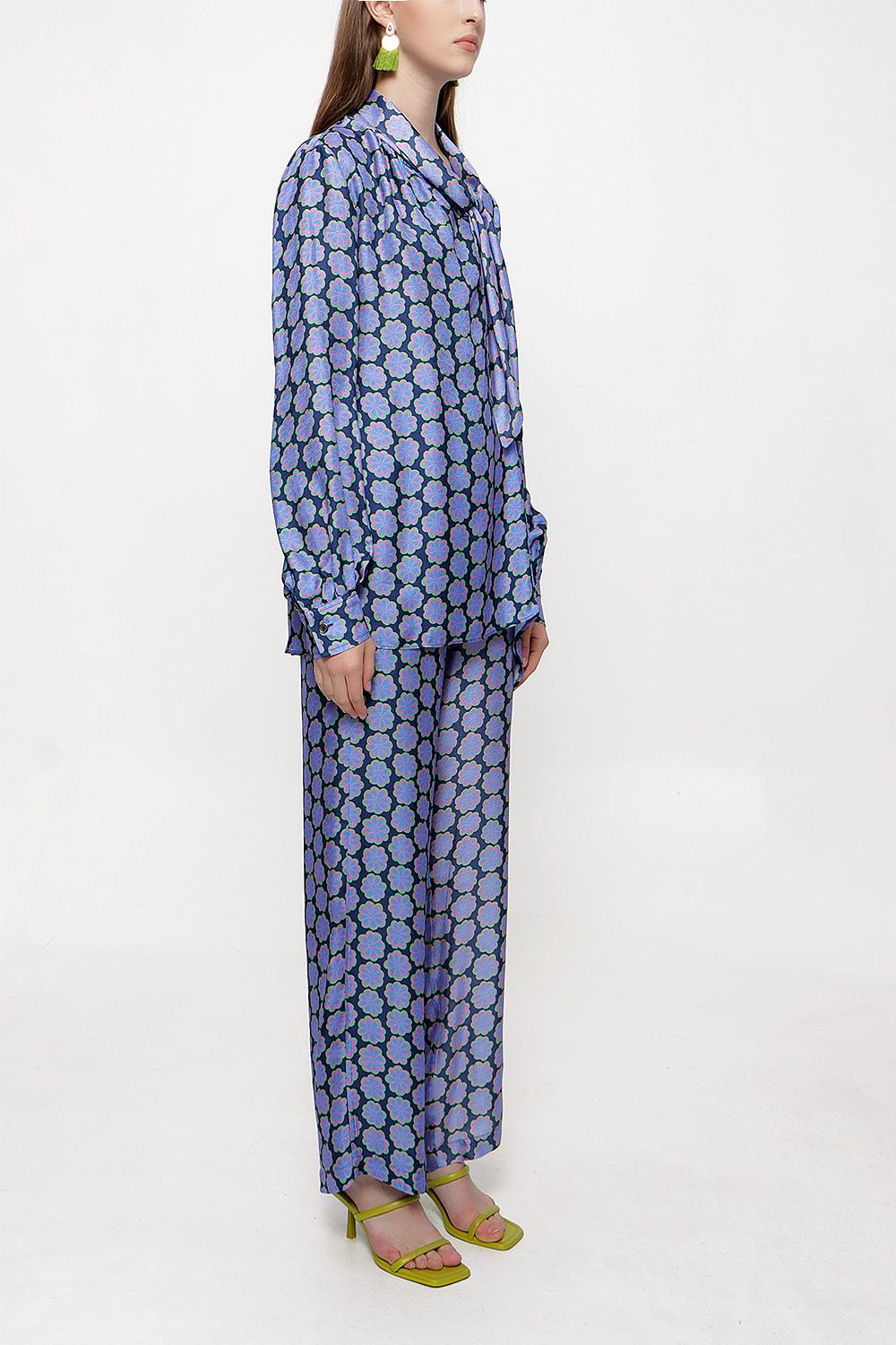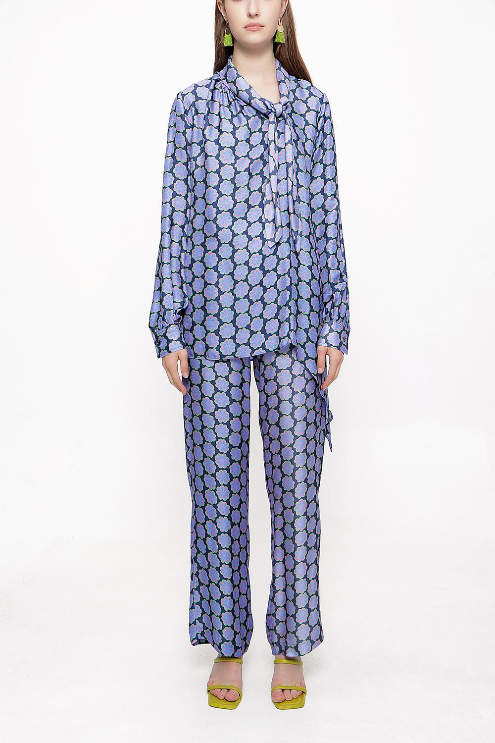 Desenli Beli lastikli pantolonlu ikili takım 12284