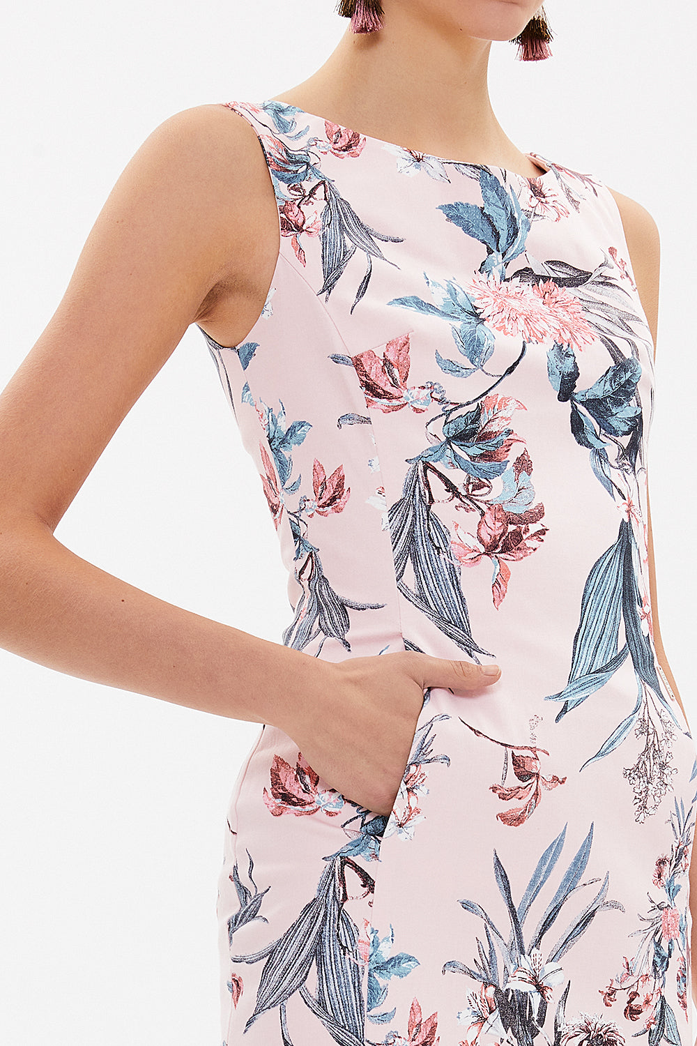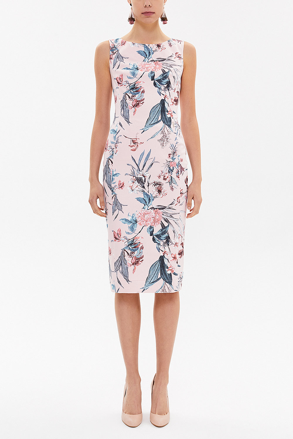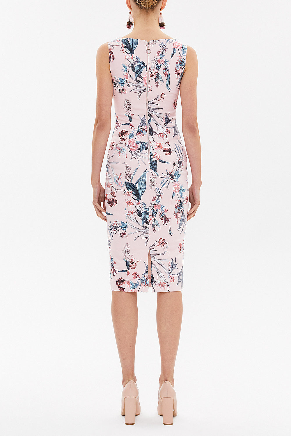 Desenli Fermuarlı dar kesim midi elbise 92363