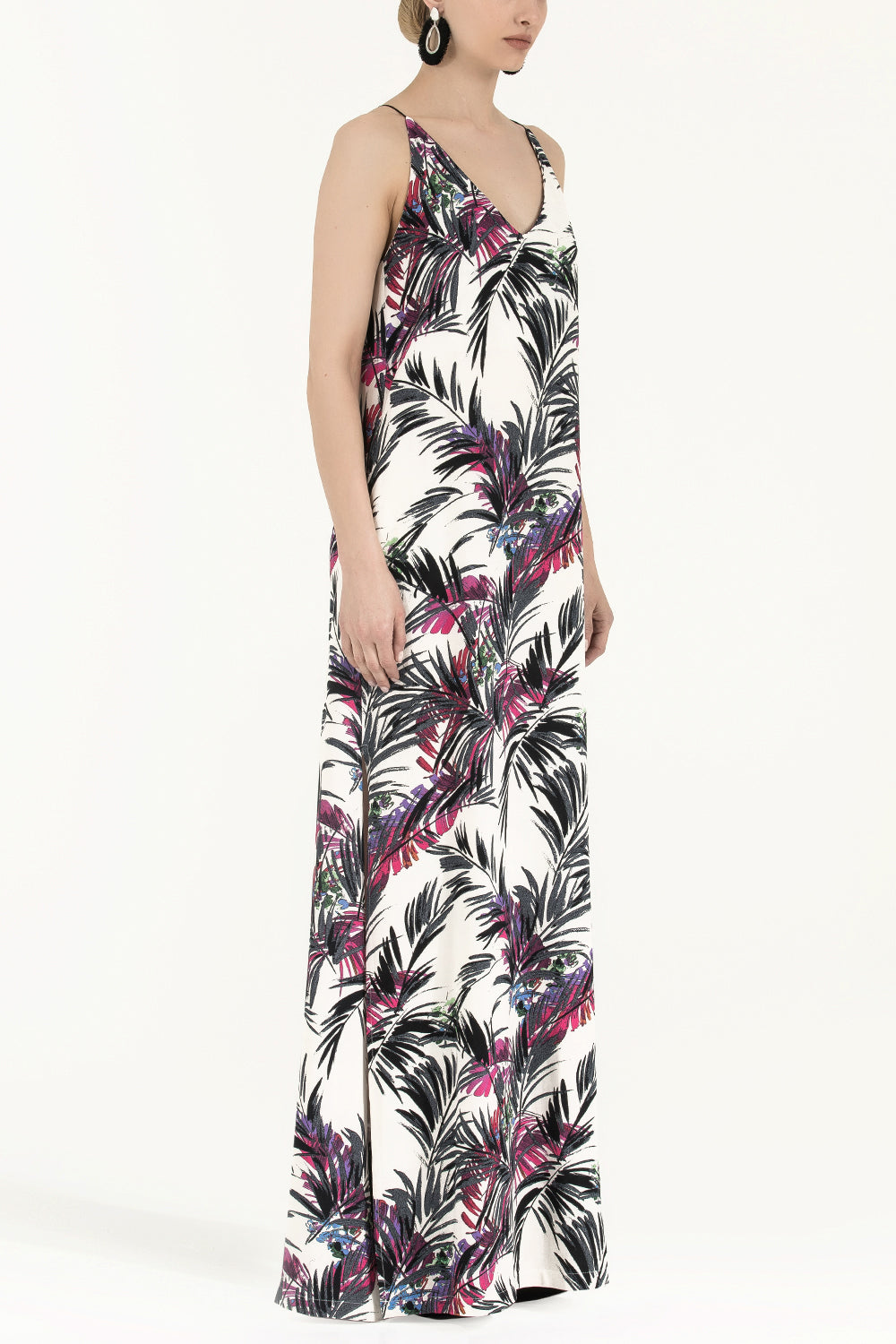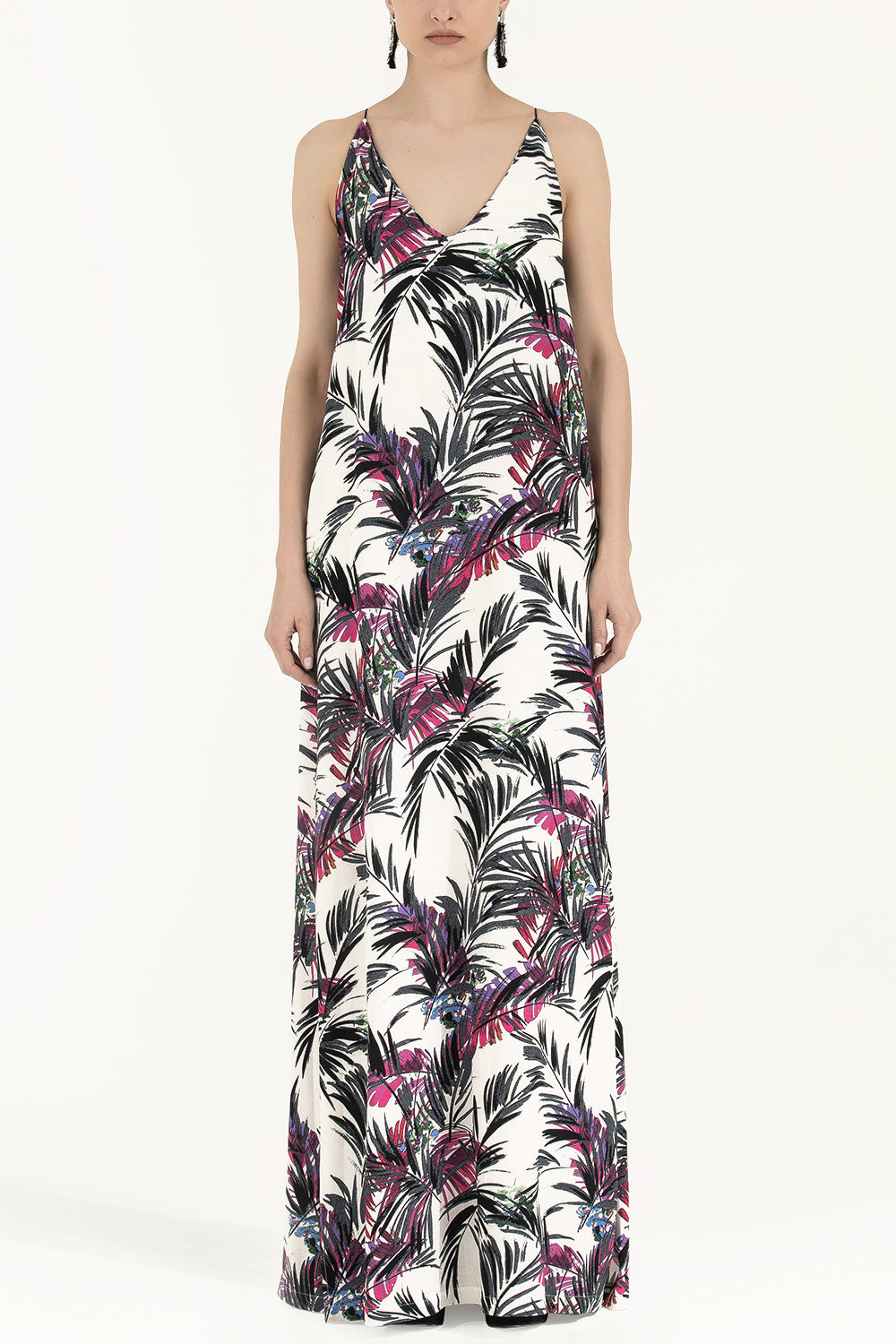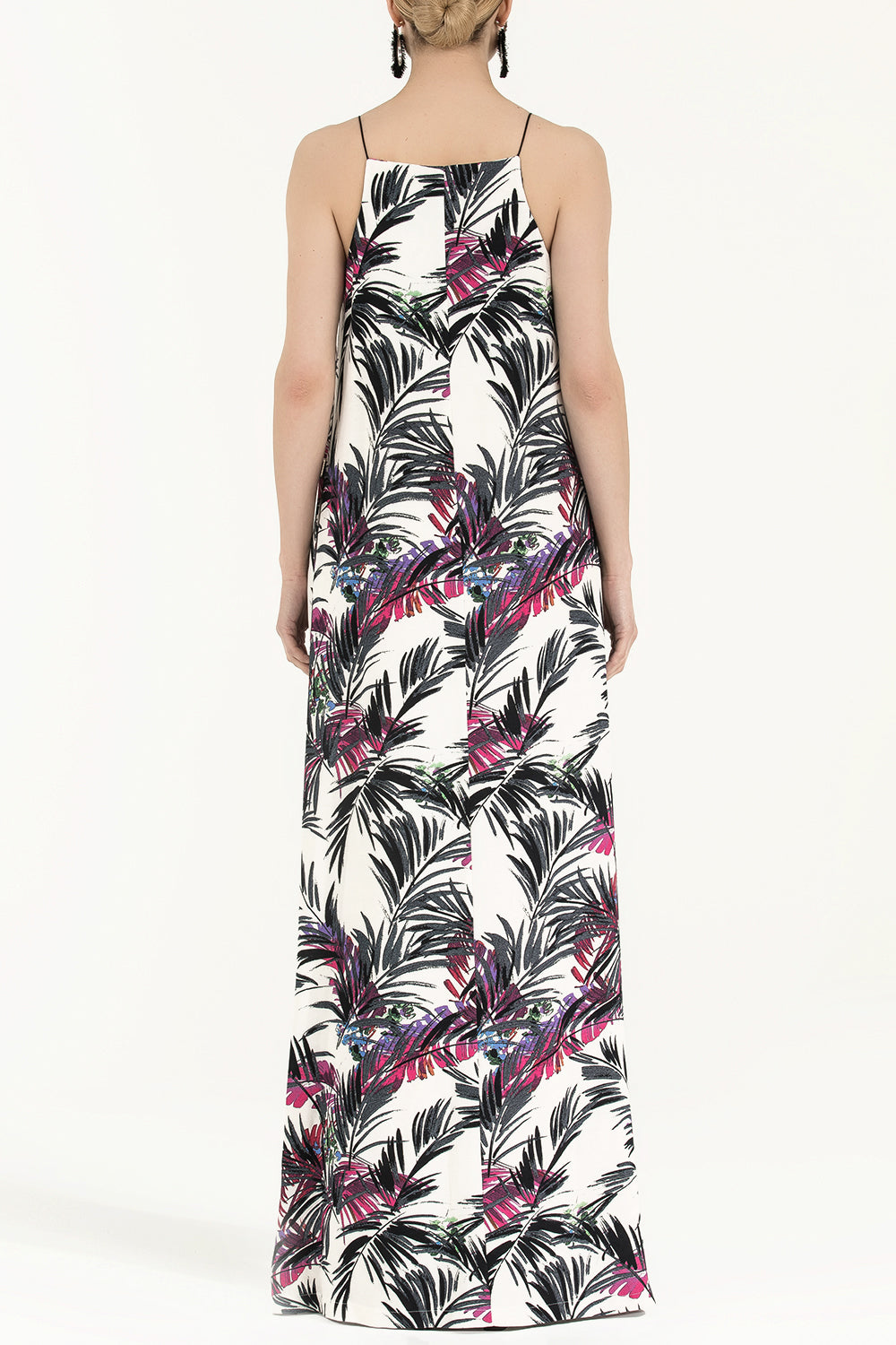 Desenli İp askılı desenli uzun elbise 92392