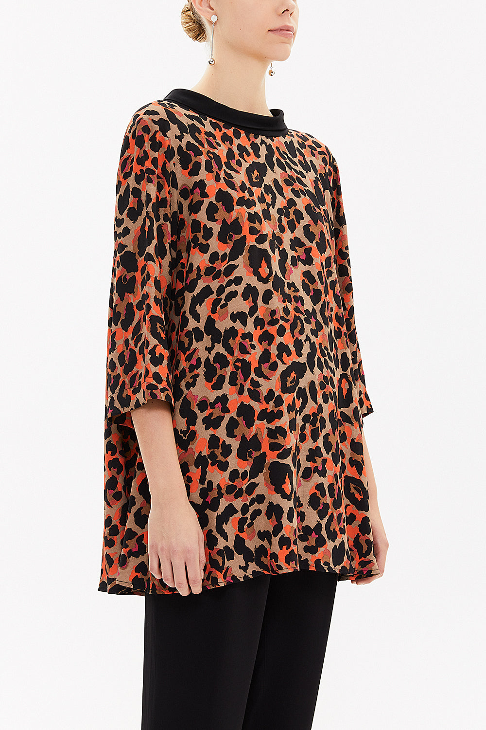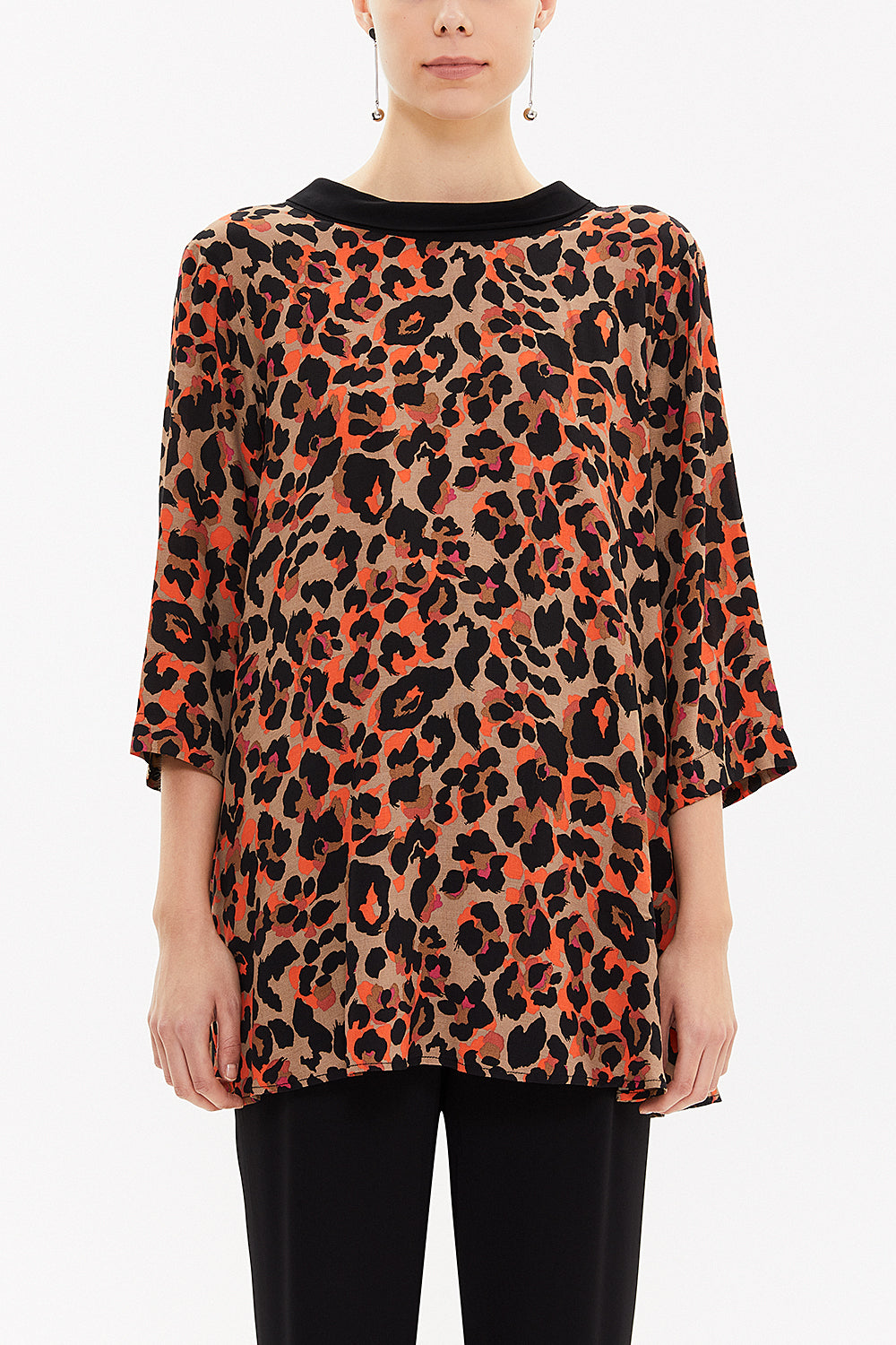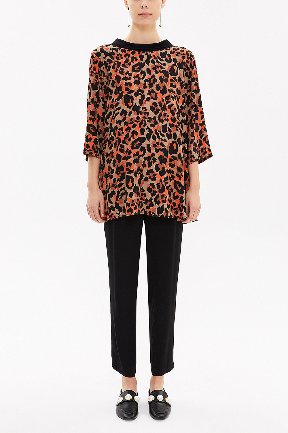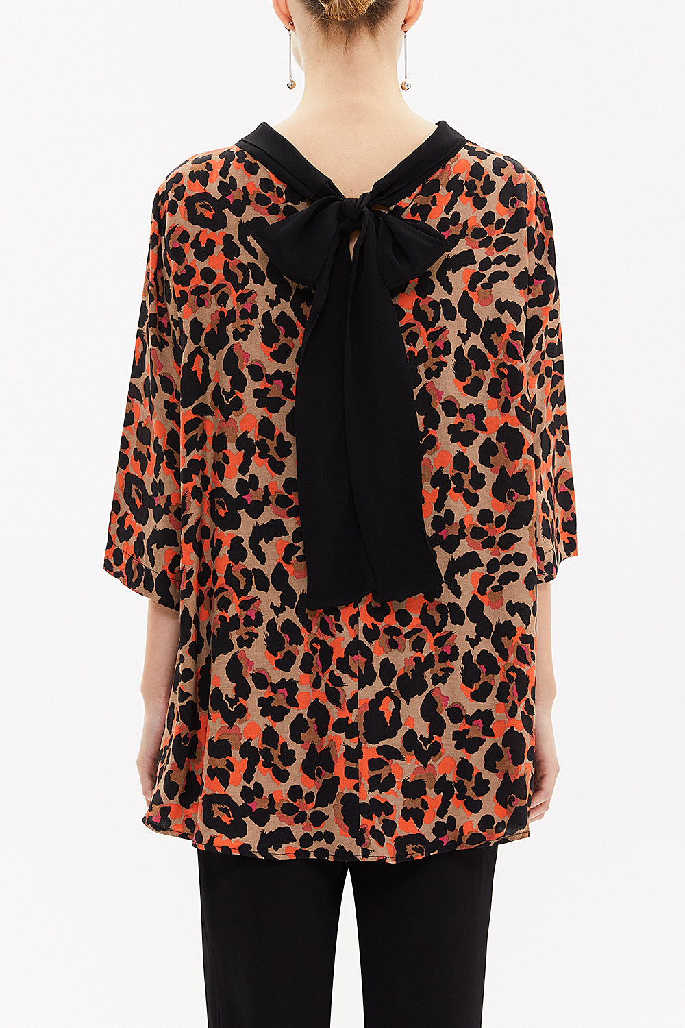 Desenli Kontrast kumaş detaylı bol kesim bluz 19762