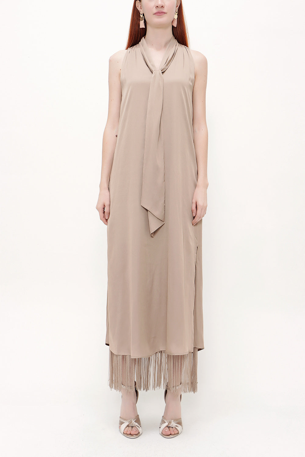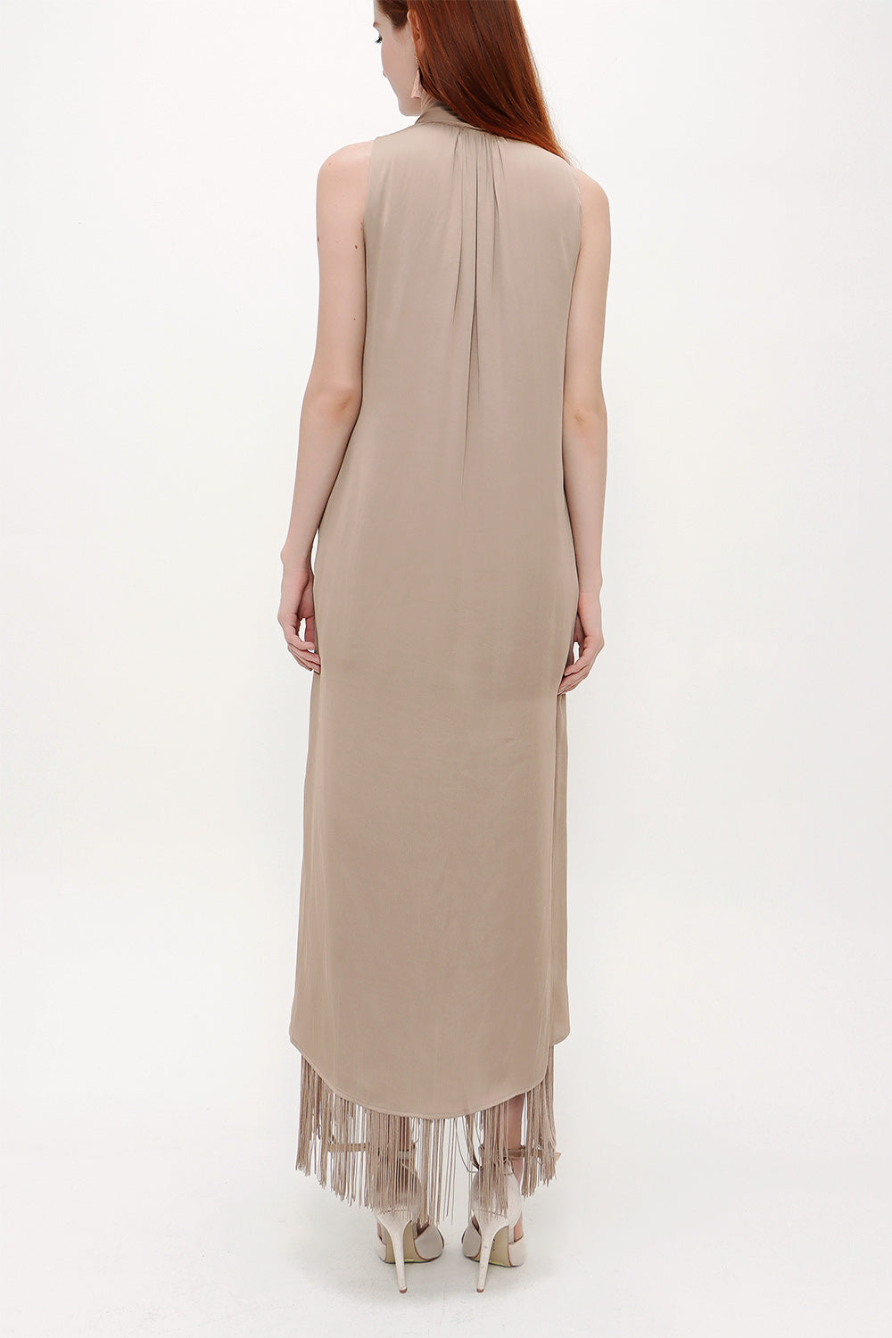 Devetüyü Püsküllü kolsuz yırtmaçlı uzun elbise 92698