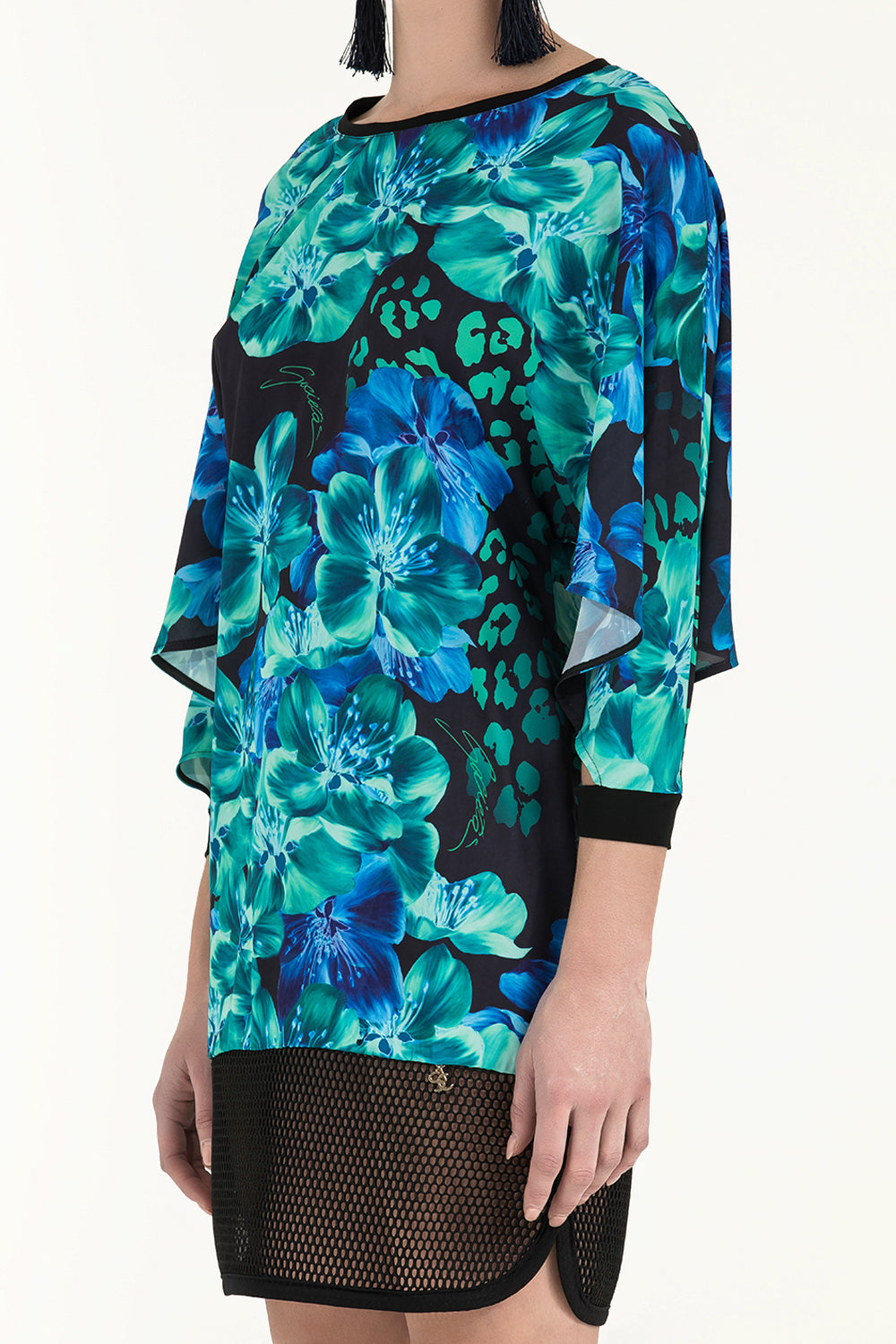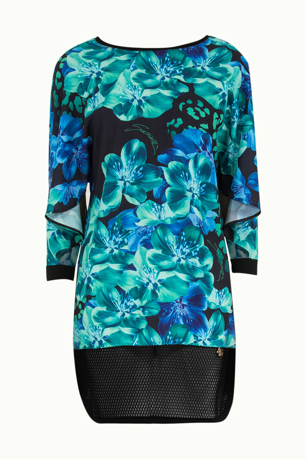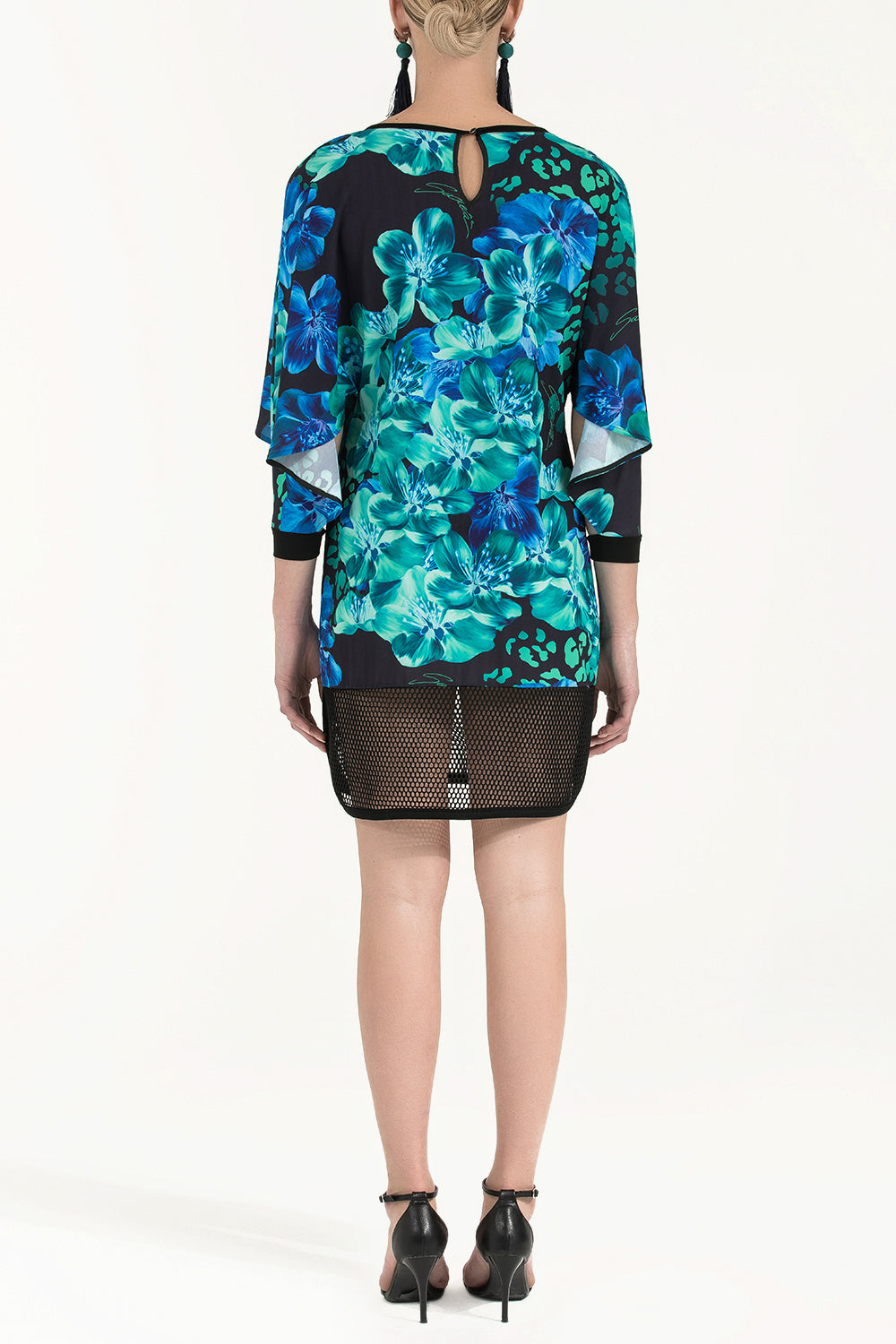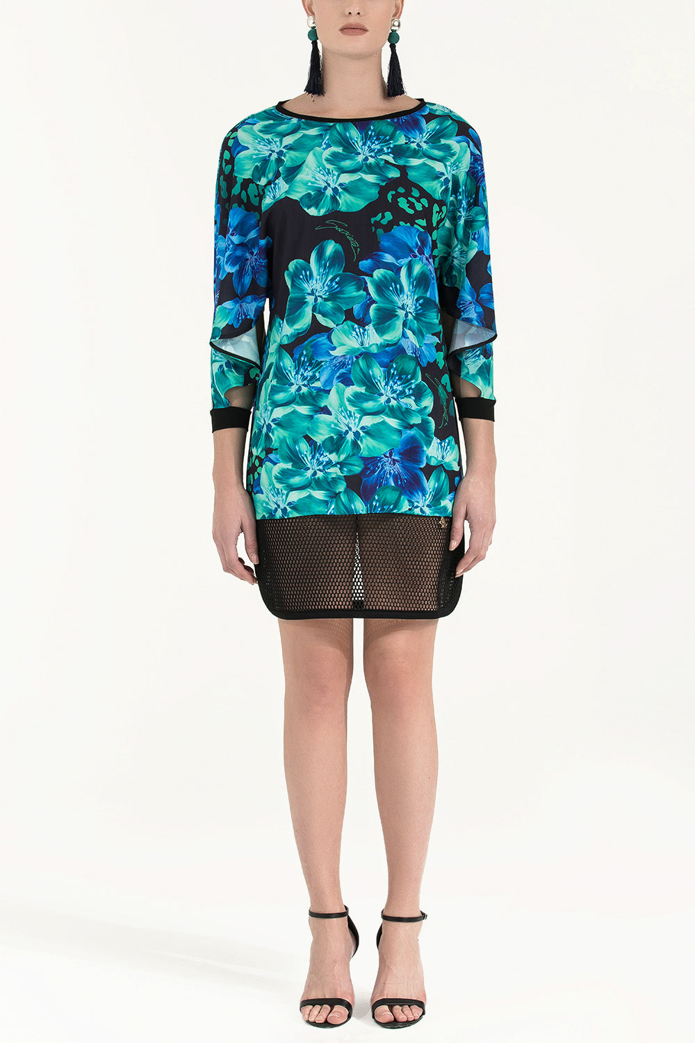 Egzotik Çiçekler File kumaş mixli baskılı mini elbise 91436