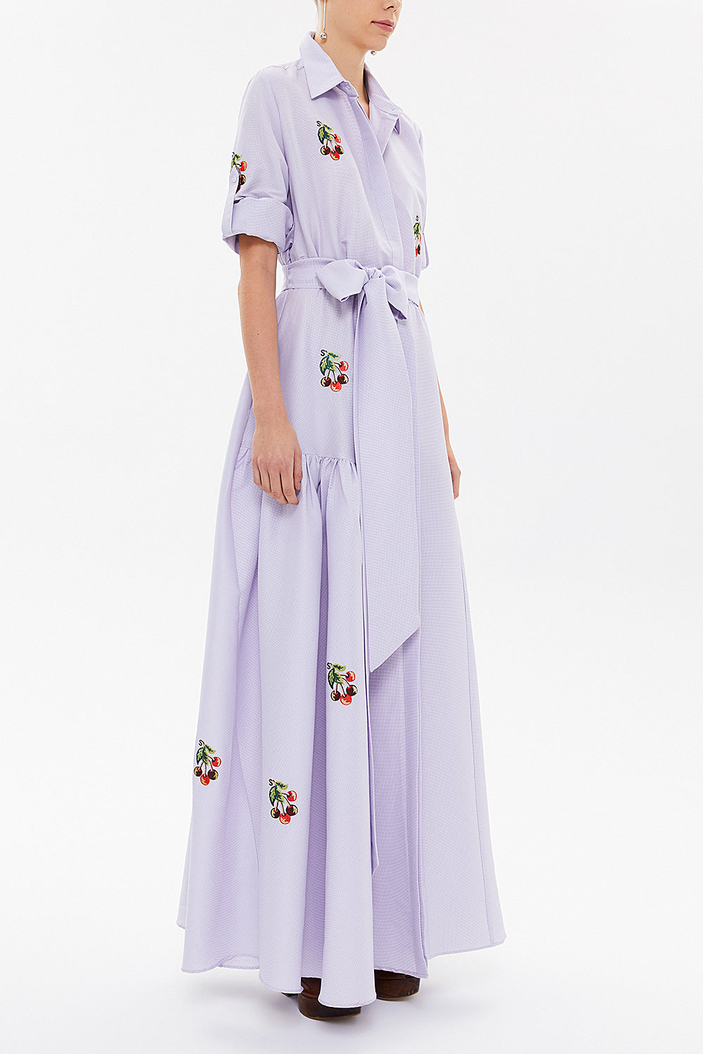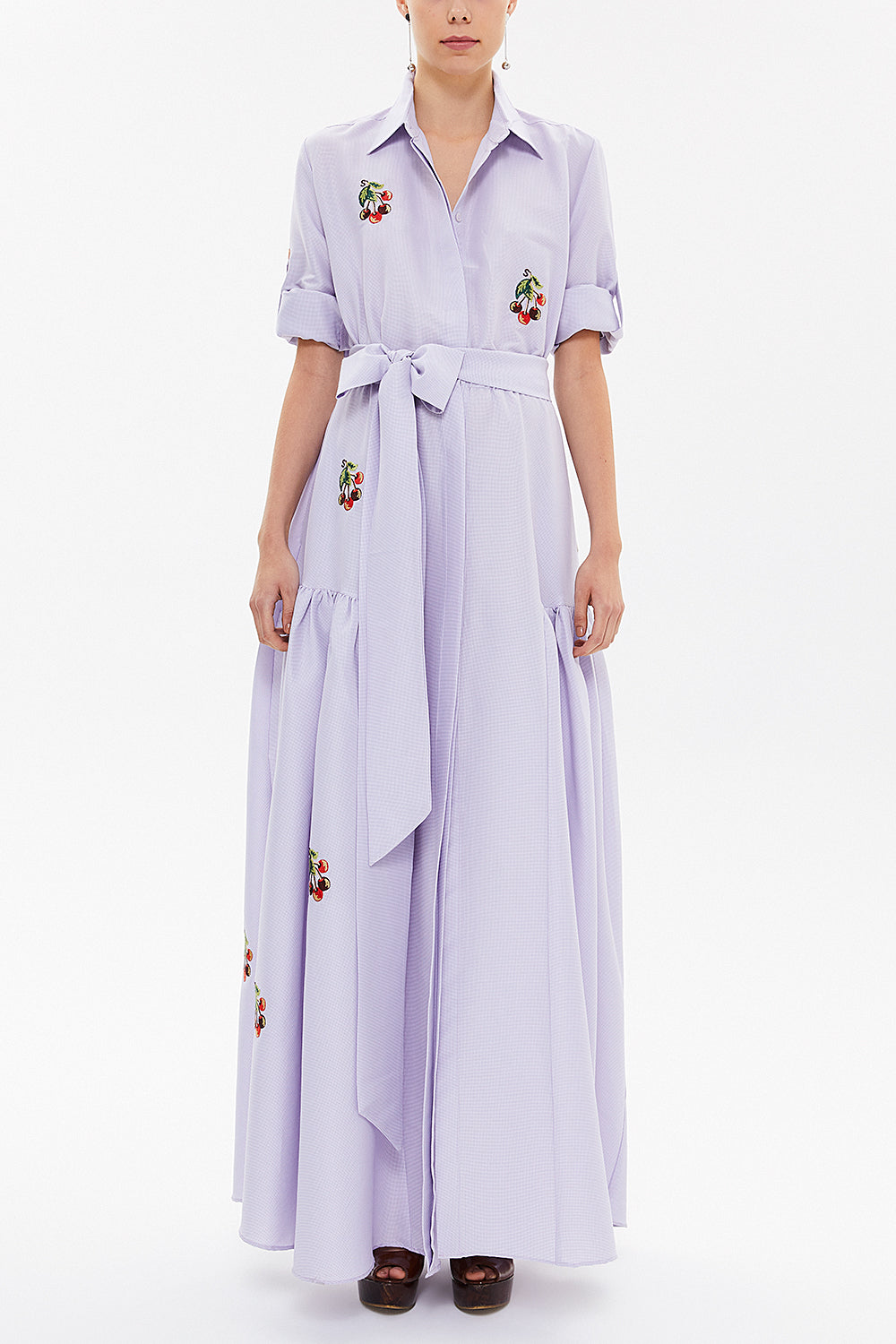 Ekose Nakışlı uzun elbise 92866