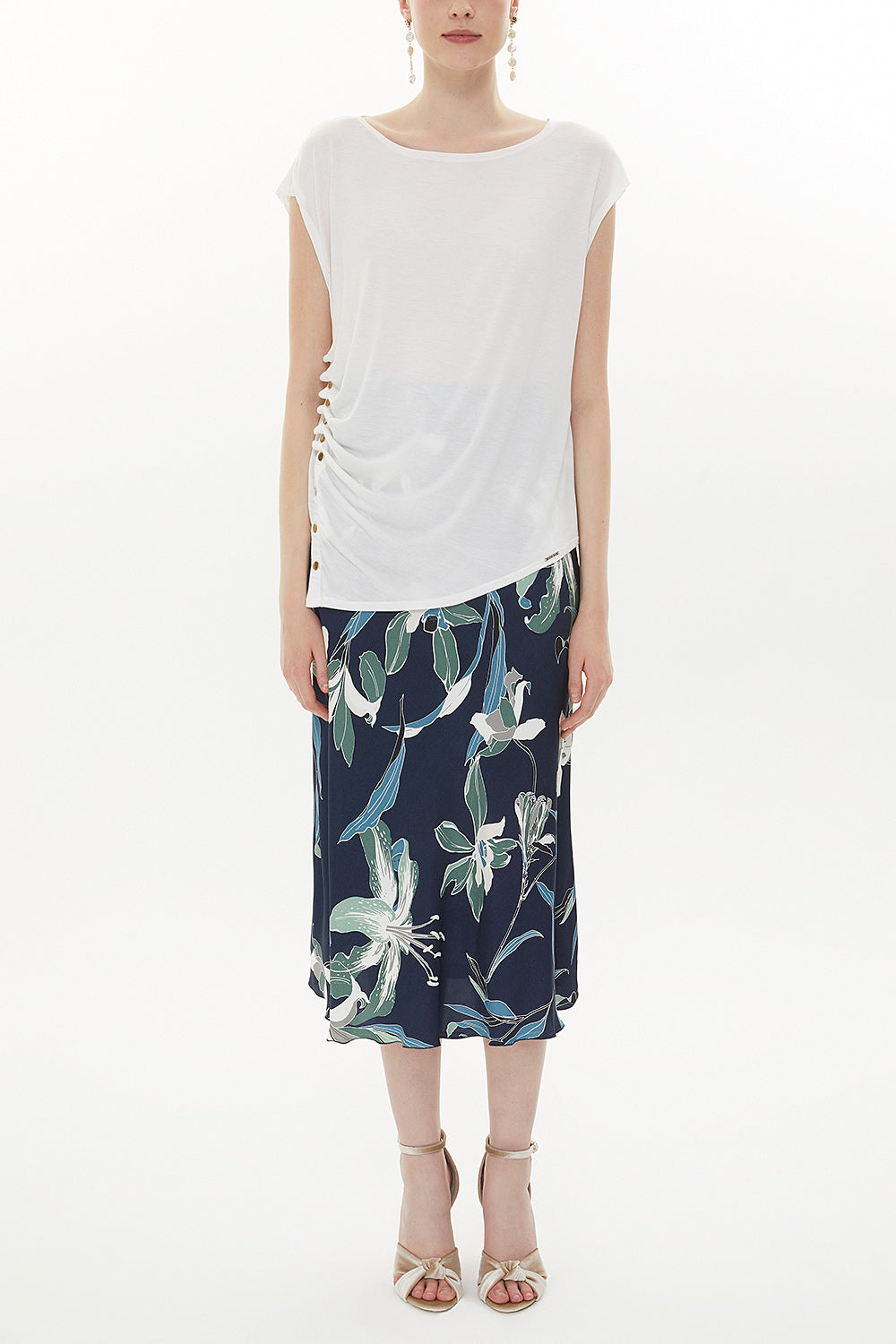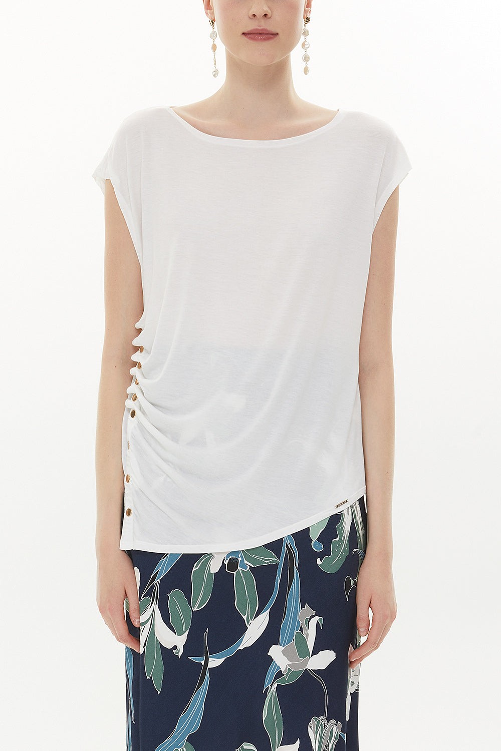Ekru Çıtçıt detaylı salaş bluz 19817