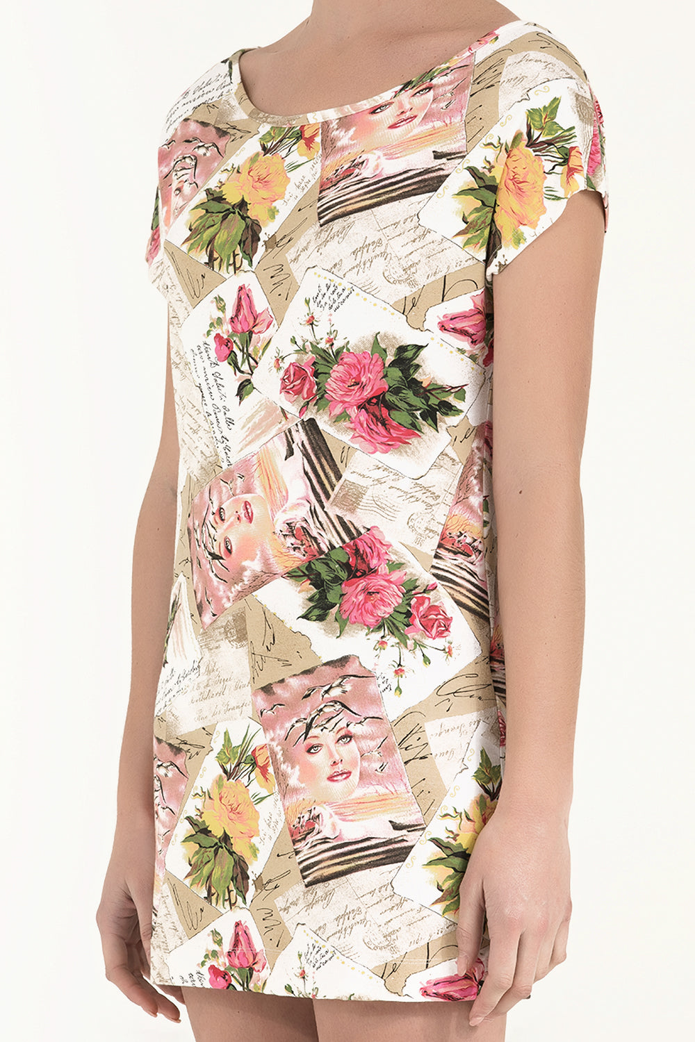 Ekru Desenli Örme mini Elbise 91021