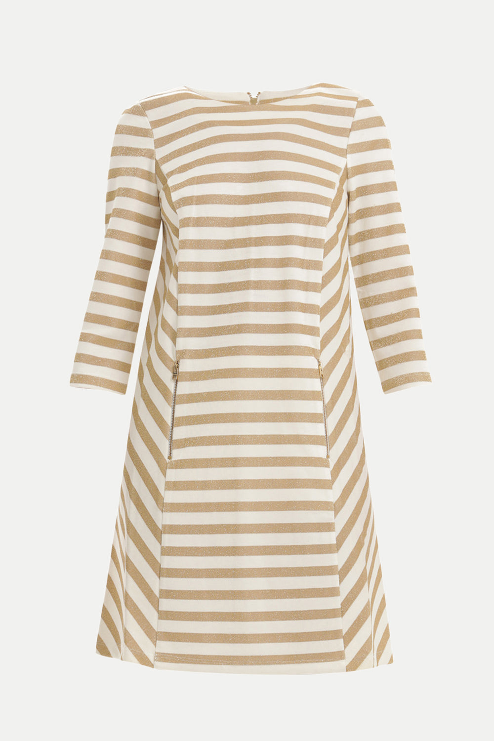 Ekru Fermuarlı çizgili örme mini elbise 91450