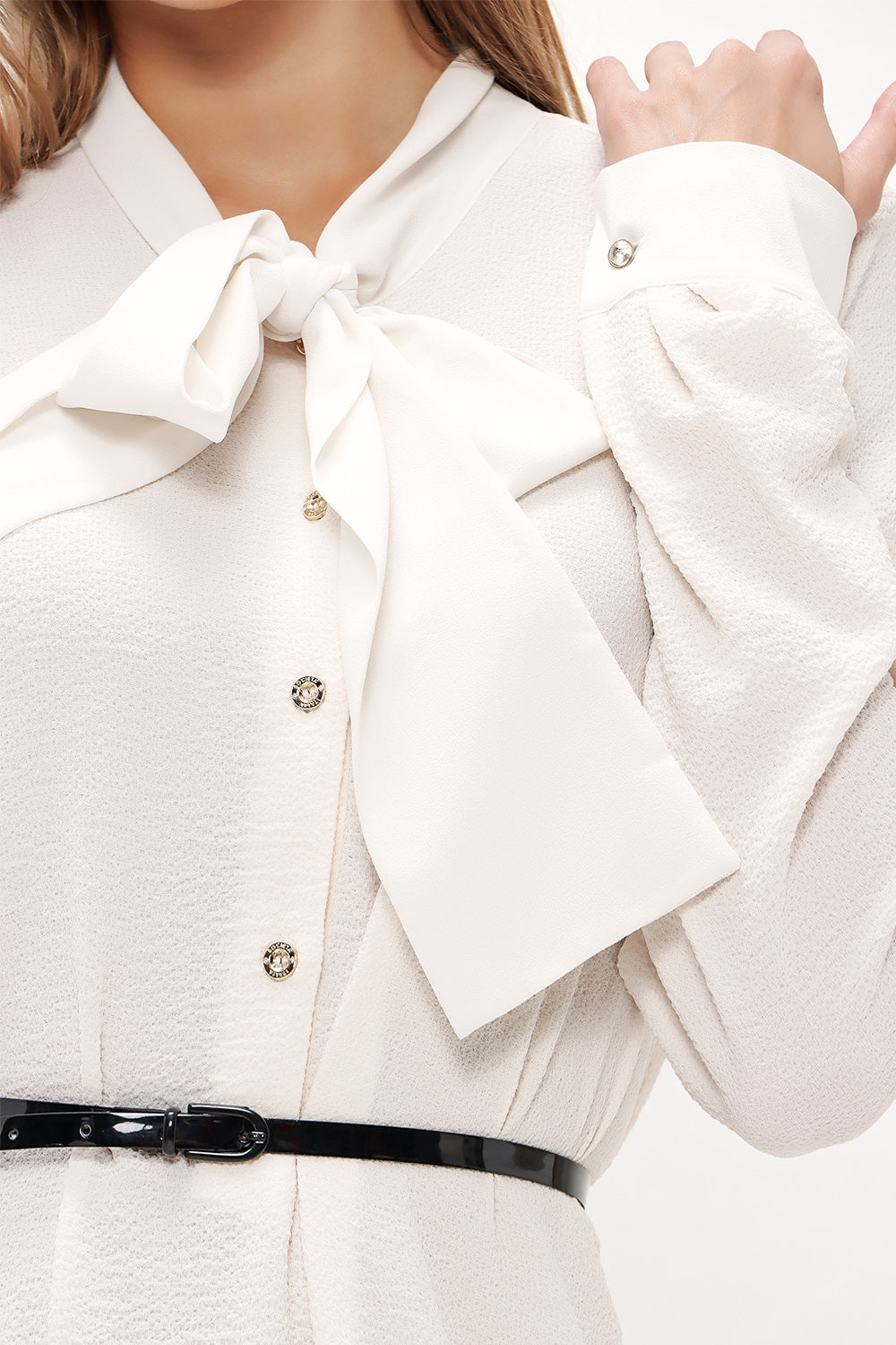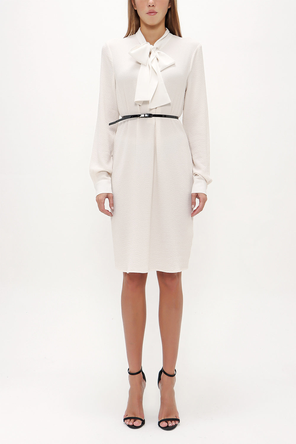 Ekru Yakası fiyonklu krep mini elbise 91355