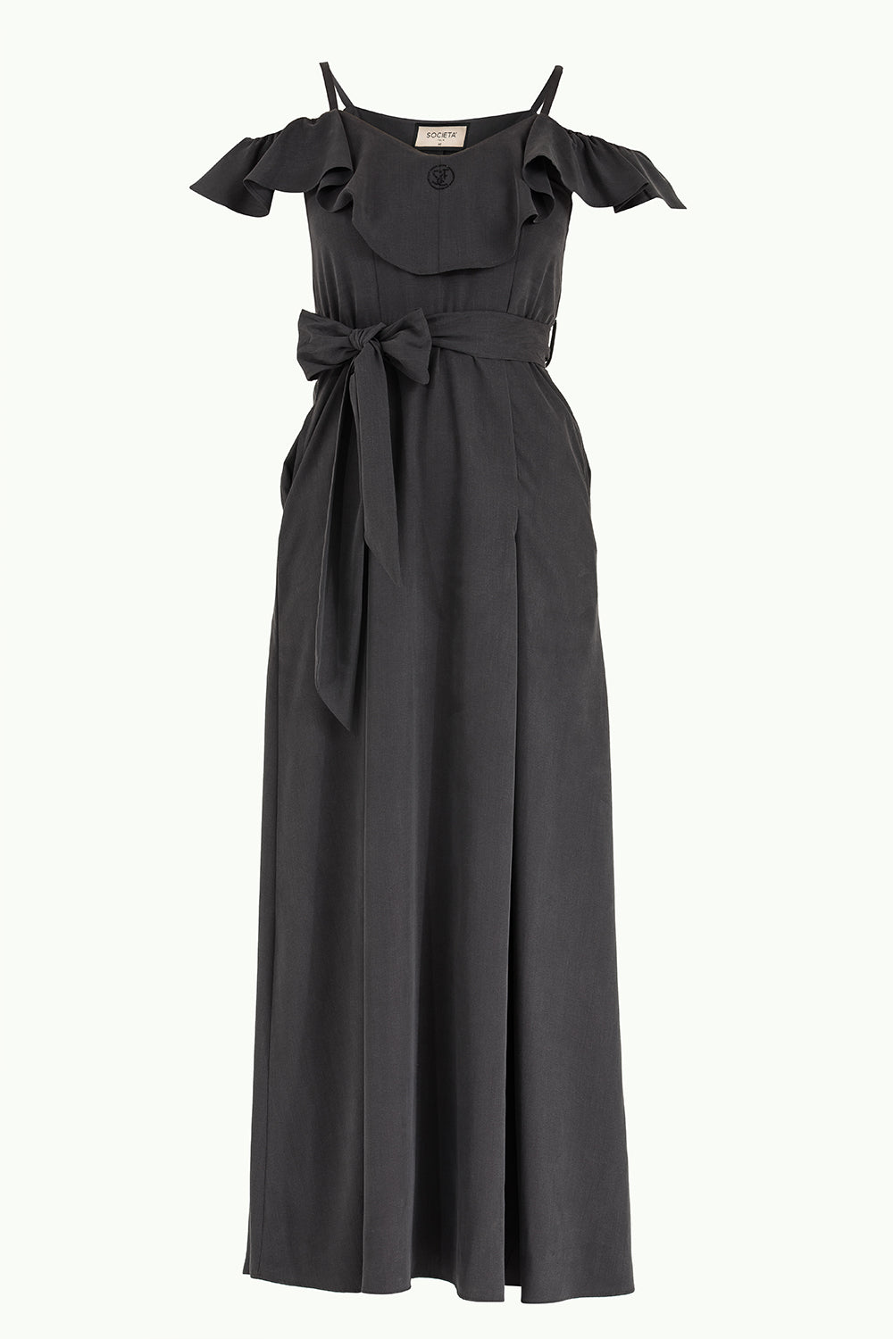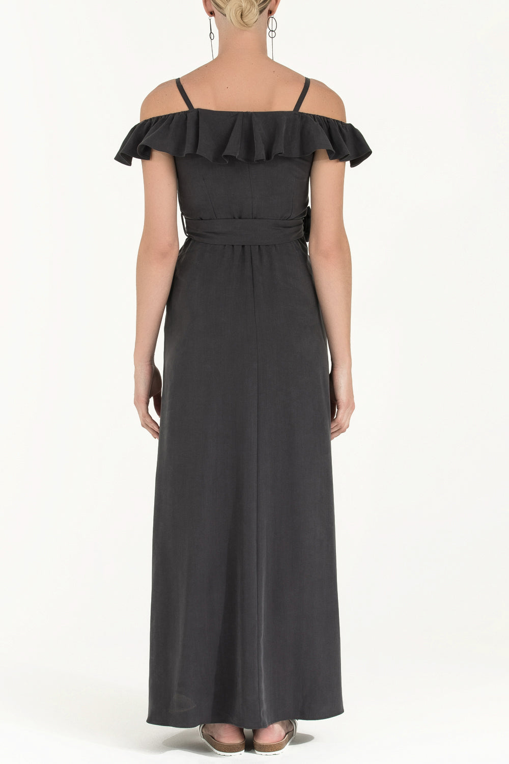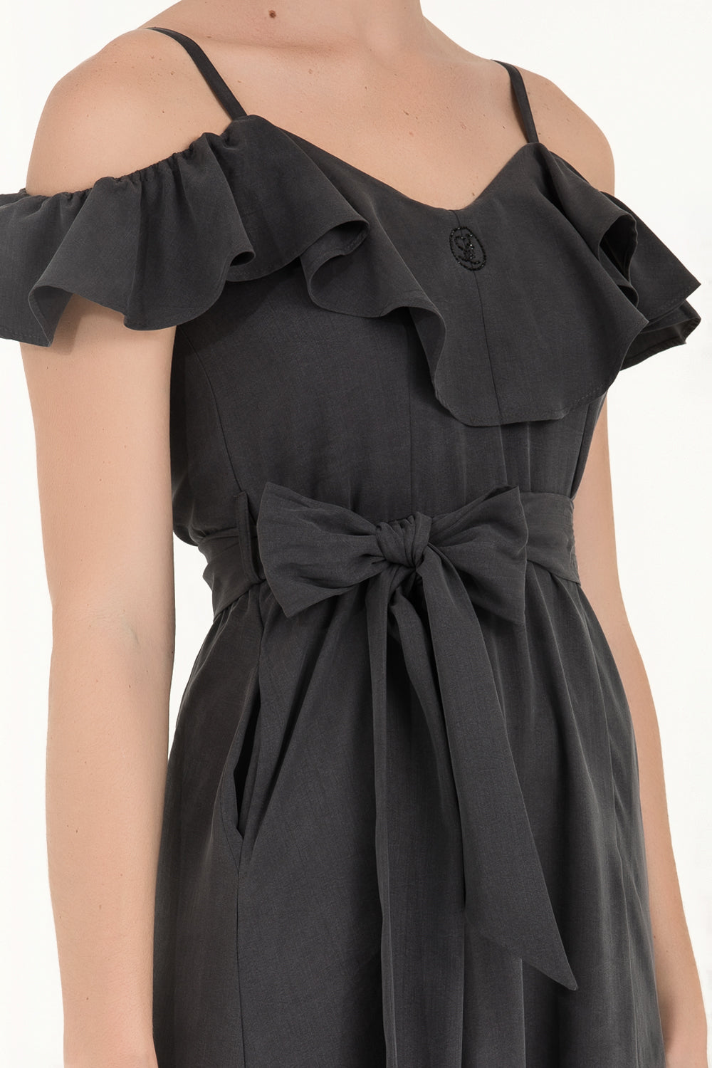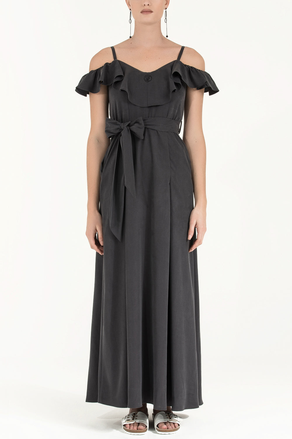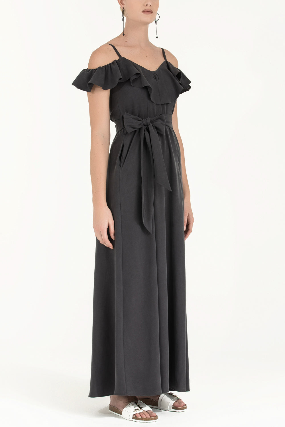 Füme Valon düşük omuz uzun elbise 92318