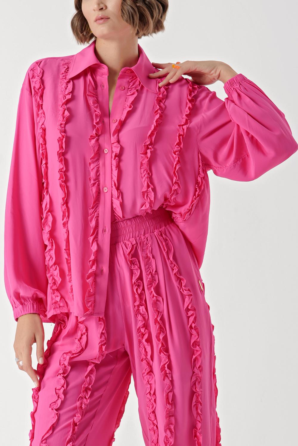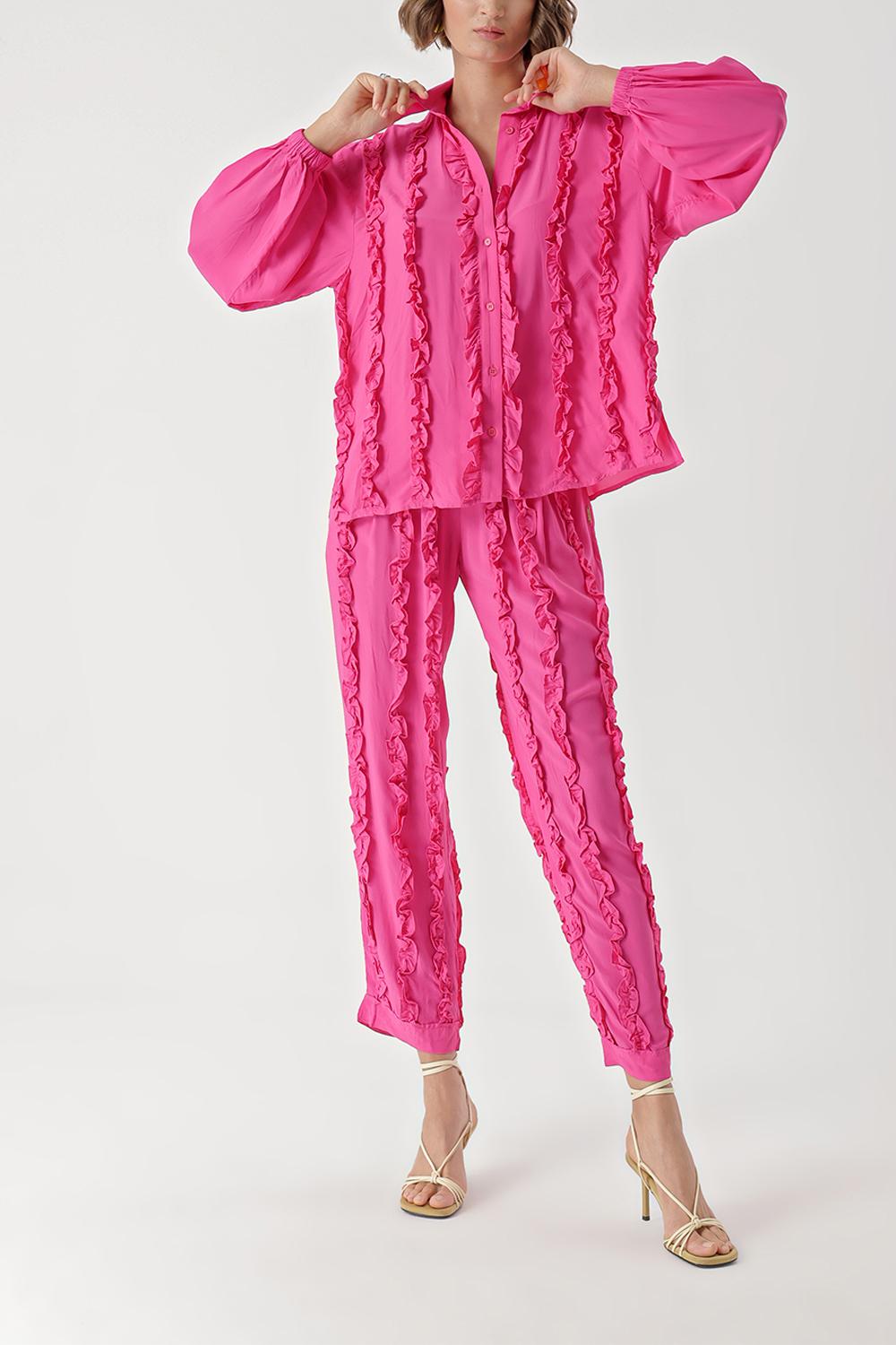 Fuşya Fırfır detaylı pantolon ve gömlekli takım 12312