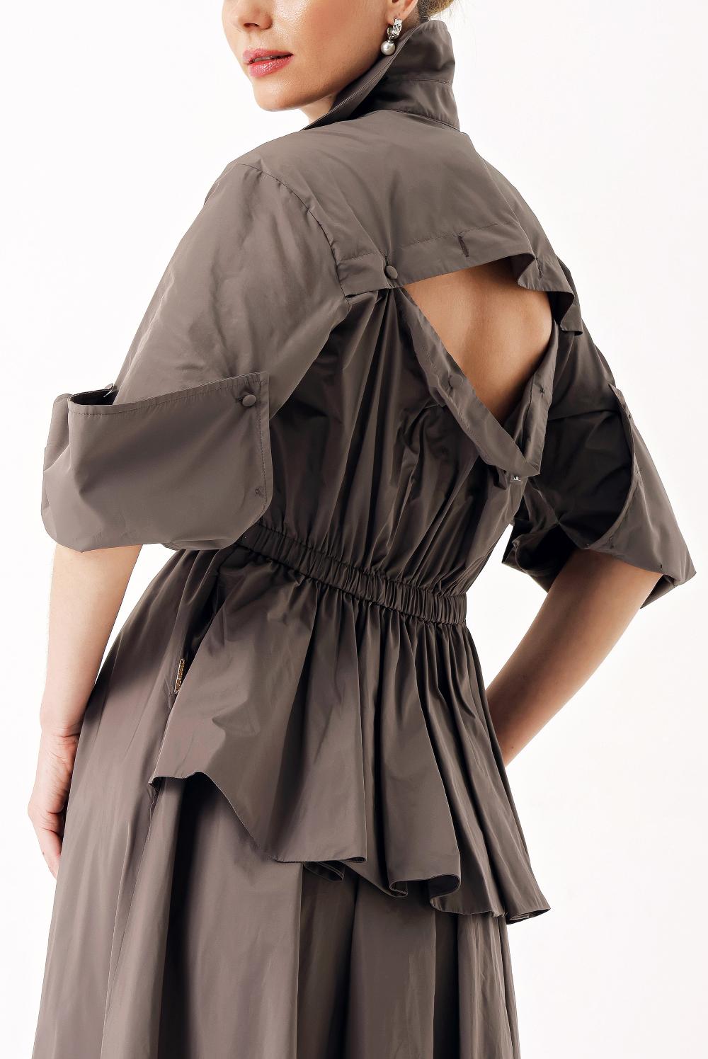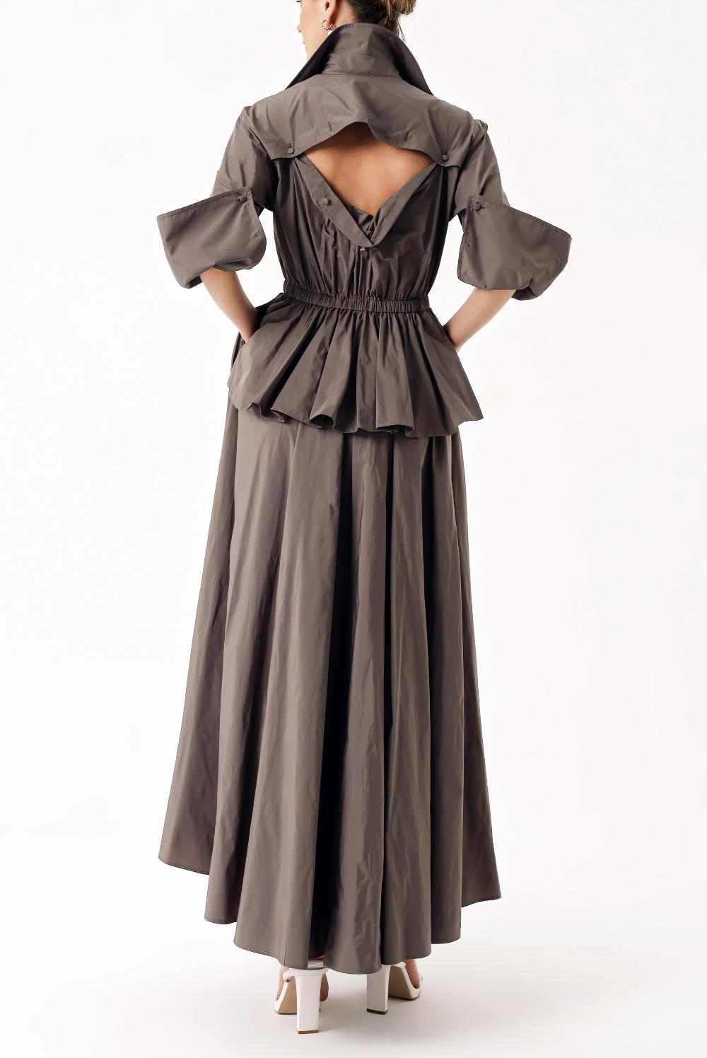 Gri Açılabilir sırt detaylı beli lastikli uzun gömlek elbise 94392