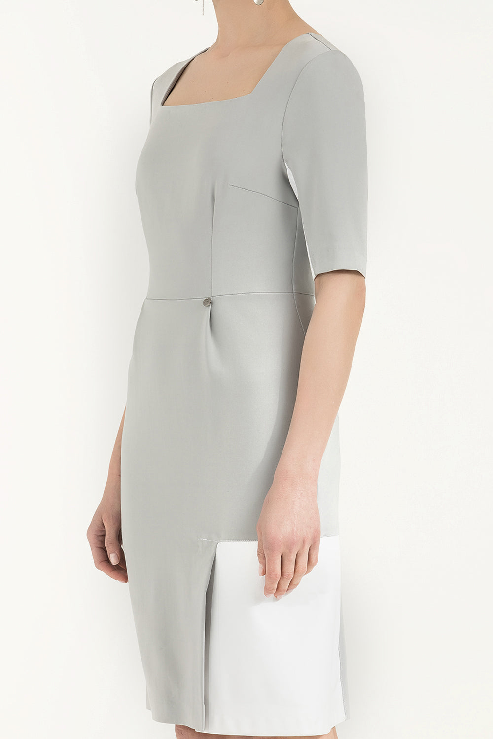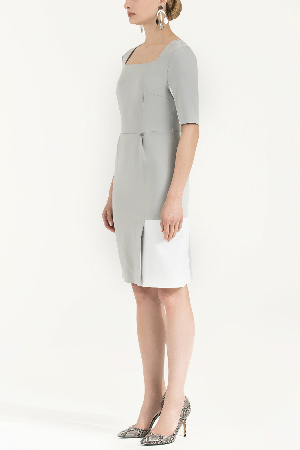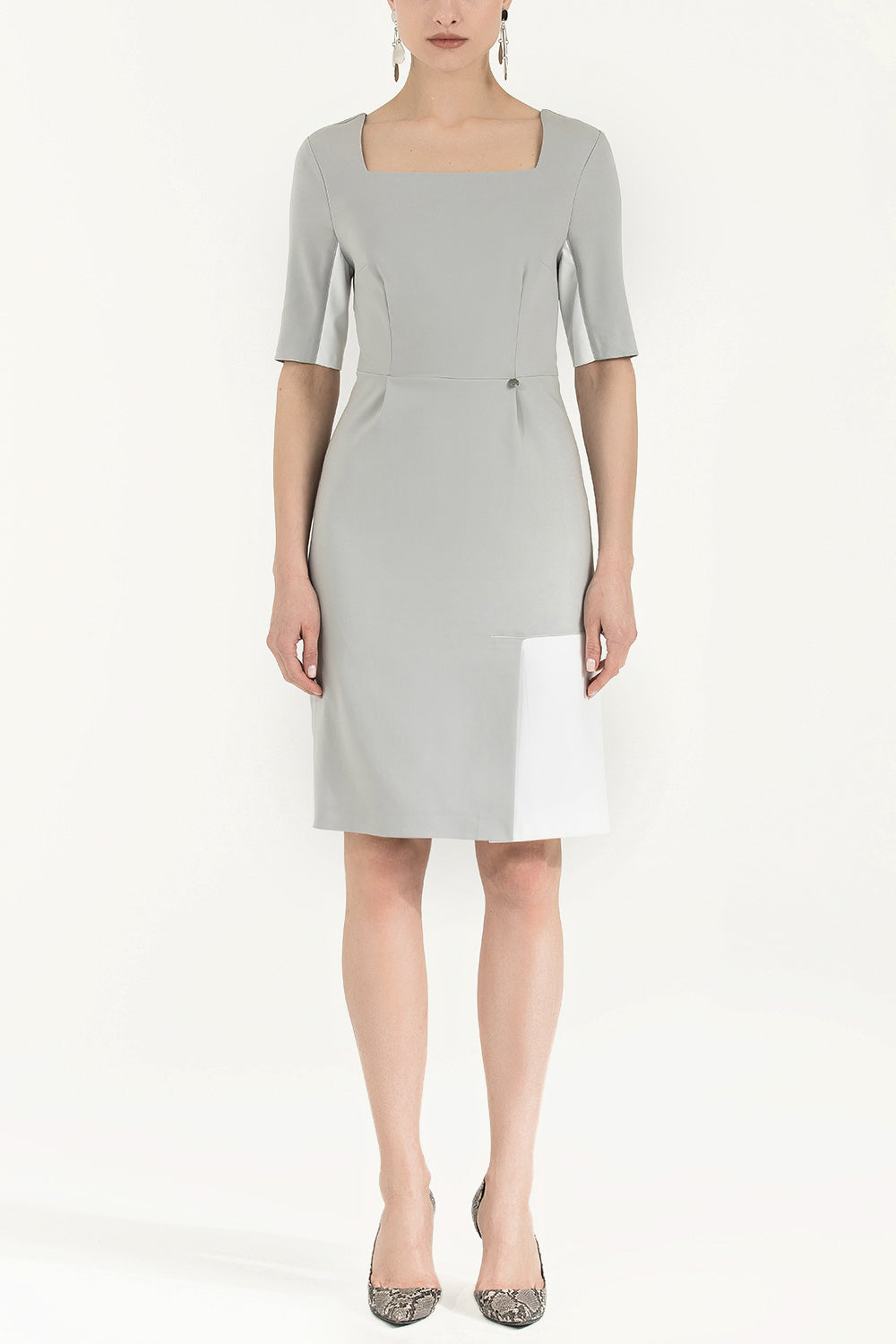 Gri Suni deri mixli dar kesim mini elbise 91980