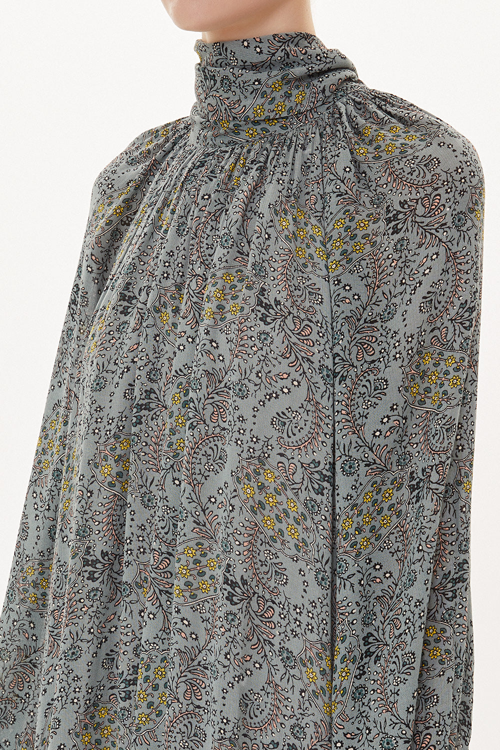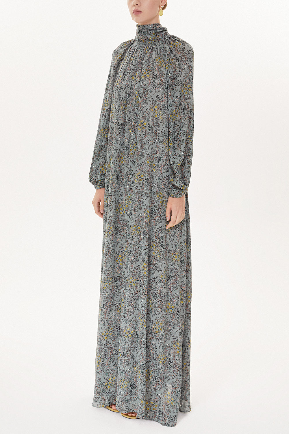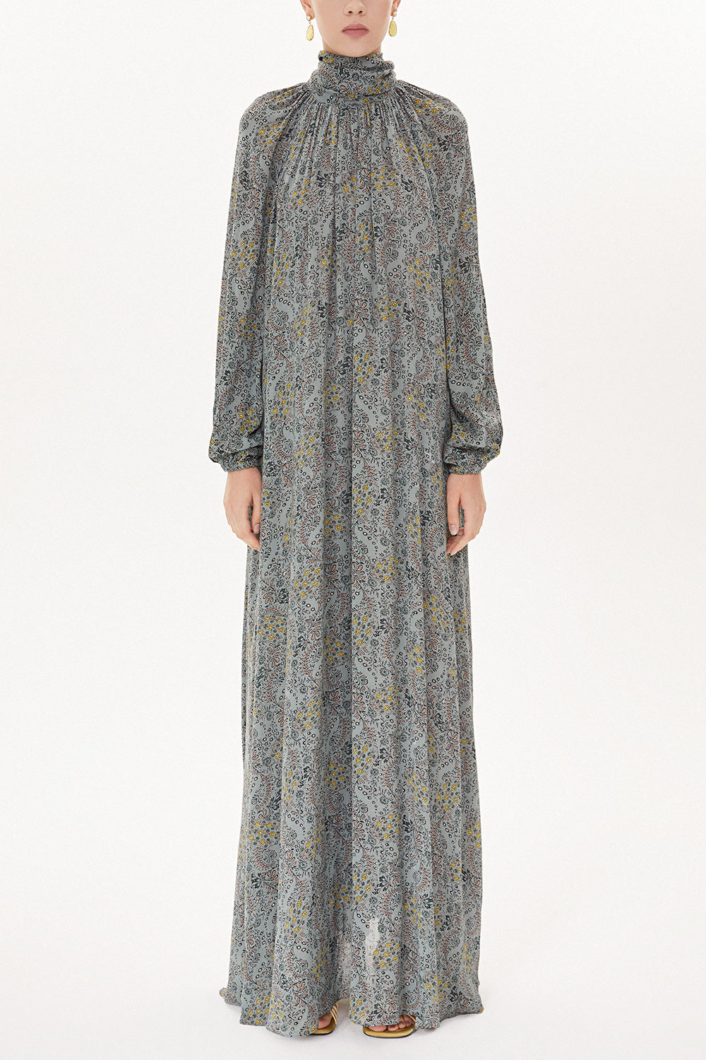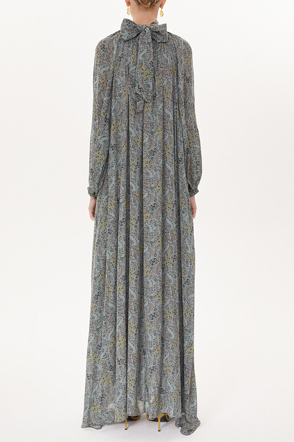 Gri Yakadan bağcıklı bol kesim elbise 93491