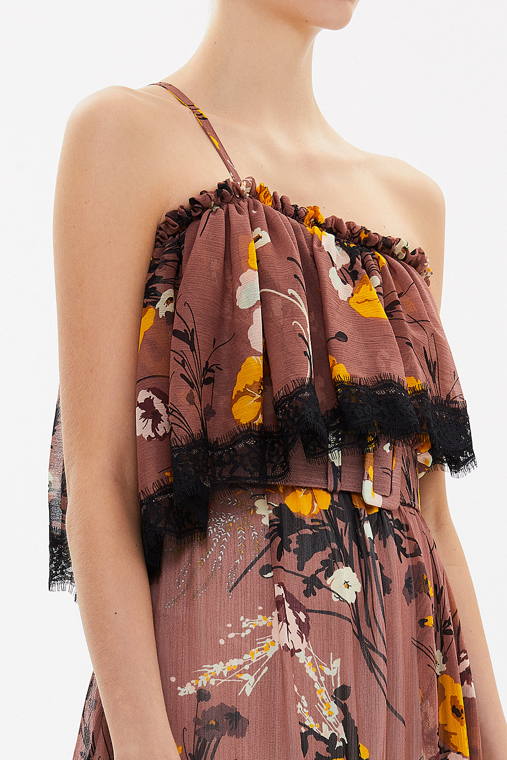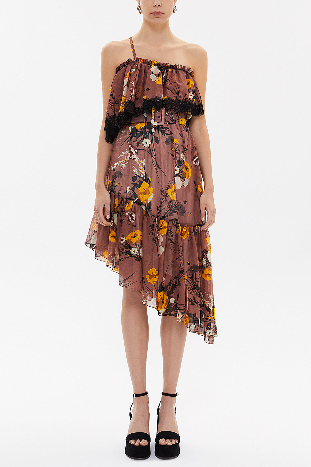 Gül Kemerli ve dantelli straplez midi elbise 92315