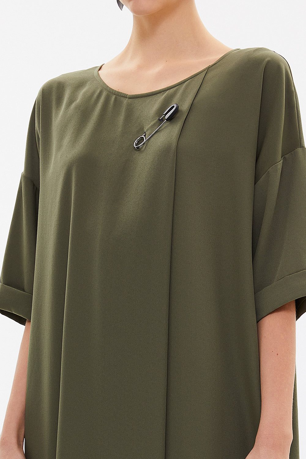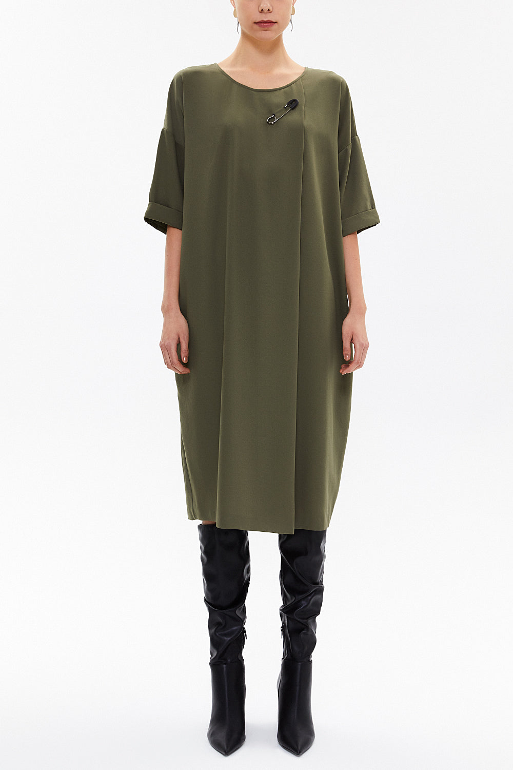 Haki Aksesuar detaylı bol kesim midi elbise 92811