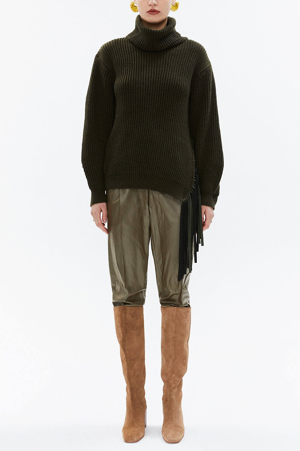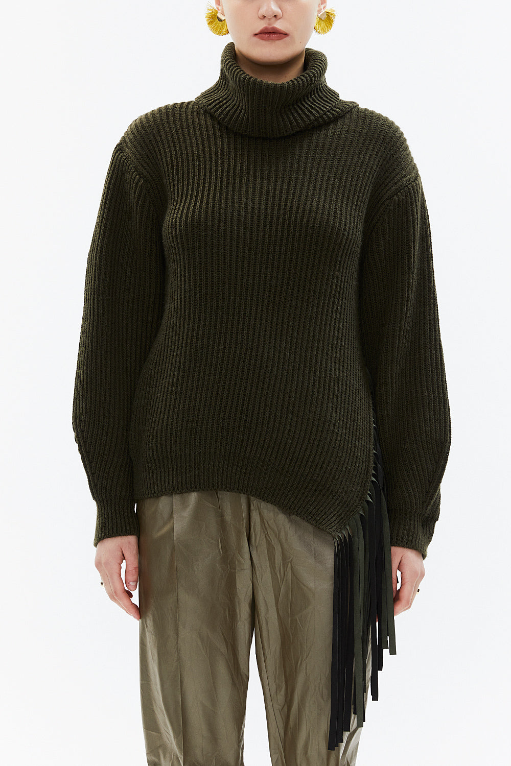 Haki Balıkçı yaka püskül detaylı triko kazak 19816