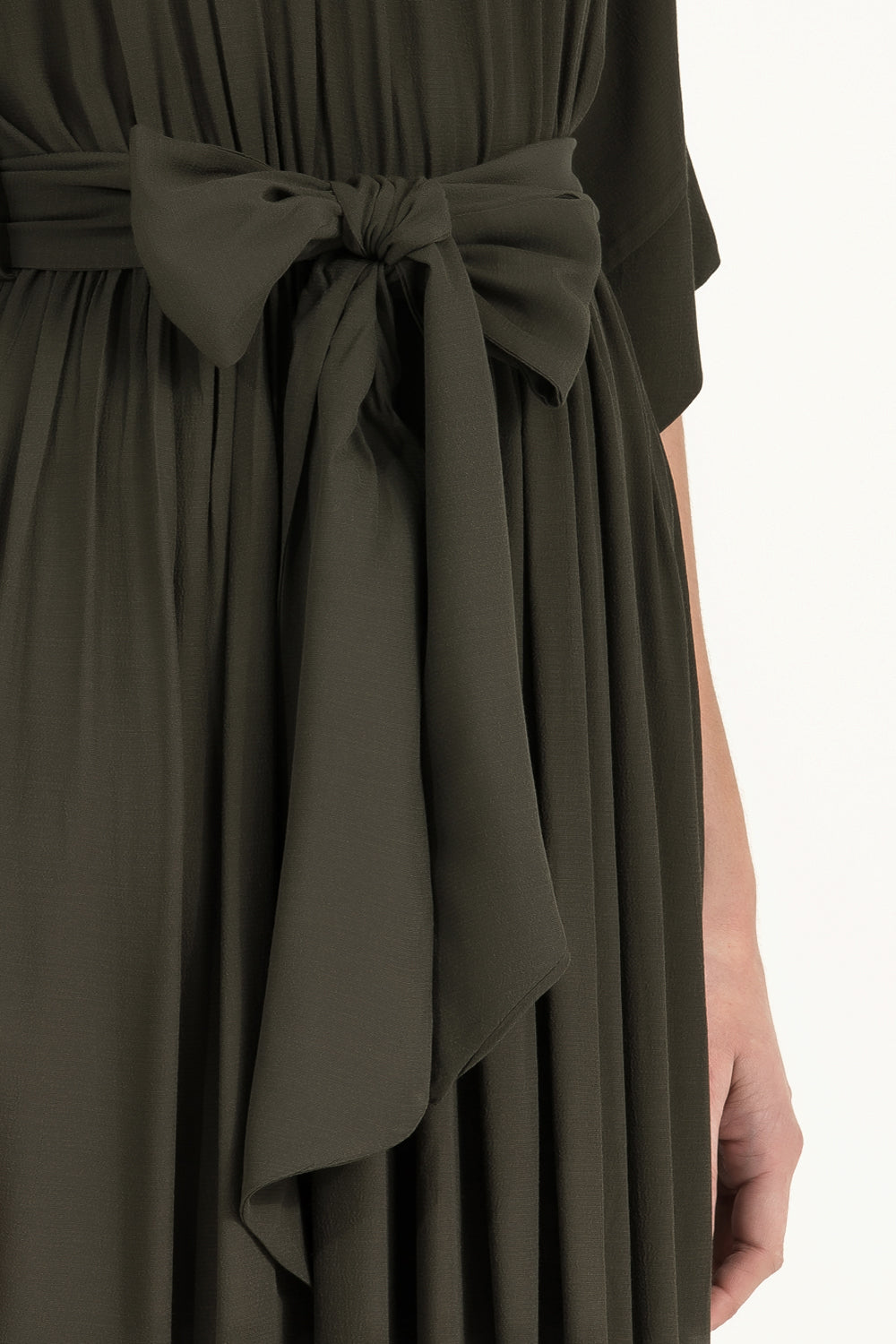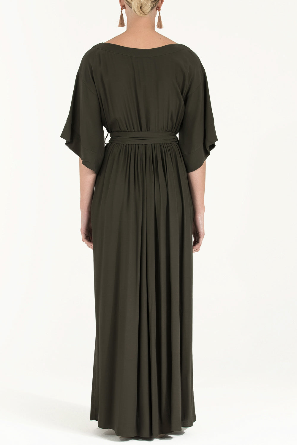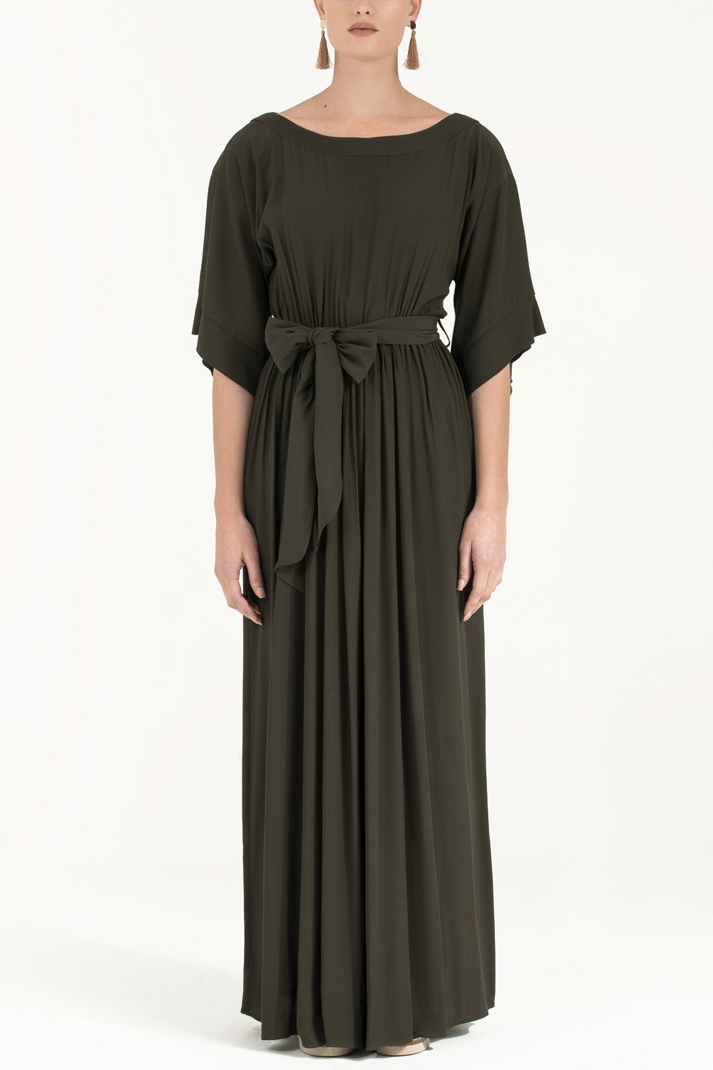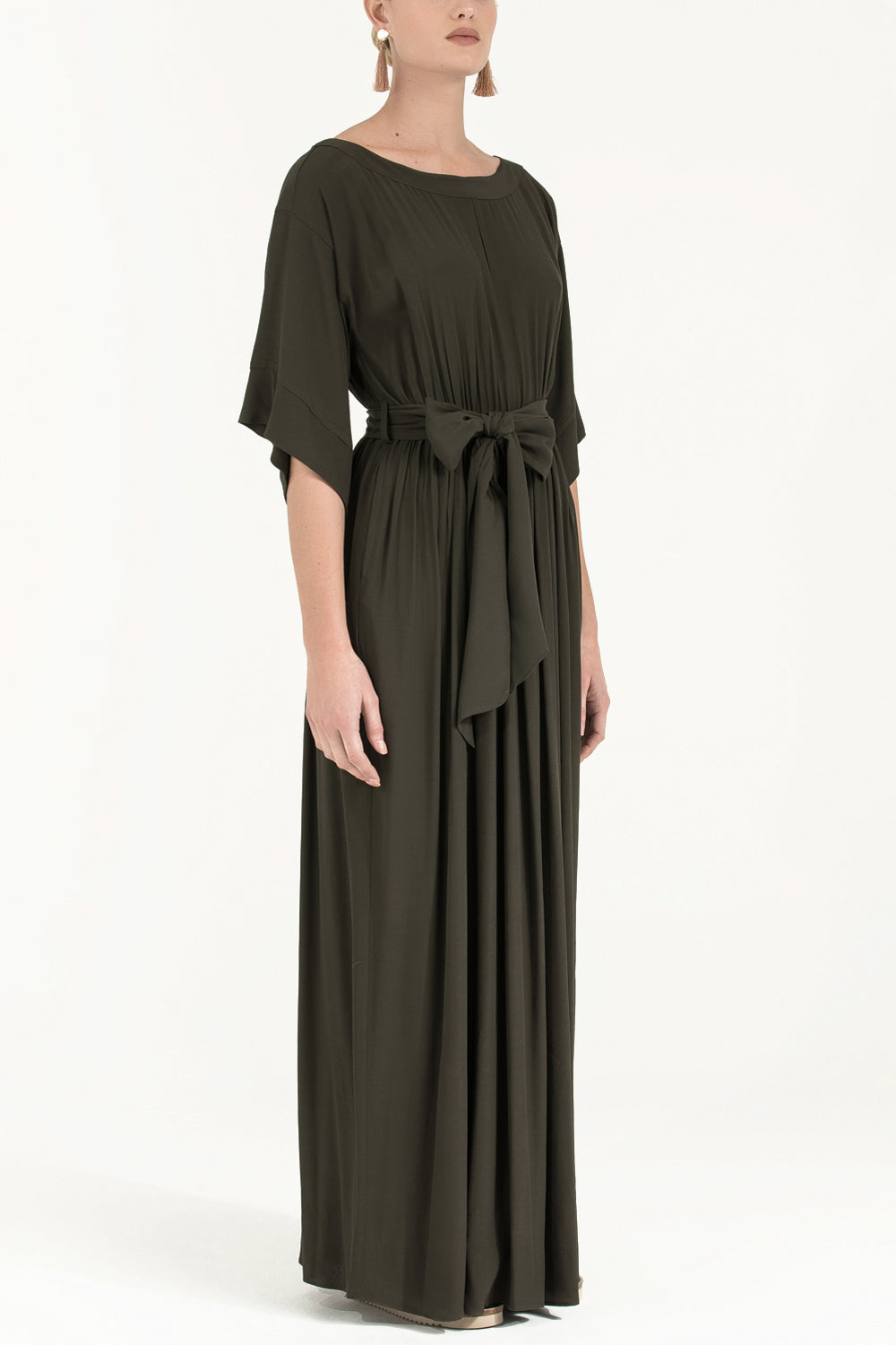 Haki Dantelli bol kesim uzun elbise 92319