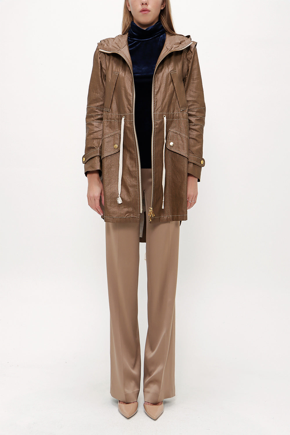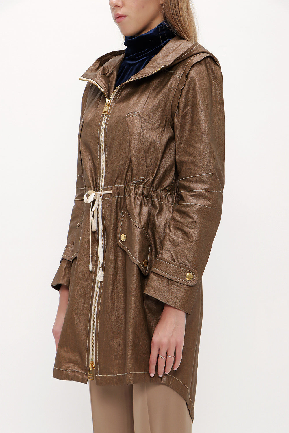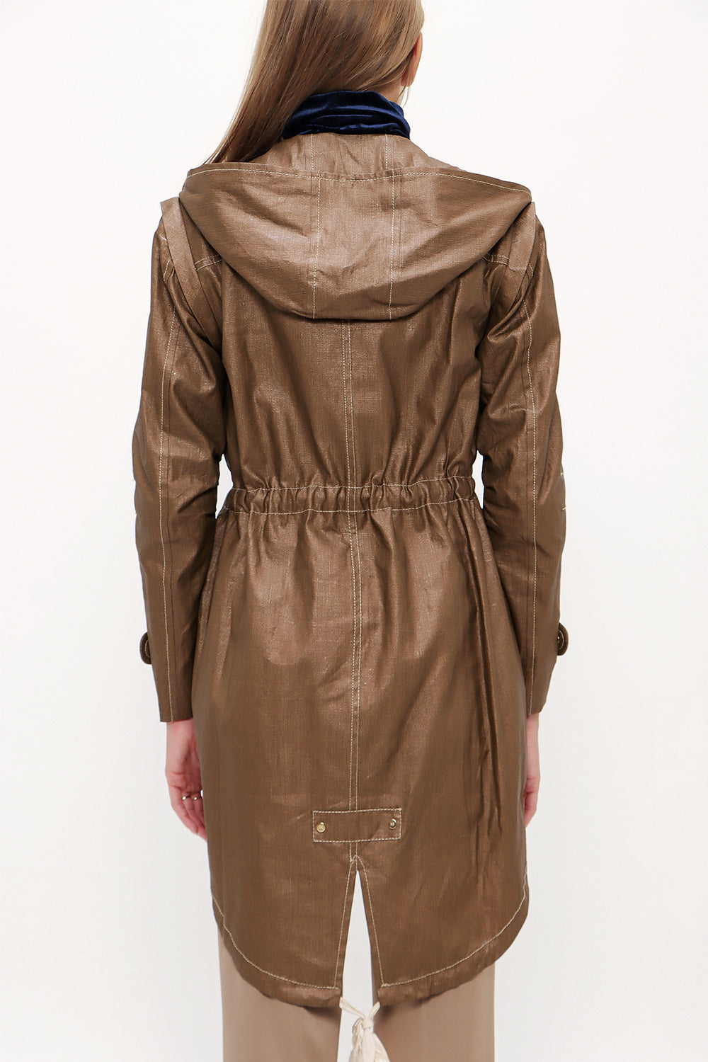 Kahve Fermuar ve çıtçıtlı keten parka 20388