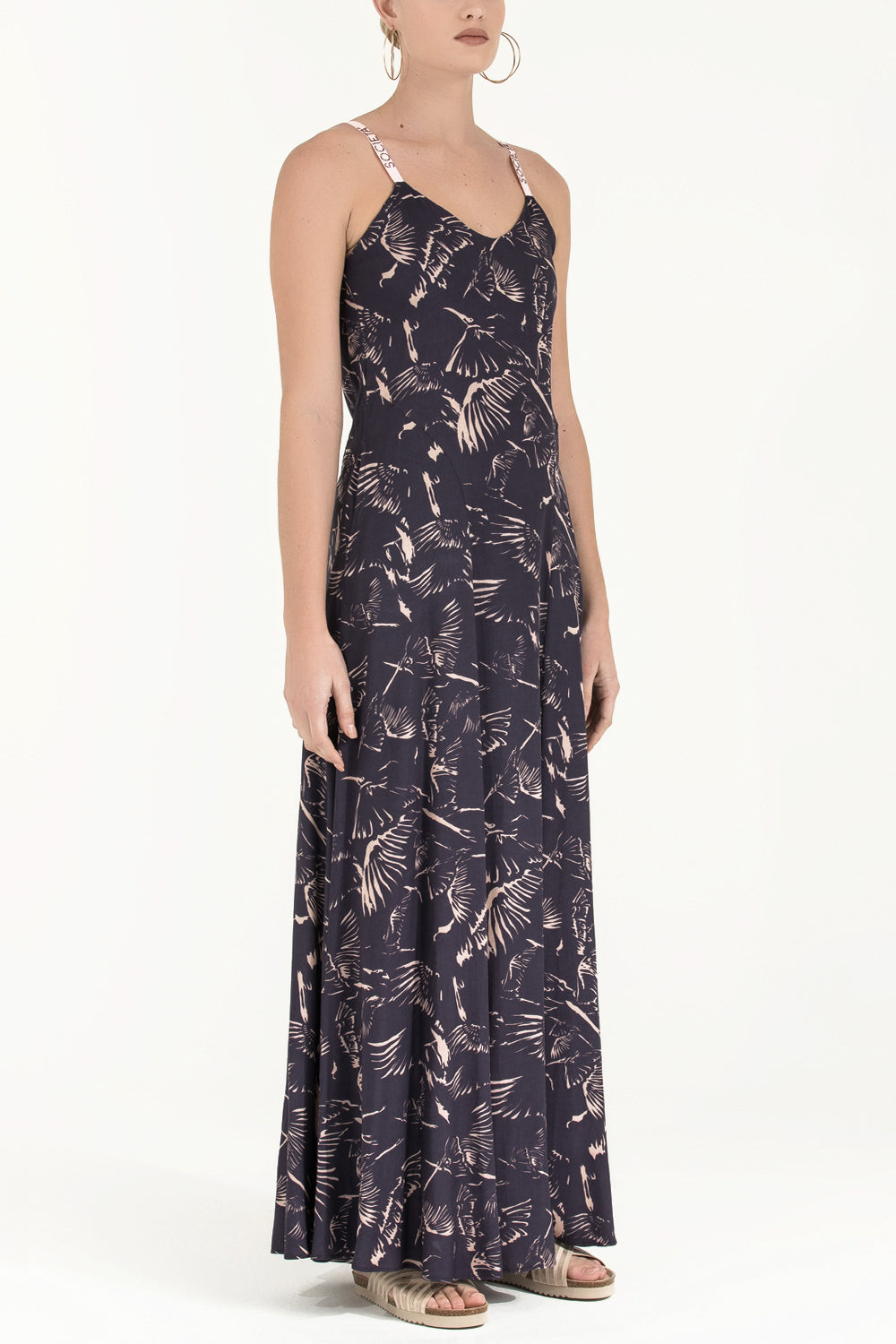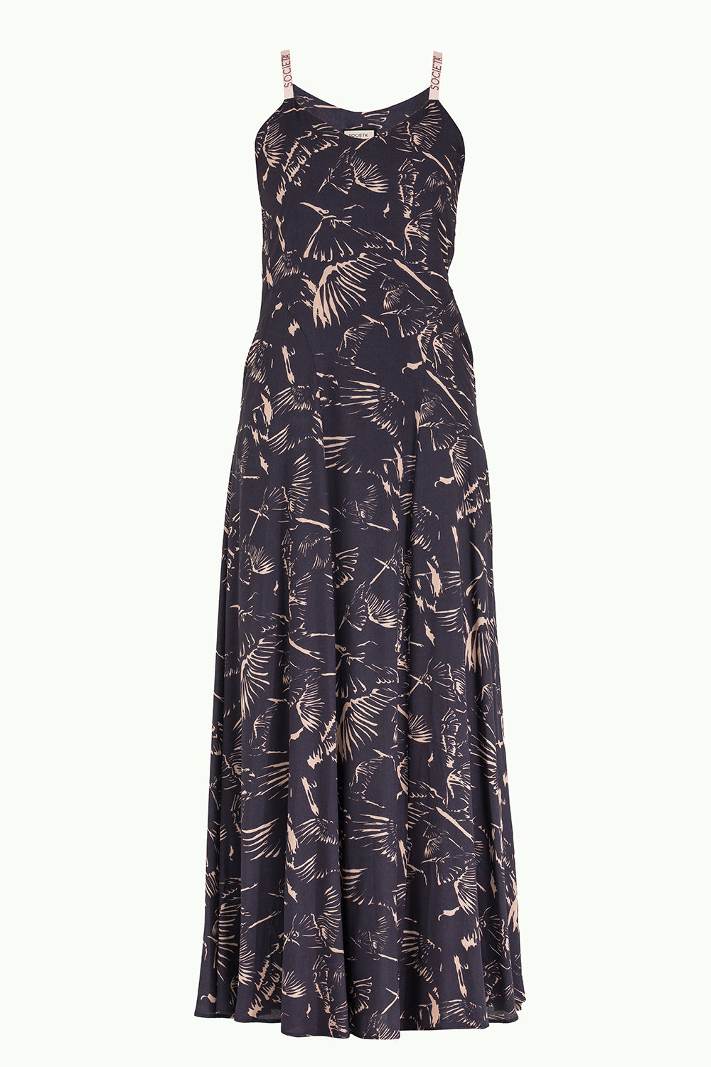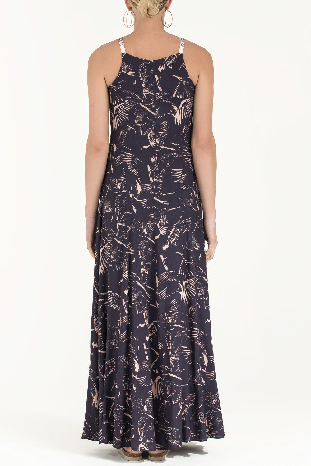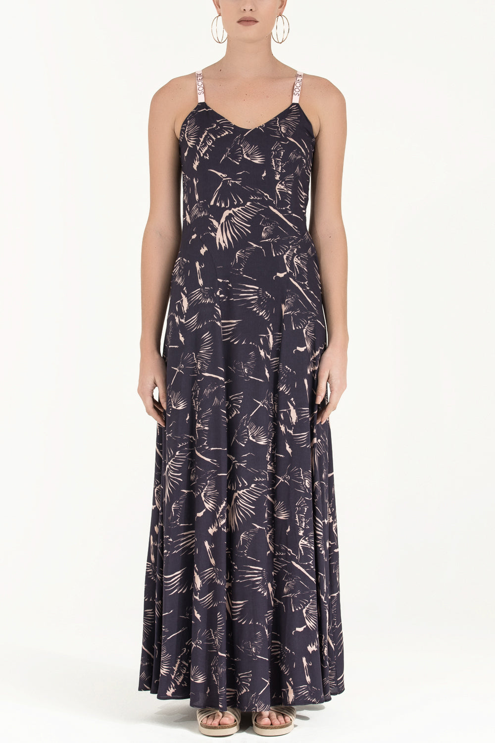Kahve Kristal taşlı kolsuz uzun elbise 92337