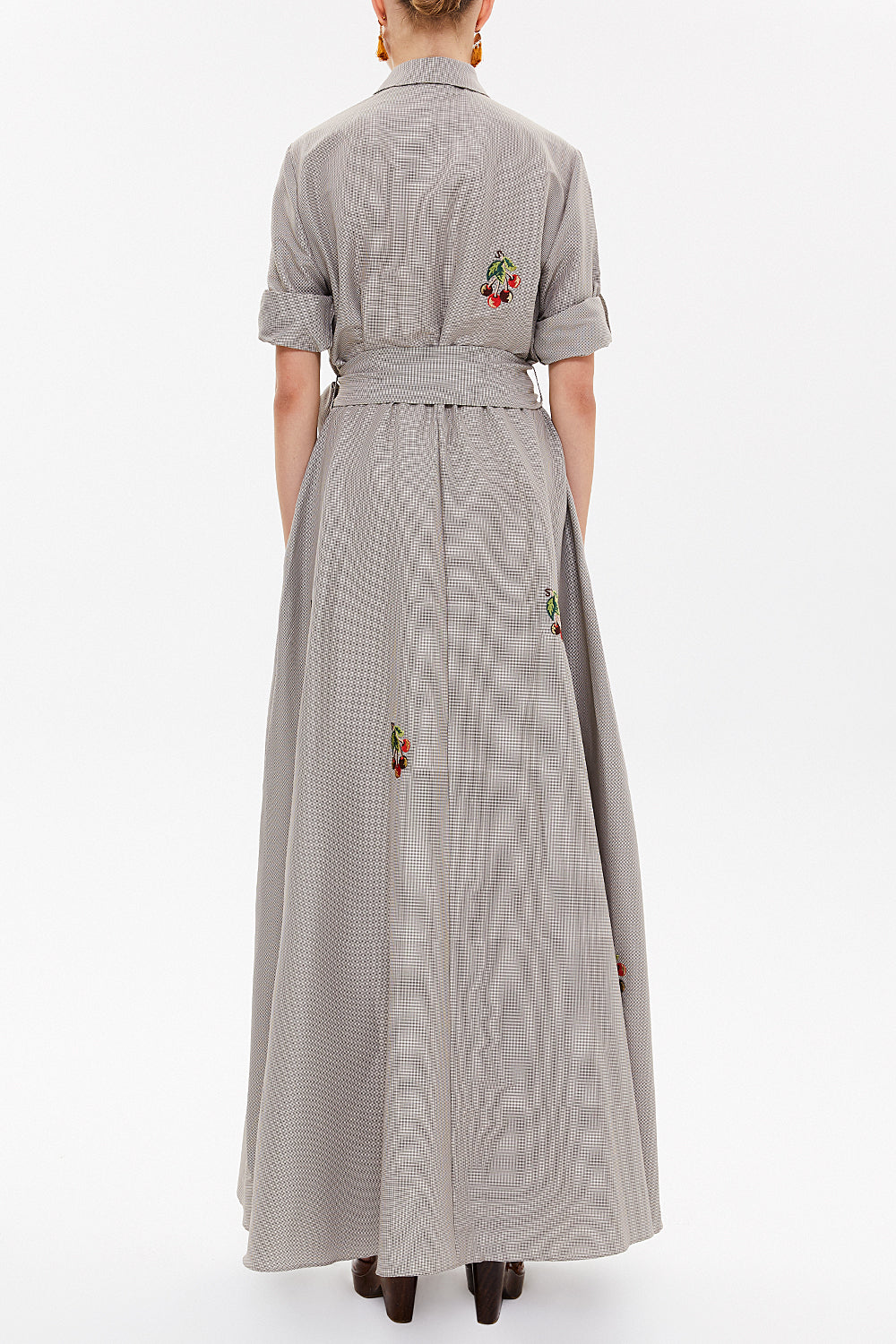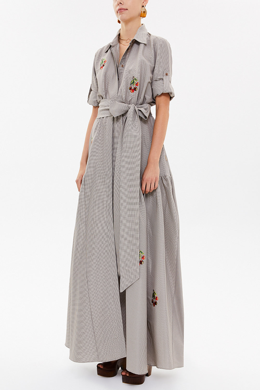 Kahve Nakışlı uzun elbise 92866