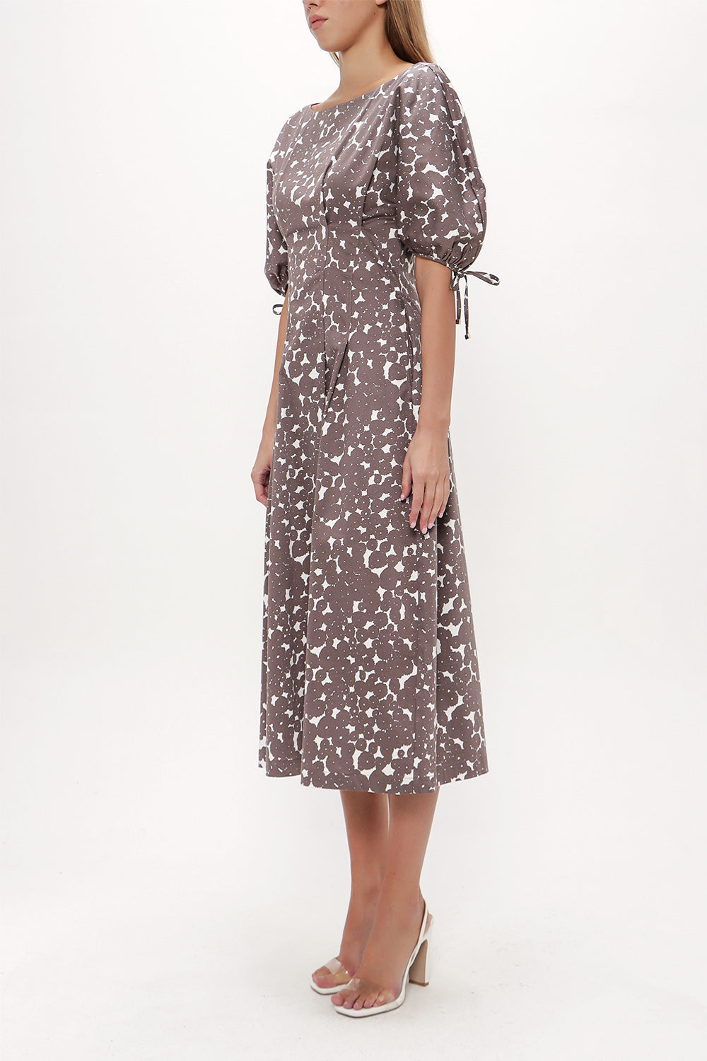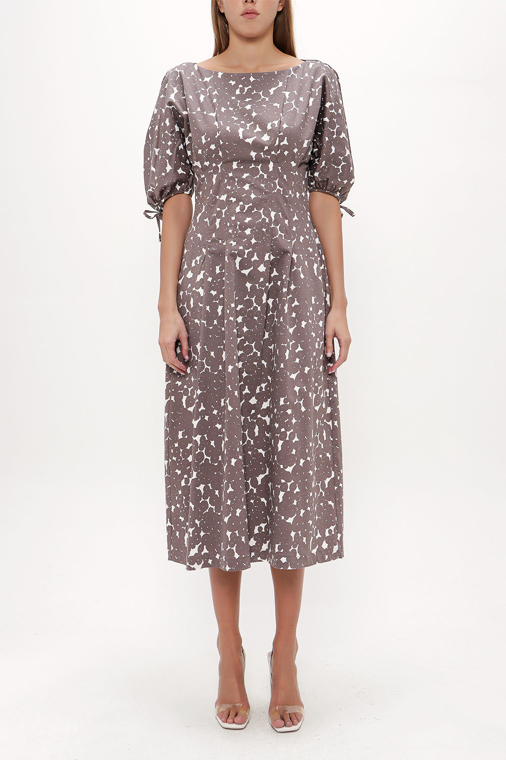 Kahve Yarasa kol fermuarlı midi elbise 92690