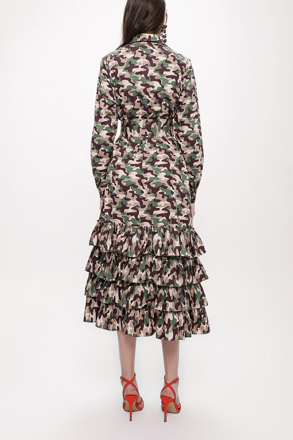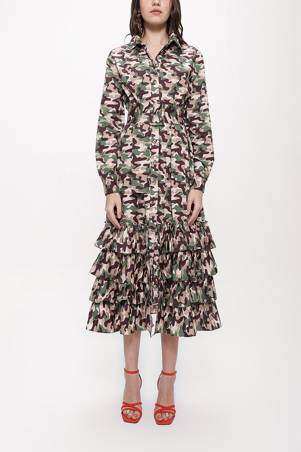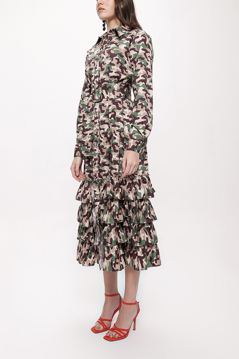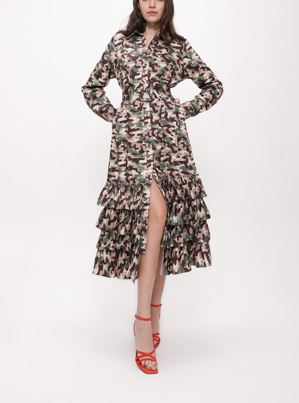 Kamuflaj Fırfırlı uzun gömlek elbise 93979