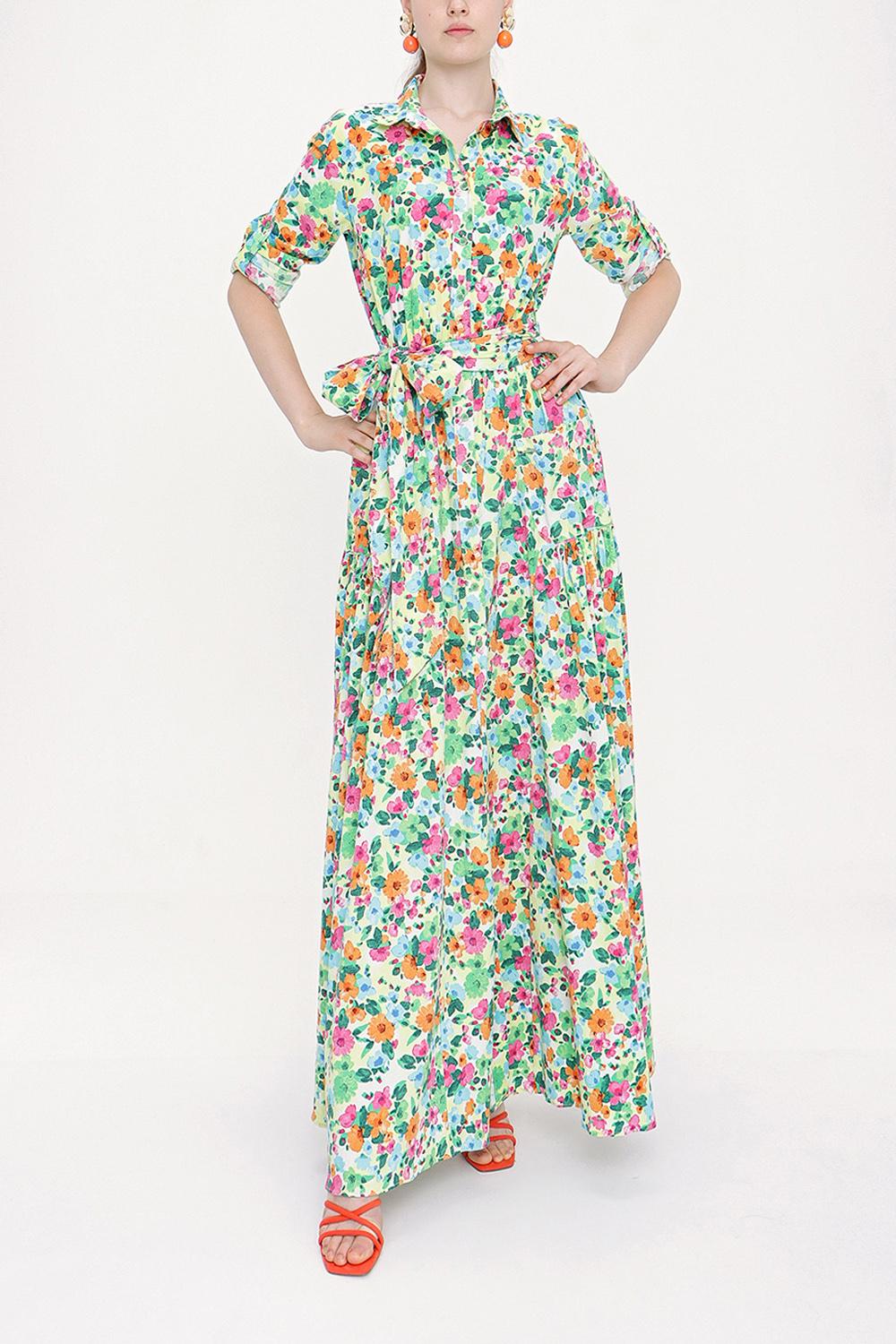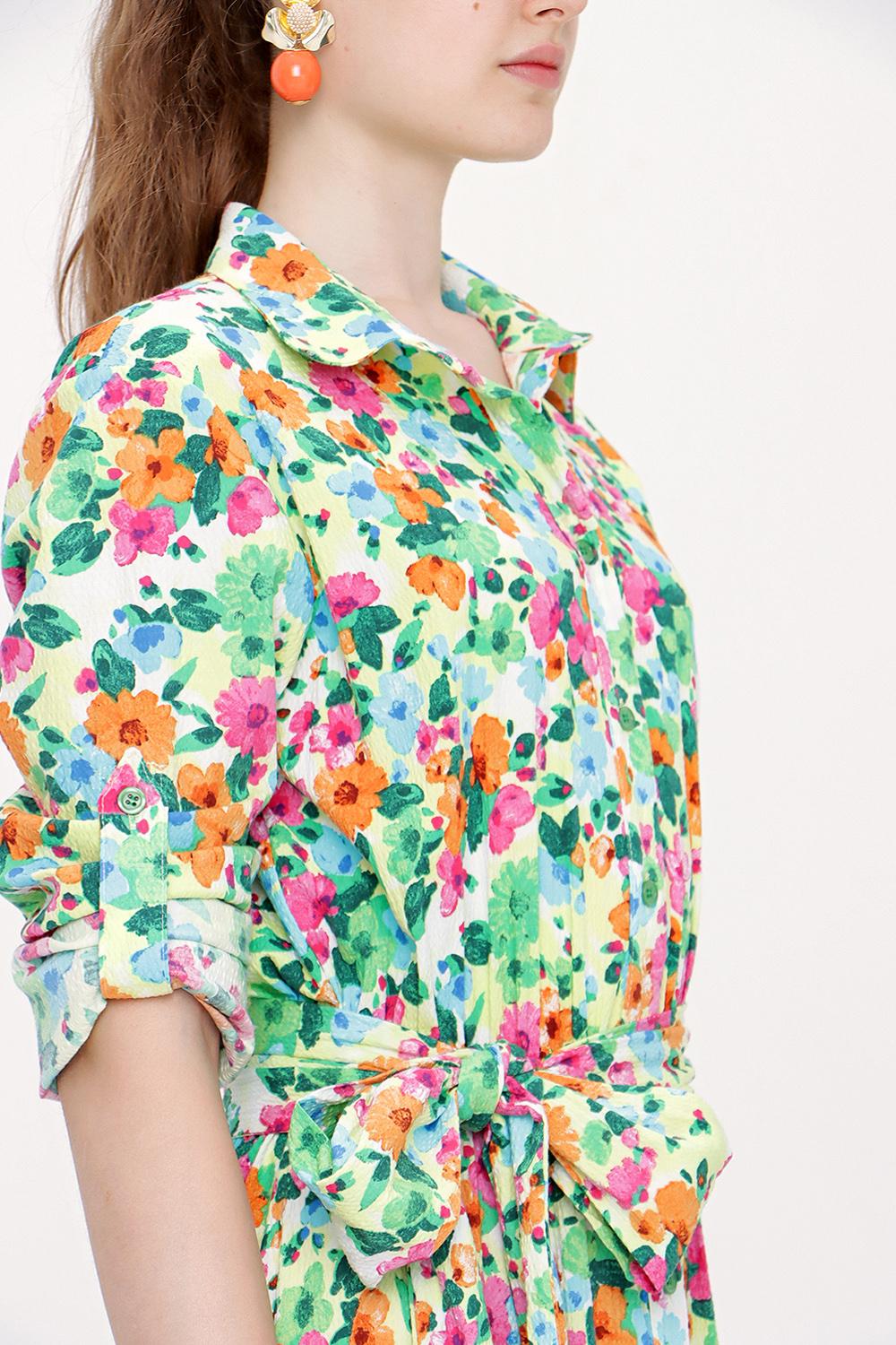 Karışık Renkler Büzgülü uzun gömlek elbise 94013