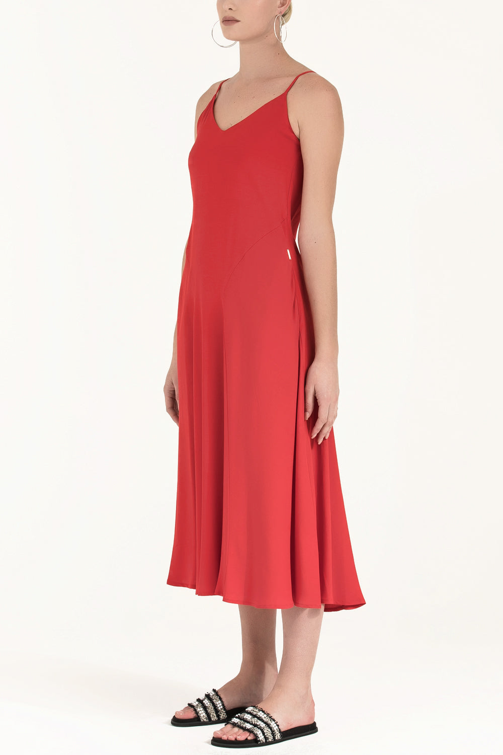 Kırmızı Askılı v yaka midi elbise 92296