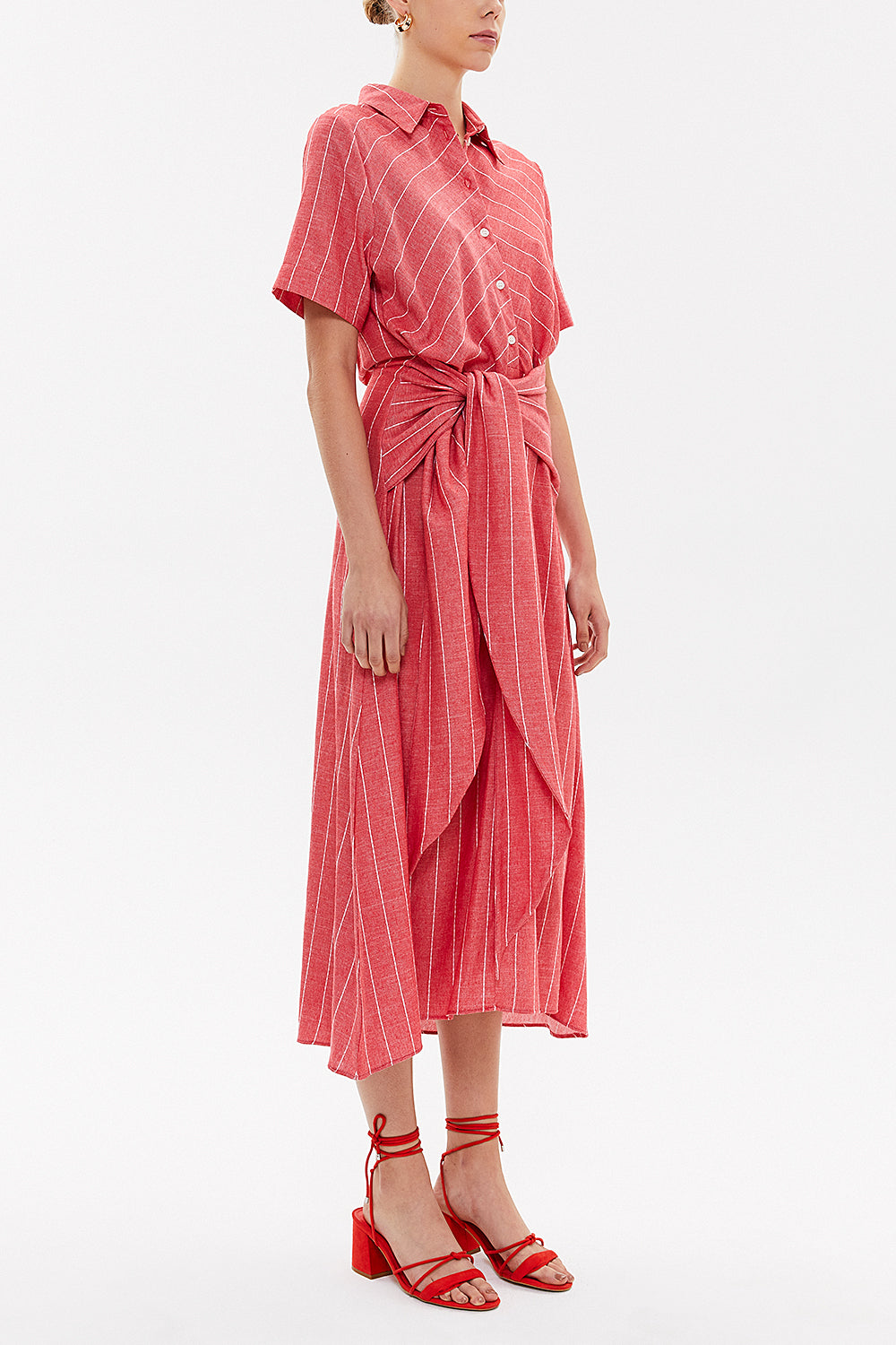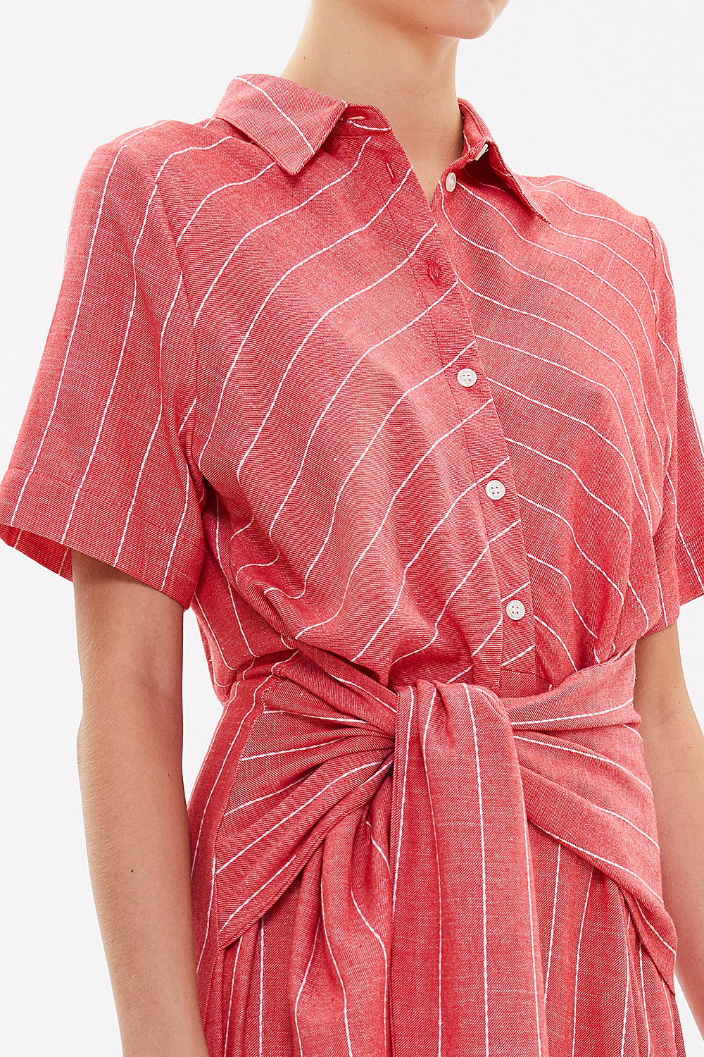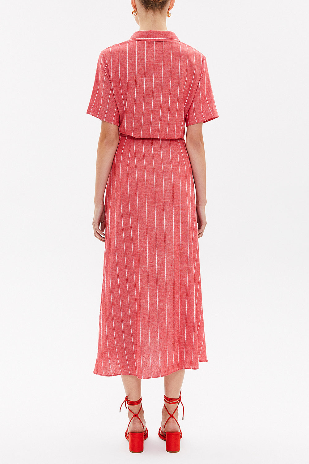 Kırmızı Bagcıklı kısa kol midi elbise 92927