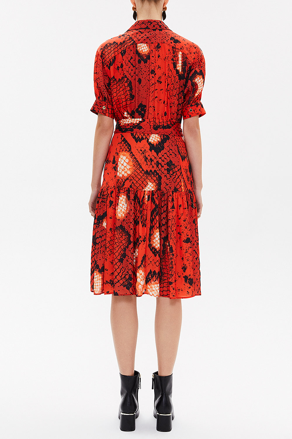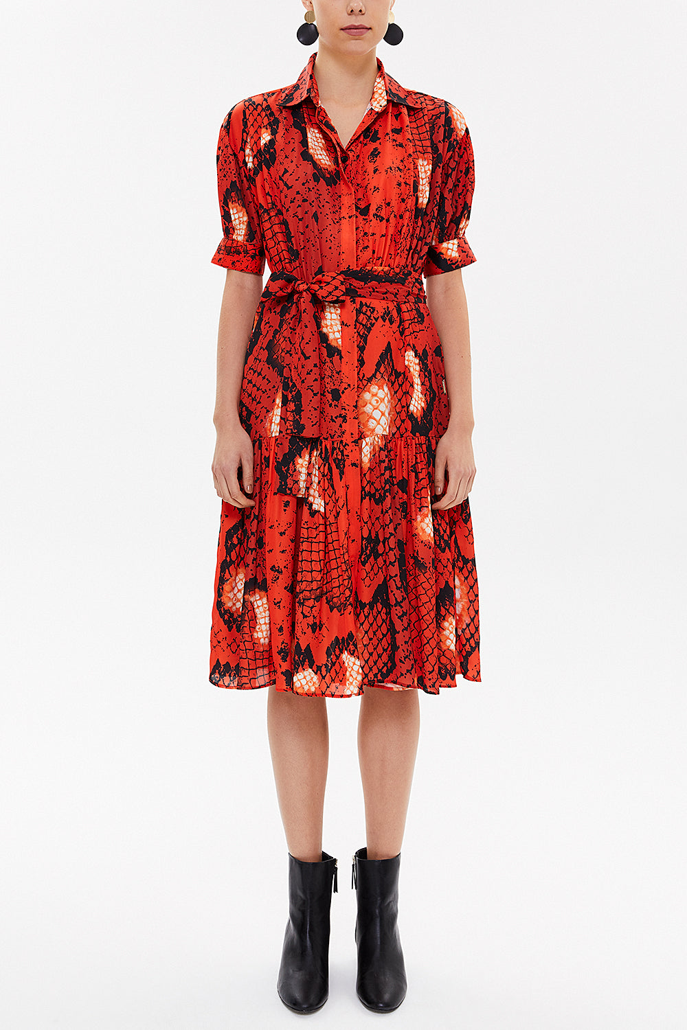 Kırmızı Balon kol büzgülü midi elbise 92724